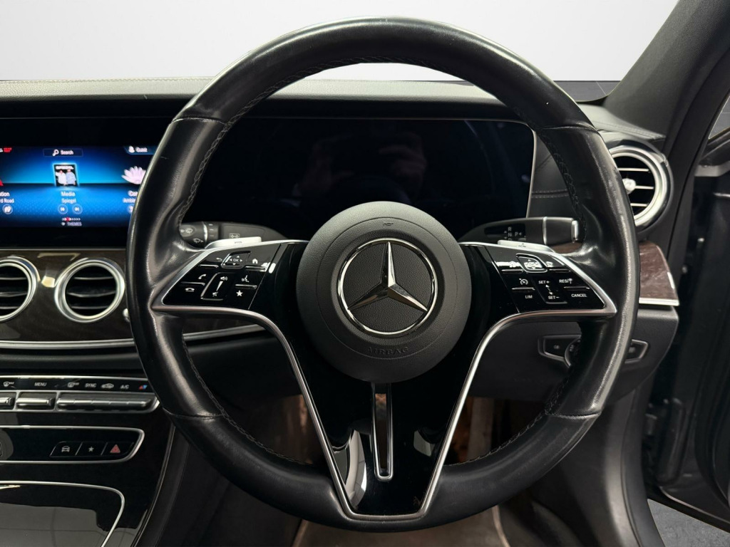 This 2022 Mercedes Benz E Class E200h Sport is a clear vehicle history example, offering a refined driving experience. Powered by a 2.0 litre petrol hybrid engine, this Euro 6 compliant model combines efficiency with performance. The Sport trim level ensures a well appointed interior, complemented by the advanced Parking Package which includes a 180 degree reversing camera and Active Parking Assist with PARKTRONIC, featuring front and rear sensors for effortless manoeuvring. Smartphone integration, offering both Android Auto and Apple CarPlay, keeps you connected on the go, while Blind Spot Assist provides an extra layer of safety.Experience impressive acceleration with a 0 to 62mph time of just 7.4 seconds, demonstrating the dynamic capabilities of this E Class. The LED High Performance headlamps with integrated daytime running lights ensure excellent visibility in all conditions. Beyond its technological advancements, this Mercedes Benz also boasts a generous boot space, making it a practical choice for everyday use and longer journeys alike. These features collectively highlight how this E Class offers a superior and more convenient ownership proposition compared to other vehicles in its class. ather - black, 18in alloy wheels - amg 5-twin-spoke light - painted in tantalite grey with high-sheen finish, abs - anti-lock braking system, amg bodystyling - diamond radiator grille with chrome pins - silver painted louvre and insert in chrome - front and rear apron - side sill panel, amg bodystyling - front and rear aprons in polished aluminium, attention assist, active bonnet - pedestrian safety measure which detects an impact and raises bonnet, active braking assist, adaptive brake lights, adaptive brake system with hold function and brake drying in the wet, agility control suspension with selective damping system and lowering by 15mm, airbag - kneebag for driver, airbags - driver and front passenger with extended adaptivity for front passenger airbag, airbags - sidebag for driver and front passenger - combined thorax-pelvis bag, airbags - windowbags, alarm system with immobiliser and interior protection, automatic child seat recognition sensor, black roof lining, blind spot assist, brake calipers with mercedes-benz lettering, brake wear warning display, central locking with interior switch - automatic locking and crash sensor with emergency opening function, central stowage compartment with 12v socket in centre console, childproof locks - manually operated for rear doors and electrically operated for rear power windows, courtesy lights in rear grab handles with reading light functionality, cruise control with variable speed limiter, dab digital radio tuner, direct-steer speed sensitive steering, door pins in black, dynamic select with a choice of driving modes - comfort - eco - sport - sport plus - individual, esp - electronic stability programme, electric parking brake, electric windows - 4 - with one-touch opening and closing - including obstruction sensors, electronic key - chrome surround, exhaust system - visible twin-pipe integrated into the bumper, exterior mirrors - body colour, first aid kit and warning triangle, floor mats - velour, front centre armrest with stowage compartment, front door sill panels with mercedes-benz lettering - illuminated, front four way partially electric seat adjustment, glove compartment - lockable - air-conditioned and illuminated, head restraints for driver and front passenger 4-way adjustability and in rear 2-way, headlamps - led high performance with integrated led daytime running lights, isofix child seat attachment points - two outer rear seats, instrument cluster - widescreen 10.25in cockpit display, interior 64-colour ambient lighting, keyless-go starting function, mbux multimedia system, mbux voice control activated by keywords - hey mercedes, mercedes me connect - standard services, mirror package, outside temperature display, parking package - 180 degree reversing camera - active parking assist with parktronic, parking package including active parking assist with front and rear parking sensors, pre-installation for roof rail systems, pre-safe anticipatory safety system, privacy glass, radio aerial integrated into rear window, rain sensor with automatic headlight activation, rear lights - led, remote boot release, seat belts - three-point, seat comfort package - driver and front passenger seat, seat occupancy sensor - front passenger seat, seats - heated front, seats - rear split folding 40-20-40, service indicator assyst, smartphone integration, status display for rear seat belts in instrument cluster, steering column - manually adjustable for height and reach, steering wheel - amg 3-spoke design in black nappa leather with flattened bottom section - chrome inserts with touch control buttons, steering wheel - multi-function with gearshift paddles, steering wheel - touch-control buttons for audio and onboard settings, summer tyres, sun visors with illuminated vanity mirrors, sunglasses compartment in overhead control panel, thermotronic automatic climate control system with three climate zones and three climate styles, tirefit with tyre inflation compressor, top surround of side windows in polished aluminium, touchpad with controller, traffic sign assist, trim - centre console in black open-pore ash wood, trim - dashboard and door - black open-pore ash wood, trip computer in multi-function display showing current fuel consumption, tyre pressure monitoring system, usb ports in centre console x2, usb ports in the rear x2, wireless charging