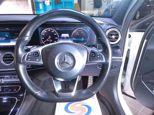 Boasting exceptionally low mileage for its 2017 registration, this ONE OWNER Mercedes Benz E220d AMG Line (Premium) presents a superb opportunity. This Euro 6 compliant model ( £35 TAX ) features a responsive 2.0L diesel engine and a great service history offering peace of mind. The AMG Line trim enhances its sporty appeal, while the Premium Package adds desirable features such as panoramic electric opening sky roof, memory seats for personalised comfort and heated front seats for those colder journeys. Illumination is provided by LED High Performance headlamps with integrated daytime running lights, and parking is made effortless with the Parking Pilot system, including front and rear sensors & rear camera. Connectivity is seamless thanks to the Audio 20 USB system with Bluetooth. , Experience impressive performance with a 0-62mph acceleration time of just 7.7 seconds, demonstrating its dynamic capability. This E Class also excels in efficiency, achieving an outstanding fuel economy of 61 mpg, making it a cost effective choice for both city driving and longer trips. Furthermore, you will appreciate the generous boot space, perfect for accommodating luggage or shopping. These highlights collectively indicate that this Mercedes Benz E Class offers a superior driving experience and practicality compared to many other vehicles in its class.