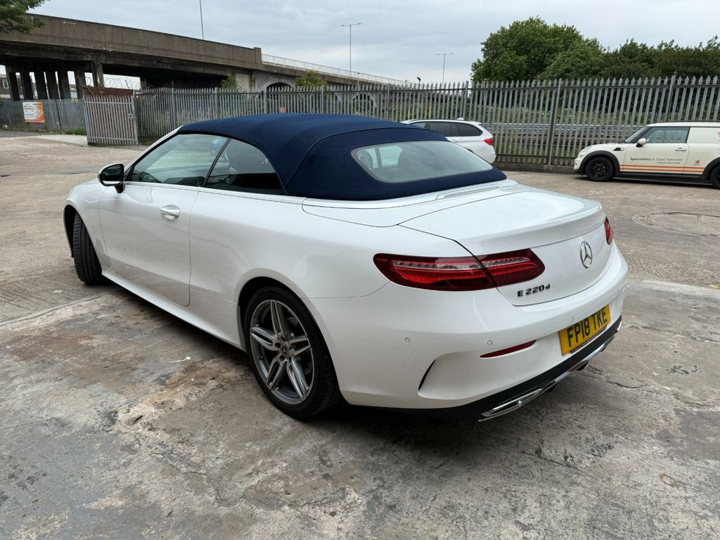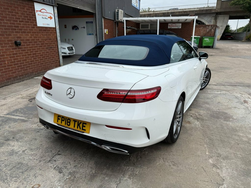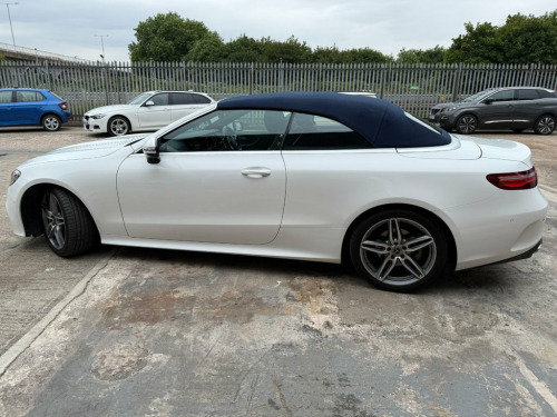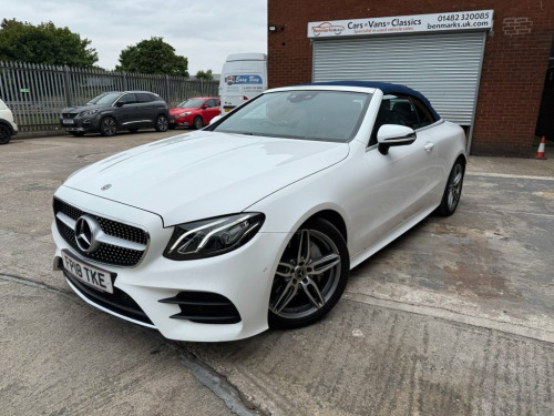 This 2018 Mercedes-Benz E-Class 2.0 E220d AMG Line Cabriolet has covered just 30,923 miles and boasts a full main dealer service history. Finished in white with a striking blue roof, it comes with two keys, a new MOT, and a 6-Months Warranty included for complete peace of mind. In excellent condition inside and out, this low-mileage example drives beautifully — smooth, refined, and effortless. As an AMG Line model, it combines a sporty look with impressive performance, especially when switching to Sport mode for an extra burst of power. This stylish 4-seater convertible offers plenty of space in the back for passengers, making it both practical and enjoyable. With its head-turning design, premium features, and all the technology you could need, this E-Class Cabriolet truly stands out from the crowd. 19in Alloy Wheels - 5-Twin-Spoke Design , ABS - Anti-Lock Braking System, Acoustic Soft-Top - with Enhanced Climat, Active Bonnet - Pedestrian Safety which , Active Brake ASSIST, Active Park Assist, Adaptive Brake Lights, Adaptive Brake System with HOLD Function, Agility Control Suspension with Selectiv, Airbag - Kneebag for Driver, Airbags - Driver and Front Passenger wit, Airbags - Headbags, Airbags - Sidebag for Driver and Front P, Airbags - Windowbags, AIRCAP - Wind Deflector and Draught-Stop, AIRSCARF - Neck Level Heating System, Alarm System with Immobiliser and Interi, AMG Bodystyling - Front and Rear Apron -, AMG Boot Lid Spoiler in Body Colour, Analogue Clock in Centre Console, Arti