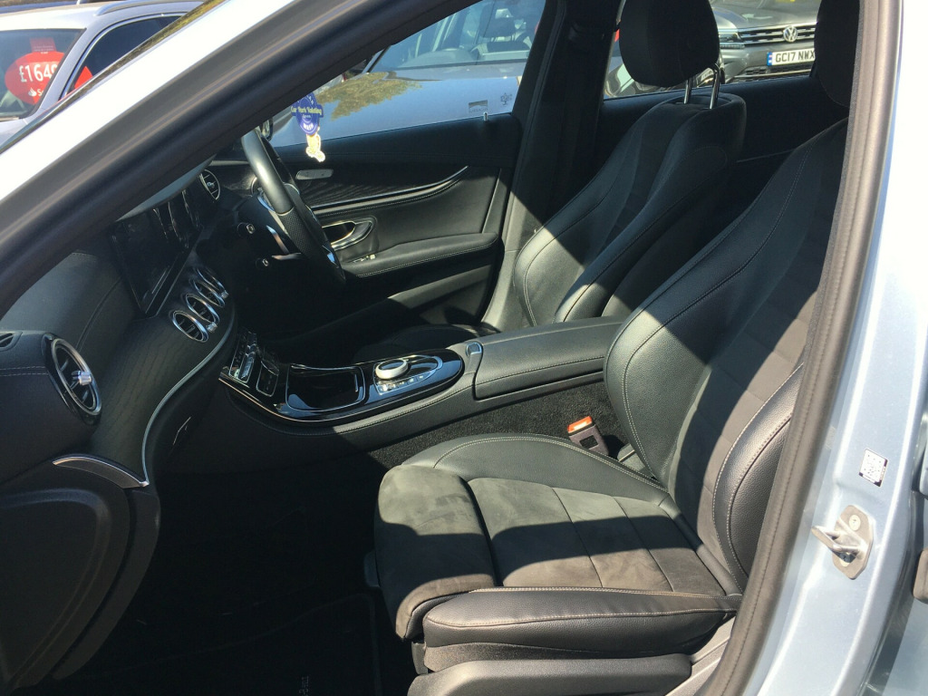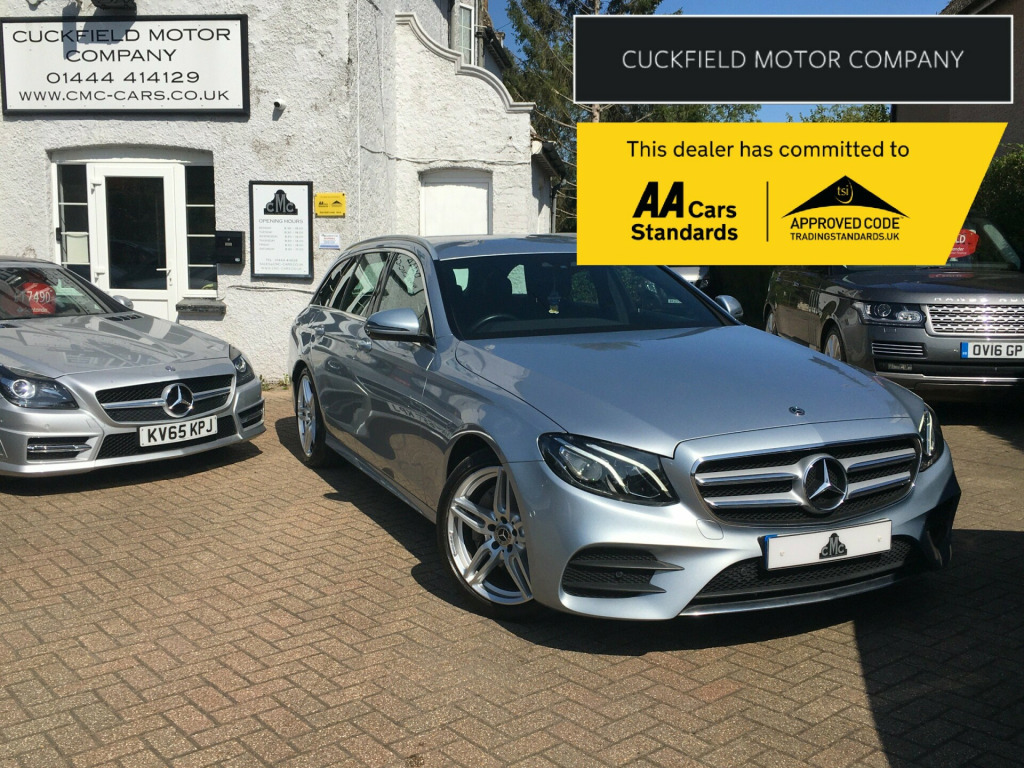 Cuckfield Motor Company are delighted to offer for sale this well presented 2 Owner, Mercedes Benz E220D AMG-Line Estate. Finished in Diamond Silver Metallic Paint with Black Alcantara Upholstery, this car has comprehensive service history with recorded visits at 11553, 18849, 22330, 28153, 34449 and 40639 miles. Specification includes Front & Rear Parking Sensors---19'' Alloy Wheels---Paddle Shift Gear Selection---Electric Folding Door Mirrors---Heated Front Seats---Cruise Control with Speed Limiter---Rear View Camera---2 x USB---DAB Radio---Air Conditioning---Electric Powered Tailgate---Park Assist---Sat Nav---Bluetooth Phone & Audio Connectivity---Ambient Lighting---Selectable Drive Modes and more.Every car we offer comes with a comprehensive provenance check certificate, Minimum 6 month warranty and new MOT and service where applicable. All part exchanges welcome.We offer extremely competitive finance packages to help you fund your new car.Cuckfield Motor Company Ltd is a family run business FCA approved dealer established for over 20 years, With 30 years experience in the motor trade.We are located in the village of Cuckfield just off the A23, 15 minutes from Gatwick airport and only 5 minutes from Haywards Heath train station.Please contact us via phone/email to view this car today. email us on: salescmc-cars.co.uk01444 414129, g bodystyling - front and rear aprons - side skirts in polished aluminium, attention assist, active parking assist with reversing camera, cruise control with variable speed limiter, headlamps - led high performance with integrated led daytime running lights, 19'' alloy wheels, 2 owners, 2x usb ports, 5 seats, air conditioning, bluetooth phone & audio, dab radio, electric folding mirrors, front & rear parking sensors, full service history, heated seats, isofix, keyless start, paddle shift, power tailgate, reversing camera, satellite navigation, ulez compliant