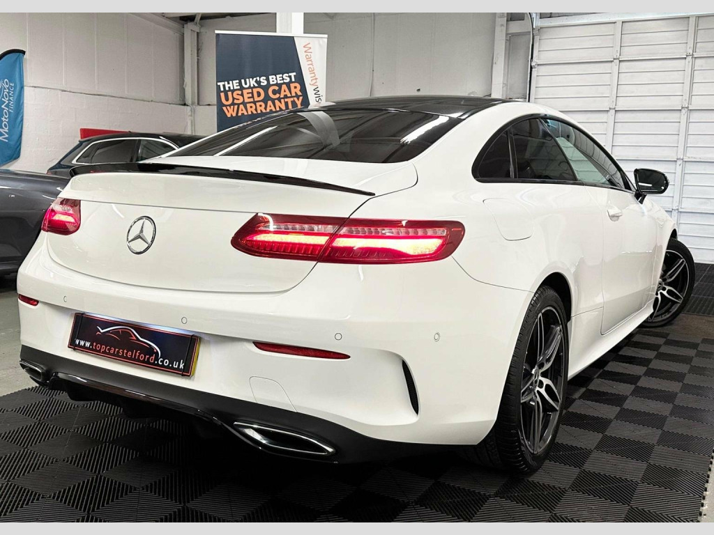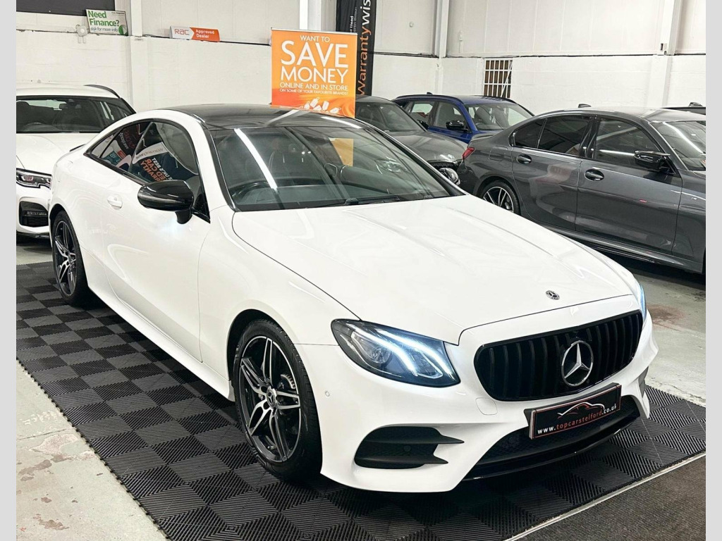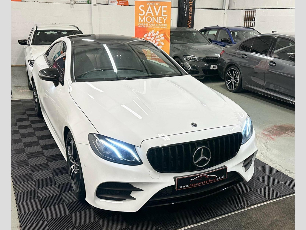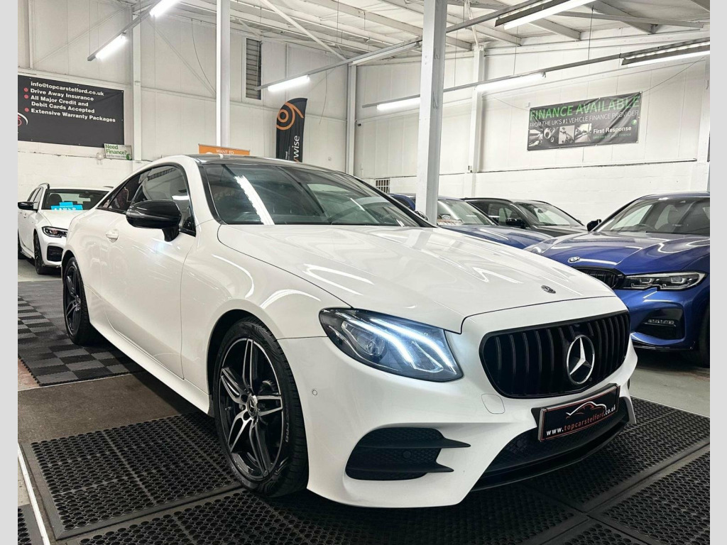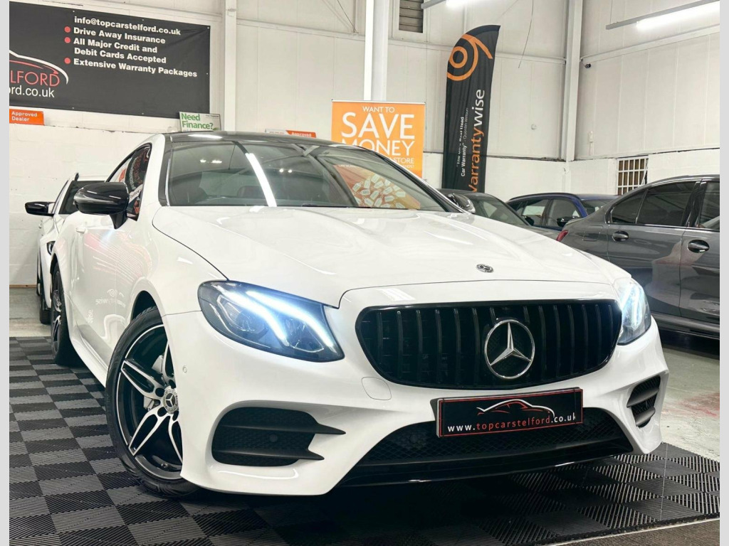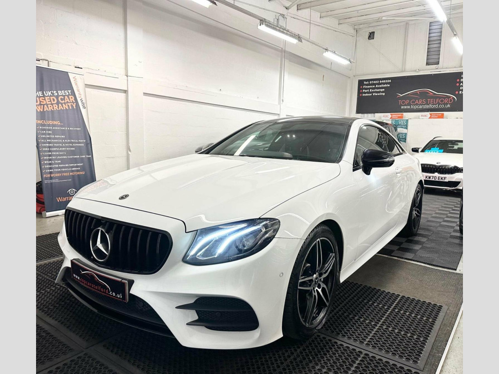 JUST ARRIVED AWAITING PREP PLEASE CALL TO REGISTER YOUR INTREST OR RESERVE ONLINE £99 DEPOSIT FULLY REFUNDABLE, ANOTHER SUPERB EXAMPLE HIGHLY POPULAR AND ATTRACTIVE FACELIFT MODEL MERCEDES E CLASS E220 2.0 CDI AMG LINE COUPE 9GDCT AUTO, IN ARGUABLY THE MOST DESIRABLE COLOUR POLAR WHITE UPGRADED NIGHT PACK BLACK EXTERIOR STYLING INCLUDING GT STYLE GRILL REAR LIP SPOILER 19IN ALLOYS AND MORE, BEAUTIFUL LOW MILEAGE EXAMPLE SERVICE HISTORY LONG MOT PRE DELIVERY INSPECTION PRIOR TO SALE FOR TOTAL PEACE OF MIND, VERY STYLISH AND SLEEK, LUXARY AT ITS BEST EVERYTHING YOU CAN ASK FOR, %100 TICKS ALL THE BOXES SATNAV REV CAMERA PARKING AID, HEATED SEATS HIGHLY POPULAR AMBIENT LIGHTING AMG SPORT SEATS, WARRANTY WISE APPROVED DEALER HPI CLEAR NATIONWIDE WARRANTY £0 DEPOSIT LOW RATE FINANCE FROM AS LITTLE AS 8.9% BUY NOW PAY LATER OR DRIVE AWAY TODAY FROM £70 P/ WEEK FINANCE SPECIALIST CLICK AND COLLECT OR BUY ONLINE NATIONWIDE DELIVERY T&C APPLY OR DRIVE AWAY IN ONE HOUR, TRULY IN OUTSTANDING CONDITION WELL MAINTAINED CREDIT TO ITS PREVIOUS OWNER VIEWING ESSENTIAL, STUNNING EYE CATCHING LOOKS VERY STYLISH AND SLEEK LOW RUNNING COSTS GREAT FUEL ECONOMY DRIVE AROUND IN PURE COMFORT AND STYLE, NOT TO BE MISSED OUT ON, ALL OF OUR CARS ARE SPECIALLY SOURCED AND WE STRIVE TO BE THE MOST COMPETITIVE AROUND WHEN COMPARED TO LIKE TO LIKE VEHICLES, COMES COMPLETE WITH ALL ITS PAPERWORK TO HAND, Truly a Unique Opportunity At Exceptional Value At TopCarsTelford We Pride Ourselves in Only Selling Top Quality Cars That Are Fully inspected HPI Checked with report providing you with complete peace of mind guaranteed customer satisfaction viewing highly recommended you will not be disappointed, EXTENSIVE WARRANTY PACKAGES, BUILD YOUR OWN FINANCE PACKAGE APPLY DIRECTLY ON OUR WEBSITE, ALL MAJOR DEBIT/CREDIT CARDS ACCEPTED Please call to arrange test-drive indoor showroom, viewing available by appointment for any online enquires including our 5 Star verified customer reviews Please visit our website WWW.TOPCARSTELFORD.CO.UK, BUY WITH COMPLETE CONFIDENCE AND AFTERCARE