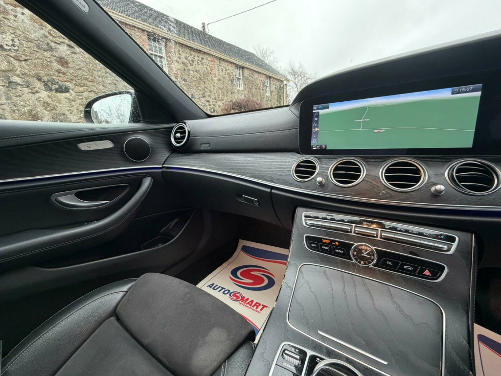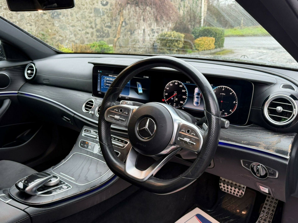 This 2019 Mercedes Benz E Class E220d AMG Line offers a refined driving experience with its powerful 2.0L diesel engine. As a Euro 6 compliant vehicle, it meets stringent emission standards. The AMG Line trim ensures a sporty aesthetic, complemented by features such as Automatic Climate Control for two zones, ensuring comfort for all occupants. Entertainment and connectivity are handled by the Audio 20 USB system, which includes Bluetooth functionality. For ease of manoeuvring, a Reversing Camera and the Parking Package, featuring Active Parking Assist with front and rear sensors, are included. Additionally, the front seats are heated, providing extra comfort during colder journeys.The E Class E220d AMG Line boasts impressive performance, accelerating from 0 to 62mph in just 7.3 seconds, demonstrating its dynamic capabilities. This acceleration figure highlights its advantage over many comparable vehicles in its class. Practicality is also a strong suit, with a notably large boot space perfect for luggage or shopping. This combination of performance, comfort, and utility makes this Mercedes Benz E Class a compelling choice for those seeking a premium and capable saloon. in alloy wheels - amg 5-twin-spoke design - painted in titanium grey with high-sheen finish, abs - anti-lock braking system, amg bodystyling - front and rear aprons - side skirts in polished aluminium, attention assist, active bonnet - pedestrian safety measure which detects an impact and raises bonnet, active braking assist, adaptive brake lights, adaptive brake system with hold function and brake drying in the wet, agility control suspension with selective damping system and lowering by 15mm, airbag - kneebag for driver, airbags - driver and front passenger with extended adaptivity for front passenger airbag, airbags - sidebag for driver and front passenger - combined thorax-pelvis bag, airbags - windowbags, alarm system with immobiliser and interior protection, analogue clock in centre console, audio 20 usb, automatic child seat recognition sensor, automatic climate control - two-zone, brake calipers with mercedes-benz lettering, brake wear warning display, central locking with interior switch - automatic locking and crash sensor with emergency opening function, central stowage compartment with 12v socket in centre console, childproof locks - manually operated for rear doors and electrically operated for rear power windows, courtesy lights in rear grab handles with reading light functionality, cruise control with variable speed limiter, dab digital radio tuner, direct-steer speed sensitive steering, door mirrors - body coloured, door mirrors - electrically adjustable and heated, door pins in chrome, dynamic select with a choice of driving modes - comfort - eco - sport - sport plus - individual, esp - electronic stability programme, electric parking brake, electric windows - 4 - with one-touch opening and closing - including obstruction sensors, electronic key - chrome surround, exhaust system - visible twin-pipe integrated into the bumper, first aid kit and warning triangle, floor mats - amg lettering, front centre armrest with stowage compartment, front door sill panels with mercedes-benz lettering, front four way partially electric seat adjustment, glove compartment - lockable - air-conditioned and illuminated, head restraints for driver and front passenger 4-way and in rear 2-way adjustability, headlamps - led high performance with integrated led daytime running lights, high-resolution 12.3in multimedia colour display, isofix child seat attachment points - two outer rear seats, incorrect fuelling protection, instrument cluster with two tube-design round dials and 8.4in tft multifunction display, interior 64-colour ambient lighting, keyless-go starting function, mercedes me connect, mirror package, outside temperature display, parking package including active parking assist with front and rear parking sensors, polished aluminium waistline, pre-installation for roof rail systems, pre-safe anticipatory safety system, privacy glass, radiator grille with integrated star - two louvres in matt iridium silver with chrome trim, radio aerial integrated into rear window, rain sensing windscreen wipers, rear lights - led, remote boot release, reversing camera, run flat tyres, sd card-based navigation system, seat belts - three-point, seat comfort package - driver and front passenger seat, seat occupancy sensor - front passenger seat, seats - heated front, service indicator assyst, sports pedals in brushed stainless steel with rubber studs, status display for rear seat belts in instrument cluster, steering column - manually adjustable for height and reach, steering wheel - 3-spoke multi-function amg trimmed in black nappa leather with flattened bottom section, steering wheel - multi-function with gearshift paddles, steering wheel - touch-control buttons for audio and onboard settings, stowage package, sun visors with illuminated vanity mirrors, sunglasses compartment in overhead control panel, top surround of side windows in polished aluminium, trim - artico leather upper dashboard with contrasting stitching, trim - centre console in black open-pore ash wood, trim - dashboard and door - black open-pore ash wood, trip computer in multi-function display showing current fuel consumption, tyre pressure monitoring system, usb ports in centre console x2