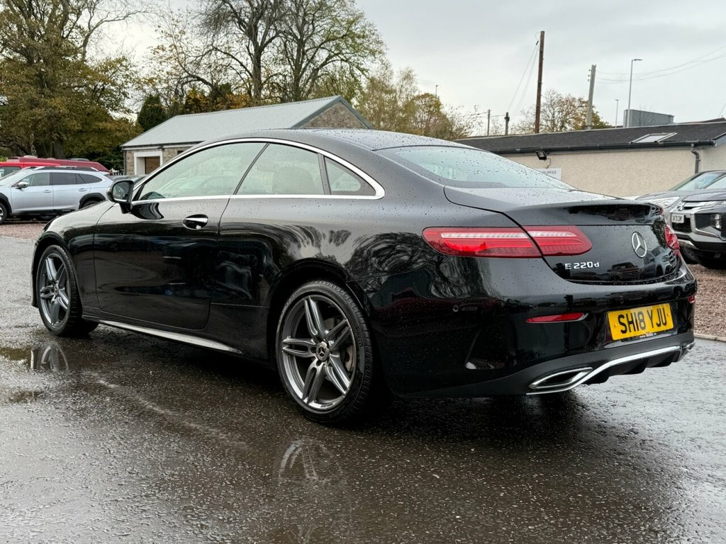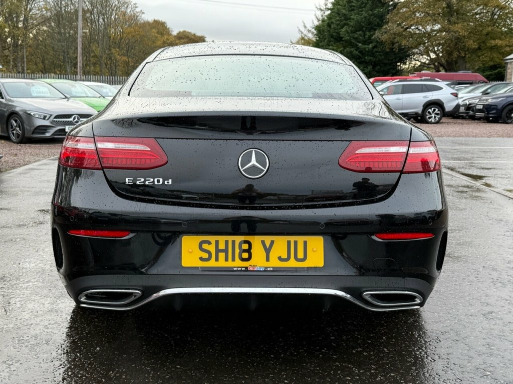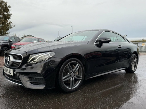 The 2018 (18) Mercedes-Benz E-Class 2.0 E220d AMG Line Premium Coupe is a stunning combination of style, sophistication, and performance — offering executive comfort with sporty coupe design.  Powered by a refined 2.0-litre diesel engine producing 194 bhp, paired with Mercedes' smooth G-Tronic+ automatic gearbox, this E-Class delivers effortless performance, superb refinement, and excellent fuel efficiency. The sleek coupe styling and AMG Line body kit give it an elegant yet athletic presence on the road.  The Premium specification enhances luxury and technology with features such as a panoramic glass sunroof, widescreen digital cockpit, COMAND navigation system, ambient interior lighting, heated leather sports seats, keyless entry/start, and reversing camera. Ride quality is exemplary, offering a perfect blend of comfort and control.  Beautifully crafted and exceptionally refined, this E220d AMG Line Premium Coupe offers the ideal mix of performance, efficiency, and elegance — a true grand tourer designed to impress on every journey. Panoramic roof , COMAND Online System with Media Interfac, Artico Leather-Dinamica Microfibre - Bla, Obsidian Black, 19in Alloy Wheels - 5-Twin-Spoke Design , ABS - Anti-Lock Braking System, AMG Bodystyling - Front and Rear Apron -, AMG Boot Lid Spoiler in Body Colour, ATTENTION Assist, Active Bonnet - Pedestrian Safety which , Active Brake ASSIST, Active Park Assist, Adaptive Brake Lights, Adaptive Brake System with HOLD Function, Agility Control Suspension with Selectiv, Airbag - Kneebag for Driver, Airbags - Driver and Front Passenger wit, Airbags - Headbags, Airbags - Sidebag for Driver and Front P, Airbags - Windowbags, Alarm System with Immobiliser and Interi, Analogue Clock in Centre