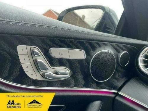 This 2018 Mercedes Benz E Class E220d AMG Line (Premium) boasts a full service history, with its most recent service completed on 1st July 2024 and an MOT valid until June 2026, offering excellent peace of mind. This Euro 6 compliant model features a 2.0L diesel engine and the sought after AMG Line trim. Notable features include Active Park Assist with front and rear sensors, the Audio 20 USB system with Bluetooth connectivity, and LED High Performance headlamps with integrated daytime running lights. The Premium Package adds convenience, including memory seats, and the automatic two zone climate control ensures comfort for all occupants.This E Class is designed for practicality and efficiency, offering generous boot space for all your needs. Its low CO2 emissions highlight its economical nature, making it a more environmentally conscious choice compared to similar vehicles. The combination of advanced parking assistance, a comprehensive infotainment system, and premium comfort features like memory seats and climate control, demonstrates a superior level of refinement and technology. ivacy glass, heated front seats, tyre pressure monitoring system, remote boot release, outside temperature display, run flat tyres, attention assist, pre-safe anticipatory safety system, adaptive brake lights, airbags - windowbags, dab digital radio tuner, automatic child seat recognition sensor, belt feeder, electric parking brake, rain sensing windscreen wipers, active park assist, active brake assist, pre-installation for roof rail systems, adaptive brake system with hold function and brake drying in the wet, incorrect fuelling protection, amg boot lid spoiler in body colour, status display for rear seat belts in instrument cluster, keyless-go starting function, first aid kit and warning triangle, brake wear warning display, top surround of side windows in polished aluminium, floor mats with amg lettering, front centre armrest with stowage compartment, sports pedals in brushed stainless steel with black rubber studs, cruise control with variable speed limiter, waistline in polished aluminium, agility control suspension with selective damping system and lowering by 15mm, sun visors with illuminated vanity mirrors, esp - electronic stability programme, abs - anti-lock braking system, airbag - kneebag for driver, mercedes me connect, mirror package, stowage package, usb ports in centre console x2, alarm system with immobiliser and interior protection, automatic climate control - two-zone, seat occupancy sensor - front passenger seat, 19in alloy wheels - 5-twin-spoke design - painted titanium grey with high-sheen finish, airbags - sidebag for driver and front passenger - combined thorax-pelvis bag, audio 20 usb, central locking with interior switch-automatic locking and crash sensor with emergency opening function, direct-steer speed sensitive steering, exhaust system - visible twin-pipe integrated into the bumper, magic vision control - heated windscreen wiper system, rear lights - led, seat comfort package - driver and front passenger seat, steering wheel - 3-spoke amg multi-function with touch control buttons - trimmed in black nappa leather with flattened bottom section, steering column - manually adjustable for height and reach, amg bodystyling - front and rear apron - side skirts, active bonnet - pedestrian safety which detects an impact and raises bonnet, dynamic select with a choice of driving modes - comfort - eco - sport - sport plus - individual, electric windows - 4 - with one-touch opening and closing - including obstruction sensors, electronic key - chrome surround, premium package, sd card-based navigation system, trim - centre console in black open-pore ash wood, trim - dashboard and door - black open-pore ash wood, trip computer in multi-function display showing current fuel consumption, seats - rear split folding 40-20-40, service indicator assyst, central stowage compartment with 12v socket in centre console, door pins in chrome, glove compartment - lockable - air-conditioned and illuminated, head restraints for driver and front passenger 4-way and in rear 2-way adjustability, interior 64-colour ambient lighting, seat belts - three-point, steering wheel - touch-control buttons for audio and onboard settings, sunglasses compartment in overhead control panel, artico leather upper dashboard with contrast stitching, airbags - driver and front passenger with extended adaptivity for front passenger airbag, airbags - headbags, analogue clock in centre console, door mirrors - heated and electrically adjustable, front door sill panels with mercedes-benz lettering - illuminated, instrument cluster with two tube-design round dials and 8.4in tft multifunction display, radiator grille with integrated mercedes-benz star - single louvre in matt iridium silver with chrome trim, steering wheel - gear shift paddles, reversing camera, isofix child seat attachment points - rear seats, perforated front brake discs with mercedes-benz lettering, headlamps - led high performance with integrated led daytime running lights