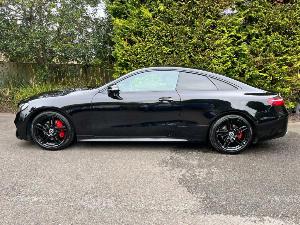 One private owner+Mercedes demo,This 2017 Mercedes-Benz E220d AMG Line (Premium) boasts a clear vehicle history offering excellent provenance backed up with Mercedes service history .As a Euro 6 compliant model, it features a 2.0L diesel engine and is presented in the sought after AMG Line trim. Notable features include opening panoramic glass roof,electric seats with memory, rear camera,LED High Performance headlamps with integrated LED daytime running lights, 19” gloss black with recent matching Pirelli tyres, adjustable ambient lighting a two zone automatic climate control system, and Parking Pilot with front and rear sensors for effortless manoeuvring. Inside, you'll find the Audio 20 USB system with Bluetooth connectivity and heated electric memory front seats for added comfort.This E Class is a compelling choice, offering impressive fuel economy of 61 mpg, which is better than many similar vehicles. Its low CO2 emissions further enhance its appeal, making it an economical and environmentally conscious option. The generous boot space provides ample room for luggage or shopping, demonstrating its practicality for everyday use and longer journeys.. 19in Alloy Wheels - 5-Twin-Spoke Design - Painted Titanium Grey with High-Sheen Finish, ABS - Anti-Lock Braking System, AMG Bodystyling - Front and Rear Apron - Side Skirts, AMG Boot Lid Spoiler in Body Colour, ATTENTION Assist, Active Bonnet - Pedestrian Safety which Detects an Impact and Raises Bonnet, Active Brake ASSIST, Adaptive Brake Assist with Hold Function and Brake Drying Function, Adaptive Brake Lights, Agility Control Suspension with Selective Damping System and Lowering by 15mm, Airbag - Kneebag for Driver, Airbags - Driver and Front Passenger with Extended Adaptivity for Front Passenger Airbag, Airbags - Headbags, Airbags - Sidebag for Driver and Front Passenger - Combined Thorax-Pelvis Bag, Airbags - Windowbags, Alarm System with Immobiliser and Interior Protection, Analogue Clock in Centre Console, Artico Leather Upper Dashboard with Contrast Stitching, Audio 20 USB, Automatic Child Seat Recognition Sensor, Automatic Climate Control - Two-Zone, Belt Feeder, Black Roof Liner, Central Locking with Interior Switch-Automatic Locking and Crash Sensor with Emergency Opening Function, Central Storage Compartment with 12v Socket, Cruise Control with SPEEDTRONIC Variable Speed Limiter, DAB Digital Radio Tuner, Direct-Steer Speed Sensitive Steering, Door Mirrors - Heated and Electrically Adjustable, Door Pins in Chrome, Dynamic Select with a Choice of Driving Modes - Comfort - ECO - Sport - Sport Plus - Individual, ESP - Electronic Stability Programme, Electric Parking Brake, Electric Windows - 4 - With One-Touch Opening and Closing - including Obstruction Sensors, Electronic Key - Chrome Surround, Exhaust System - Visible Twin-Pipe Integrated into the Bumper, First Aid Kit and Warning Triangle, Floor Mats with AMG Lettering, Front Centre Armrest with Stowage Compartment, Front Door Sill Panels with Mercedes-Benz Lettering - Illuminated, Garmin MAP PILOT Navigation System, Glove Compartment - Lockable - Air-Conditioned and Illuminated, Head Restraints for Driver and Front Passenger 4-Way and in Rear 2-Way Adjustability, Headlamps - LED High Performance with Integrated LED Daytime Running Lights, Heated Front Seats, High-Resolution 8.4-in Multimedia Colour Display, ISOFIX Child Seat Fixing Points in Rear - Two Outer Seats, Incorrect Fuelling Protection, Instrument Cluster with Two Tube-Design Round Dials and 8.4in TFT Multifunction Display, Interior 64-Colour Ambient Lighting, KEYLESS-GO Starting Function, MAGIC VISION CONTROL - Heated Windscreen Wiper System, Mercedes Me Connect, Mirror Package, Outside Temperature Display, Parking Pilot including PARKTRONIC Front and Rear Parking Sensors, Pre-Installation for Roof Rail Systems, Pre-Safe Anticipatory Safety System, Premium Package, Radiator Grille with Integrated Mercedes-Benz Star - Single Louvre in Matt Iridium Silver With Chrome Trim, Rain Sensing Windscreen Wipers, Rear Lights - LED, Remote Boot Release, Reversing Camera, Run Flat Tyres, Seat Comfort Package - Driver and Front Passenger Seat, Seat Occupancy Sensor - Front Passenger Seat, Seats - Rear Split Folding 40-20-40, Service Indicator ASSYST, Sports Pedals in Brushed Stainless Steel with Black Rubber Studs, Status Display for Rear Seat Belts in Instrument Cluster, Steering Column with Adjustable Height and Reach, Steering Wheel - 3-Spoke AMG Multi-Function with Touch Control Buttons - Trimmed in Black Nappa Leather with Flattened Bottom Section, Steering Wheel - Gear Shift Paddles, Steering Wheel - Touch-Control Buttons for Audio and Onboard Settings, Stowage Package, Sun Visors with Illuminated Vanity Mirrors, Sunglasses Compartment in Overhead Control Panel, Top Surround of Side Windows in Polished Aluminium, Trim - Black Open-Pore Ash Wood, Trip Computer in Multi-Function Display Showing Current Fuel Consumption, Tyre Pressure Monitoring System, USB Port in Centre Console, Waistline in Polished Aluminium.
