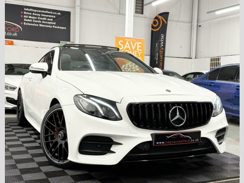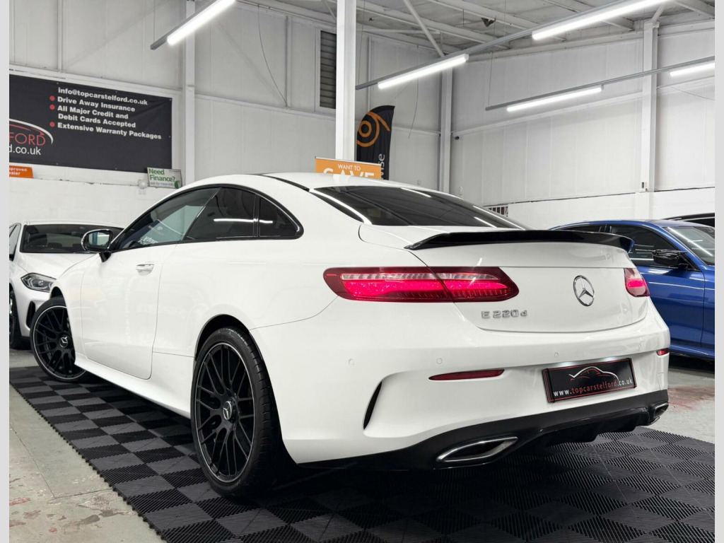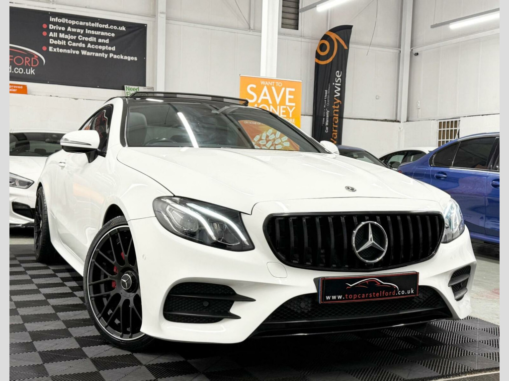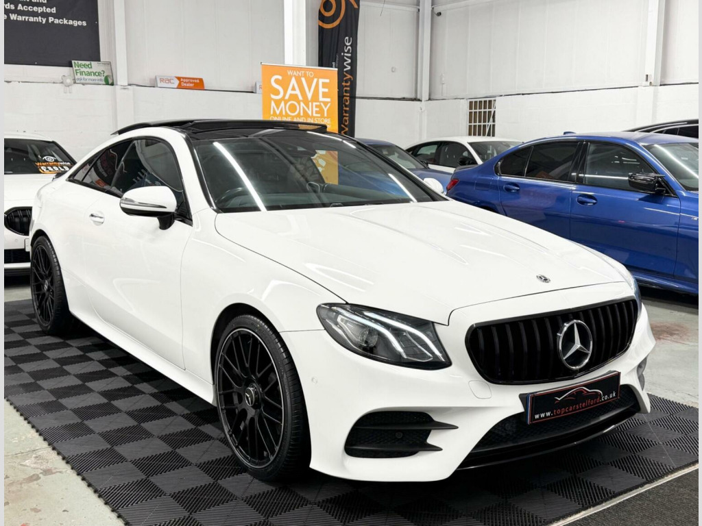 JUST ARRIVED AWAITING PREP PLEASE CALL TO REGISTER YOUR INTREST OR RESERVE ONLINE £99 DEPOSIT FULLY REFUNDABLE SUBJECT TO VIEW, ANOTHER IMMACULATE EXAMPLE HIGHLY POPULAR AND ATTRACTIVE FACELIFT MODEL MERCEDES E CLASS E220D 2.0 AMG LINE PREMIUM COUPE EDITION 9GDCT AUTO, IN ARGUABLY THE MOST DESIRABLE COLOUR DIAMOND PEARL WHITE, HUGE UPGRADES INCLUDE VIRTUAL DISPLAY PANORAMIC ROOF NIGHT PACK BLACK EXT STYLING GT STYLE GRILL REAR LIP SPOILER RARE 20IN AMG SPOKE GLOSS BLACK ALLOYS AND MORE, LOW MILEAGE FULL SERVICE HISTORY 6 SERVICES IN TOTAL RECENT SERVICE LONG MOT PRE DELIVERY INSPECTION COMPLETE, VERY STYLISH AND SLEEK, LUXARY AT ITS BEST EVERYTHING YOU CAN ASK FOR, %100 TICKS ALL THE BOXES SATNAV 360 CAMERA HEATED SEATS HIGHLY POPULAR AMBIENT LIGHTING AMG SPORT SEATS, WARRANTY WISE APPROVED DEALER HPI CLEAR NATIONWIDE WARRANTY £0 DEPOSIT LOW RATE FINANCE FROM AS LITTLE AS 8.9%APR, DRIVE AWAY TODAY FROM £70 P/ WEEK FINANCE SPECIALIST CLICK AND COLLECT OR BUY ONLINE NATIONWIDE DELIVERY T&C APPLY OR DRIVE AWAY IN ONE HOUR, TRULY IN OUTSTANDING CONDITION WELL MAINTAINED CREDIT TO ITS PREVIOUS OWNER VIEWING ESSENTIAL, STUNNING EYE CATCHING LOOKS VERY STYLISH AND SLEEK LOW RUNNING COSTS GREAT FUEL ECONOMY DRIVE AROUND IN PURE COMFORT AND STYLE, NOT TO BE MISSED OUT ON, ALL OF OUR CARS ARE SPECIALLY SOURCED AND WE STRIVE TO BE THE MOST COMPETITIVE AROUND WHEN COMPARED TO LIKE TO LIKE VEHICLES, COMES COMPLETE WITH ALL ITS PAPERWORK TO HAND, Truly a Unique Opportunity At Exceptional Value At TopCarsTelford We Pride Ourselves in Only Selling Top Quality Cars That Are Fully inspected HPI Checked with report providing you with complete peace of mind guaranteed customer satisfaction viewing highly recommended you will not be disappointed, EXTENSIVE WARRANTY PACKAGES, BUILD YOUR OWN FINANCE PACKAGE APPLY DIRECTLY ON OUR WEBSITE, ALL MAJOR DEBIT/CREDIT CARDS ACCEPTED Please call to arrange test-drive indoor showroom, viewing available by appointment for any online enquires including our 5 Star verified customer reviews Please visit our website WWW.TOPCARSTELFORD.CO.UK