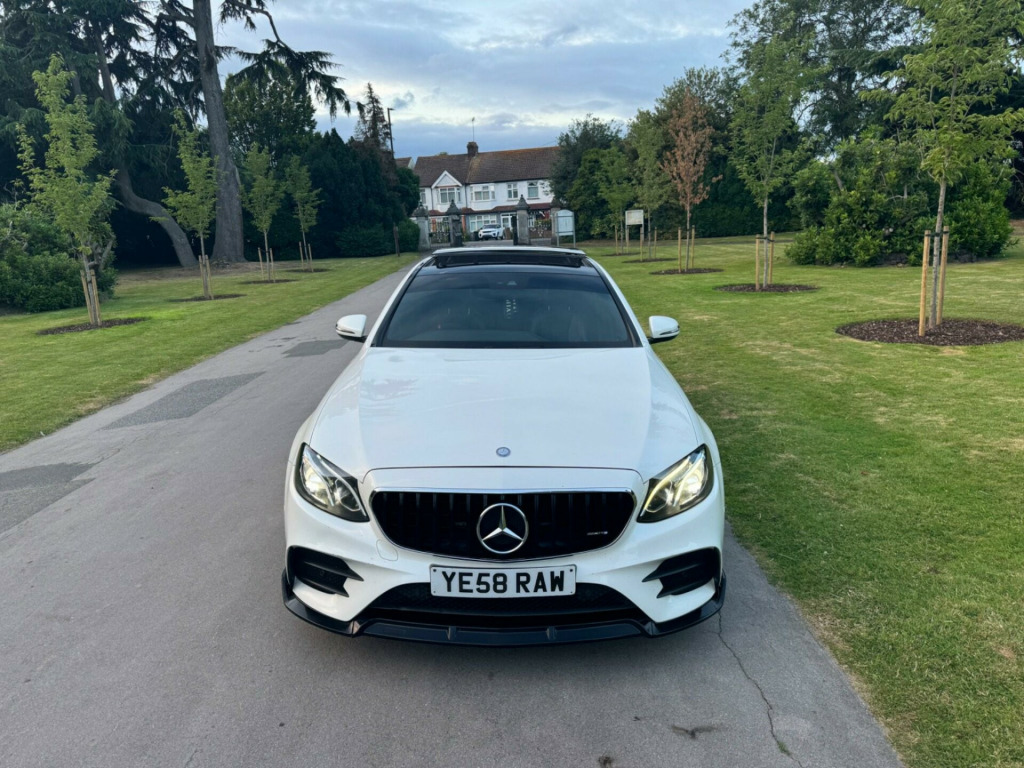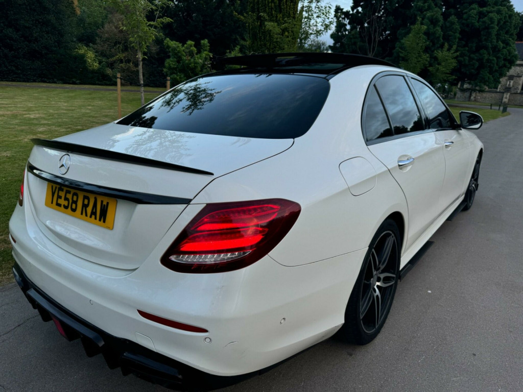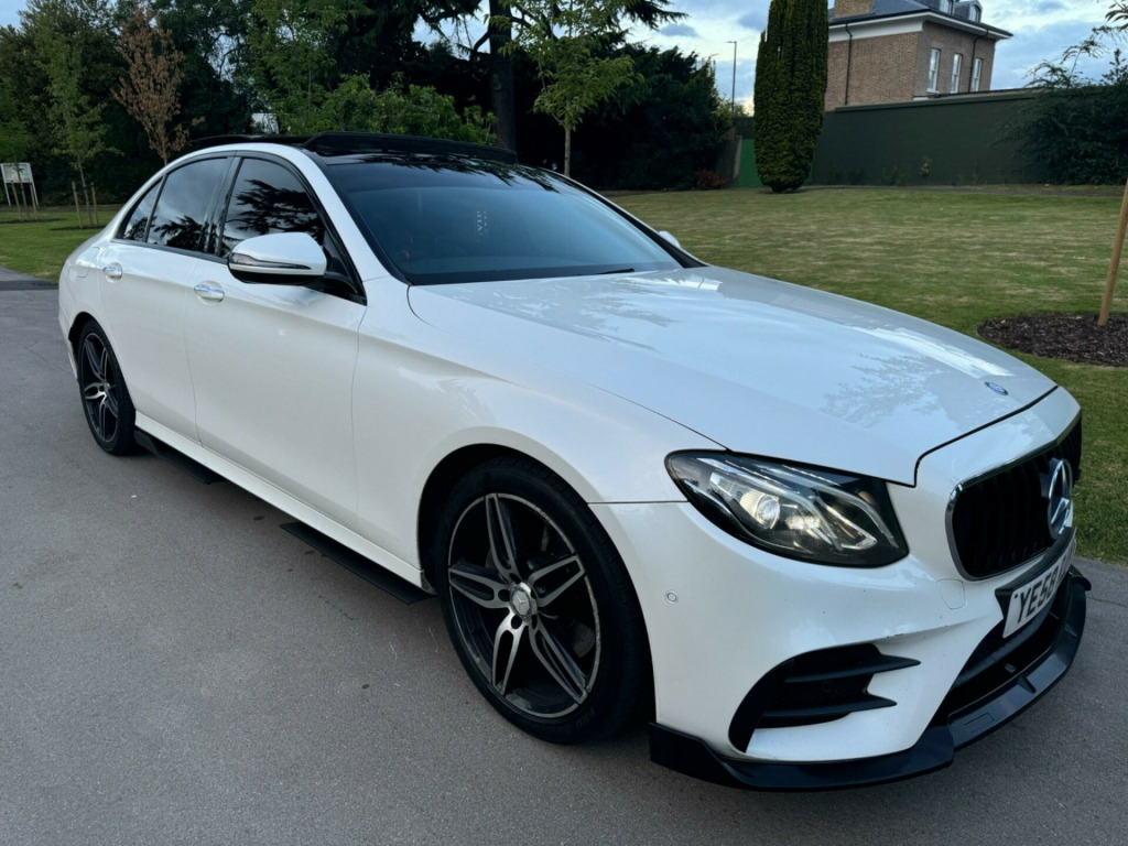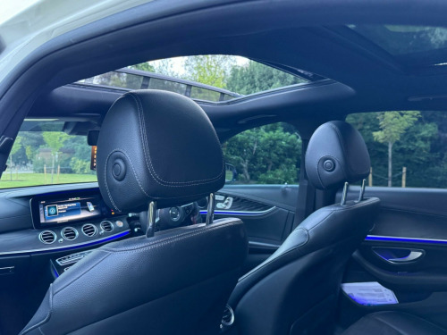 Mercedes-Benz E Class 2.0 E220d AMG Line (Premium) G-Tronic+ Euro 6 (s/s) AMG Bodystyling - Front and Rear Apron - Side Skirts, AMG Boot Lid Spoiler in gloss black Colour, ATTENTION Assist, Active Bonnet - Pedestrian Safety which Detects an Impact and Raises Bonnet, Active Brake ASSIST, Agility Control Suspension with Selective Damping System and Lowering by 15mm, Alarm System with Immobiliser and Interior Protection, Audio 20 USB, Automatic Child Seat Recognition Sensor, Automatic Climate Control - Two-Zone, Belt Feeder, Black Roof Liner, Cruise Control with SPEEDTRONIC Variable Speed Limiter, DAB Digital Radio Tuner, Door Mirrors - Heated and Electrically Adjustable, Door Pins in Chrome, Dynamic Select with a Choice of Driving Modes - Comfort - ECO - Sport - Sport Plus - Individual, ESP - Electronic Stability Programme, Electric Parking Brake, Electronic Key - Chrome Surround, First Aid Kit and Warning Triangle, Front Door Sill Panels with Mercedes-Benz Lettering - Illuminated, Garmin MAP PILOT Navigation System, Head Restraints for Driver and Front Passenger 4-Way and in Rear 2-Way Adjustability, Headlamps - LED High Performance with Integrated LED Daytime Running Lights, Heated Front Seats, Incorrect Fuelling Protection, Interior 64-Colour Ambient Lighting, KEYLESS-GO Starting Function, Mercedes Me Connect, Parking Pilot including PARKTRONIC Front and Rear Parking Sensors, Pre-Installation for Roof Rail Systems, Pre-Safe Anticipatory Safety System, Premium Package, Remote Boot Release, Reversing Camera, Seat Comfort Package - Driver and Front Passenger Seat, Seat Occupancy Sensor - Front Passenger Seat, Seats - Rear Split Folding 40-20-40, Sports Pedals in Brushed Stainless Steel with Black Rubber Studs, Status Display for Rear Seat Belts in Instrument Cluster, Sun Visors with Illuminated Vanity Mirrors, Top Surround of Side Windows in Polished Aluminium, Trim - Black Open-Pore Ash Wood, Tyre Pressure Monitoring System, USB Port in Centre Console, Waistline in Polished Aluminium, Night Package, Privacy Glass, ivacy glass