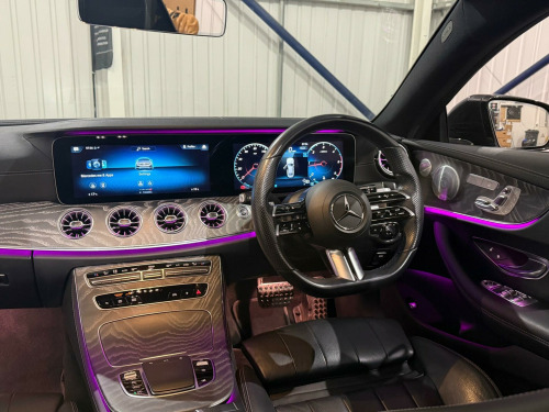 This 2021 Mercedes Benz E Class E220d AMG Line (Premium Plus) boasts a clear vehicle history, offering you peace of mind. Powered by a 2.0L Euro 6 diesel engine, this automatic transmission vehicle combines efficiency with performance. The AMG Line trim enhances its sporty appeal, while the Premium Plus designation signifies a wealth of desirable features. You'll appreciate the convenience of the Reversing Camera and Active Park Assist, which includes front and rear parking sensors, making manoeuvring effortless. Illumination is provided by LED High Performance headlamps with integrated daytime running lights, ensuring excellent visibility.Inside, the E Class offers a comfortable and connected experience. Automatic Climate Control with two zones allows you to tailor the cabin temperature to your preferences, and the Audio 20 USB system with Bluetooth connectivity keeps you entertained and in touch. Beyond these comforts, the generous boot space provides ample room for luggage or shopping, demonstrating how this E Class is designed for practicality. This combination of advanced technology, refined comfort, and spaciousness sets it apart. ather - black, 20in alloy wheels - multi-spoke design - painted in titanium grey with high-sheen finish, night package, nappa leather - black, 19in alloy wheels - 5-twin-spoke design - painted titanium grey with high-sheen finish, abs - anti-lock braking system, amg bodystyling - front and rear apron - side skirts, amg boot lid spoiler in body colour, attention assist, active bonnet - pedestrian safety measure which detects an impact and raises bonnet, active brake assist, active park assist, adaptive brake lights, adaptive brake system with hold function and brake drying in the wet, agility control suspension with selective damping system and lowering by 15mm, airbag - kneebag for driver, airbags - driver and front passenger with extended adaptivity for front passenger airbag, airbags - headbags, airbags - sidebag for driver and front passenger - combined thorax-pelvis bag, airbags - windowbags, alarm system with immobiliser and interior protection, analogue clock in centre console, audio 20 usb, automatic child seat recognition sensor, automatic climate control - two-zone, belt feeder, blind spot assist, brake wear warning display, central locking with interior switch-automatic locking and crash sensor with emergency opening function, central stowage compartment with 12v socket in centre console, cruise control with variable speed limiter, dab digital radio tuner, direct-steer speed sensitive steering, door pins in chrome, dynamic select with a choice of driving modes - comfort - eco - sport - sport plus - individual, esp - electronic stability programme, electric parking brake, electric windows - 4 - with one-touch opening and closing - including obstruction sensors, electronic key - chrome surround, exhaust system - visible twin-pipe integrated into the bumper, first aid kit and warning triangle, floor mats with amg lettering, front centre armrest with stowage compartment, front door sill panels with mercedes-benz lettering - illuminated, glove compartment - lockable - air-conditioned and illuminated, head restraints for driver and front passenger 4-way and in rear 2-way adjustability, headlamps - led high performance with integrated led daytime running lights, heated front seats, high-resolution 12.3in multimedia colour display, isofix child seat attachment points - rear seats, incorrect fuelling protection, instrument cluster - widescreen 12.3in cockpit display, interior 64-colour ambient lighting, keyless-go starting function, mercedes me connect, mirror package, outside temperature display, perforated front brake discs with mercedes-benz lettering, pre-installation for roof rail systems, pre-safe anticipatory safety system, premium plus package, privacy glass, radiator grille with integrated mercedes-benz star - single louvre in matt iridium silver with chrome trim, rain sensing windscreen wipers, rear lights - led, remote boot release, reversing camera, run flat tyres, sd card-based navigation system, seat belts - three-point, seat comfort package - driver and front passenger seat, seat occupancy sensor - front passenger seat, seats - rear split folding 40-20-40, service indicator assyst, sports pedals in brushed stainless steel with black rubber studs, status display for rear seat belts in instrument cluster, steering column - manually adjustable for height and reach, steering wheel - 3-spoke amg multi-function with touch control buttons - trimmed in black nappa leather with flattened bottom section, steering wheel - gear shift paddles, steering wheel - touch-control buttons for audio and onboard settings, stowage package, sun visors with illuminated vanity mirrors, sunglasses compartment in overhead control panel, top surround of side windows in polished aluminium, touchpad with control wheel, trim - centre console in black open-pore ash wood, trim - dashboard and door - black open-pore ash wood, trim - upper dashboard - artico leather with contrast top stitching, trip computer in multi-function display showing current fuel consumption, tyre pressure monitoring system, usb ports in centre console x2, usb ports in the rear x2, waistline in polished aluminium