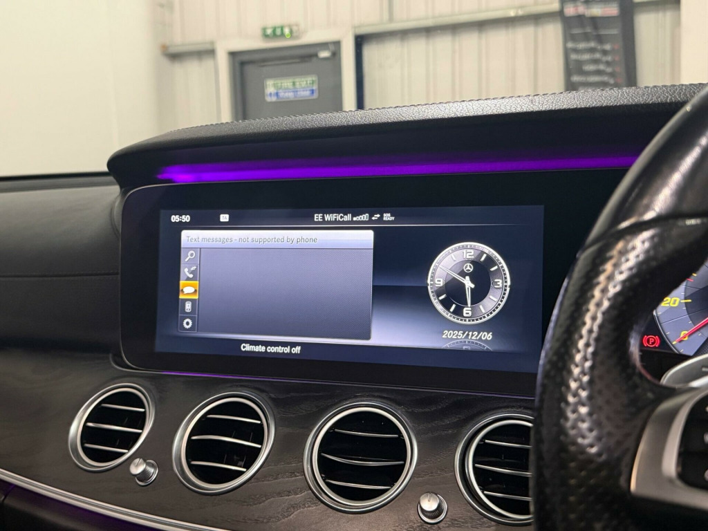 With only two owners and a clear vehicle history check, this 2016 Mercedes Benz E Class E220d AMG Line (Premium) presents a compelling proposition. This stylish saloon features a 2.0L diesel engine, meeting Euro 6 emissions standards, and has covered a modest 70,000 miles for its age. Inside, you'll find a luxurious Nappa Leather interior in black, complemented by the impressive 12.3in Widescreen Cockpit and a Panoramic Glass Sunroof that includes an opening function. Further enhancing your driving experience are the Lane Tracking Package for added safety and Mercedes Me Connect services for remote online functionality.This E Class stands out with its exceptional fuel economy, achieving an impressive 66 miles per gallon, and its low CO2 emissions, making it an environmentally conscious choice. The acceleration is brisk, reaching 0-62mph in just 7.3 seconds, demonstrating its capable performance. You'll also appreciate the generous boot space, offering ample room for luggage or shopping. These highlights collectively indicate that this Mercedes Benz E Class offers a superior blend of efficiency, performance, and practicality compared to other vehicles in its class. .3in widescreen cockpit, mercedes me connect - remote online, nappa leather - black, seats - rear split folding 40-20-40, lane tracking package, 19in alloy wheels - amg twin-spoke design - titanium grey - high sheen finish, abs - anti-lock braking system, amg bodystyling - front and rear apron - side skirts, attention assist, active bonnet - pedestrian safety which detects an impact and raises bonnet, active brake assist, active parking assist including parktronic, adaptive brake lights, adaptive brake system with hold function and brake drying function, agility control, airbag - drivers knee, airbags - driver and front passenger with extended adaptivity for front passenger airbag, airbags - sidebag for driver and front passenger - combined thorax-pelvis bag, airbags - windowbags, alarm system with immobiliser and interior protection, analogue clock in centre console, audio 20 usb, automatic child seat recognition sensor, brake calipers with mercedes-benz lettering, brake wear warning display, brushed stainless steel sports pedals with rubber studs, central locking with interior switch - automatic locking and crash sensor with emergency opening function, central stowage compartment with 12v socket in centre console, childproof locks - manually operated for rear doors and electrically operated for rear power windows, courtesy lights in rear grab handles with reading light functionality, cruise control with speedtronic variable speed limiter, dab digital radio tuner, dashboard - artico leather upper dashboard in black with contrast topstitching, direct-steer speed sensitive steering, door mirrors - electrically adjustable and heated, door pins in chrome, drivers seat - height-adjustable, dynamic select with a choice of driving modes - comfort - eco - sport - sport plus - individual, esp - electronic stability programme, electric parking brake, electric windows - 4 - with one-touch opening and closing - including obstruction sensors, electronic key - chrome surround, exhaust system - visible twin-pipe integrated into the bumper, first aid kit and warning triangle, floor mats - amg lettering - black, front centre armrest with stowage compartment, front door sill panels with mercedes-benz lettering, front four way partially electric seat adjustment, front seats - electrical height and backrest adjustment, garmin map pilot navigation system, glove compartment - illuminated, head restraints for driver and front passenger - 4-way and in rear 2-way adjustability, headlamps - led high performance with integrated led daytime running lights, heated windscreen washer system, isofix child seat fixing points in rear - two outer seats, incorrect fuelling protection, instrument cluster with two tube-design round dials and 8.4in tft multifunction display, interior 64-colour ambient lighting, keyless-go starting function, keyless go comfort package, memory package, mercedes me connect, mirror package, outside temperature display, panoramic glass sunroof, polished aluminium waistline, pre-safe anticipatory safety system, radiator grille with integrated star - two louvres in matt iridium silver with chrome trim, radio aerial integrated into rear window, rain sensing windscreen wipers, rear lights - led, remote boot release, reversing camera, run flat tyres, seat occupancy sensor - front passenger seat, seats - heated front, service indicator assyst, status display for rear seat belts in instrument cluster, steering column - manually adjustable for height and reach, steering wheel - 3-spoke multi-function amg in black nappa leather, steering wheel - multi-function with gearshift paddles, steering wheel - touch-control buttons for audio and onboard settings, stowage package, sun visors with illuminated vanity mirrors, sunglasses compartment in overhead control panel, thermatic - automatic climate control - two-zone, three point seat belts for all seats, tinted glass all round - green, top surround of side windows in polished aluminium, trim - black open-pore ash wood, trim - centre console in high-gloss black, trip computer in multi-function display, tyre pressure monitoring system, usb port in centre console