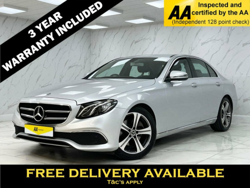 With a full dealership service history and a clear vehicle check, this 2019 Mercedes-Benz E220d SE offers peace of mind alongside its sophisticated design. The E Class, with its 2.0L diesel engine and Euro 6 emission class, combines performance with environmental consciousness. The SE trim adds a touch of luxury with features like heated front seats and a widescreen 12.3in cockpit display. Stay connected and entertained with Audio 20 USB, which includes Bluetooth connectivity. Driving is made easier and safer with blind spot assist and a parking package that includes active parking assist with front and rear parking sensors. This particular model stands out with its low mileage of just 47687 miles for its age, suggesting it has been carefully driven and maintained. The impressive acceleration, reaching 0-60mph in just 7.3 seconds, demonstrates its responsive performance. In addition, the large boot space makes it more practical than similar vehicles in its class, offering ample room for luggage, shopping, or anything else you need to transport. Leather - Black, Iridium Silver, 17in Alloy Wheels - 5-Twin-Spoke Design , ABS - Anti-Lock Braking System, ATTENTION Assist, Active Bonnet - Pedestrian Safety Measur, Active Braking Assist, Active Parking Assist with Reversing Cam, Adaptive Brake Lights, Adaptive Brake System with HOLD Function, Agility Control Suspension with Selectiv, Airbag - Kneebag for Driver, Airbags - Driver and Front Passenger wit, Airbags - Sidebag for Driver and Front P, Airbags - Windowbags, Alarm System with Immobiliser and Interi, Analogue Clock in Centre Console, Audio 20 USB, Automatic Child Seat Recognition Sensor, Automatic Climate Control - Two-Zone, Automatic Headlights, Blind Spot Assist, Brake Wear Warni