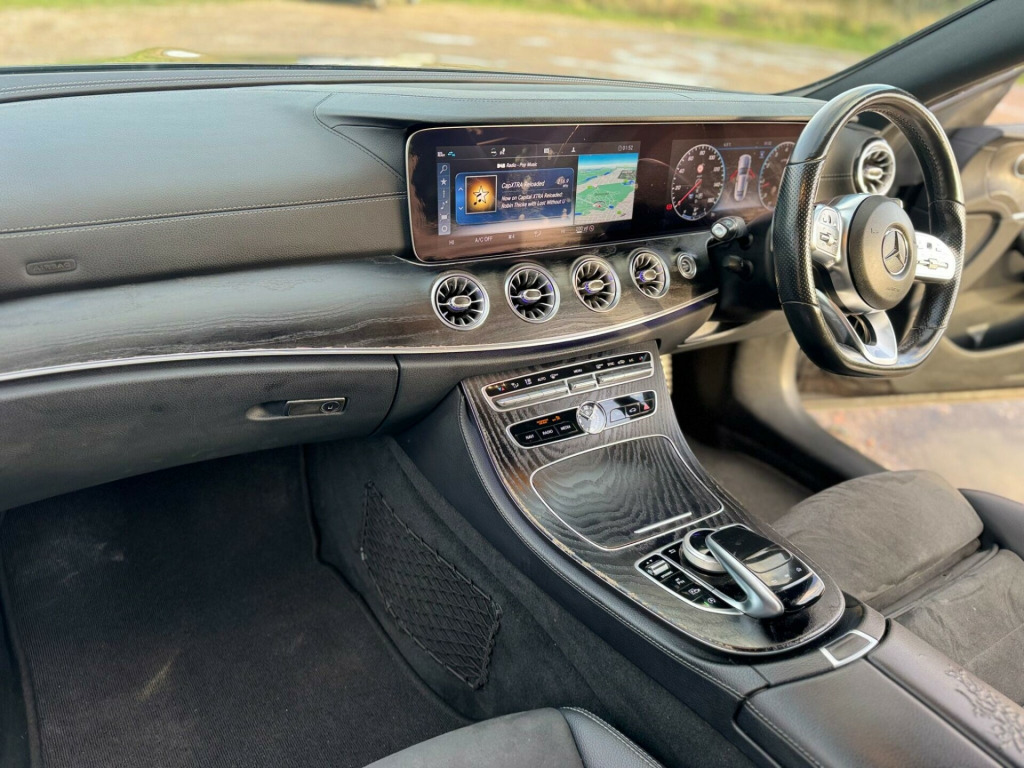 This 2019 Mercedes Benz E Class E300 AMG Line boasts a remarkable provenance, having been cherished by only two owners. Under the bonnet, you'll find a responsive 2.0 litre petrol engine, compliant with Euro 6 emissions standards, paired with an AMG Line trim that promises a dynamic driving experience. This E Class comes equipped with a sports exhaust system for an enhanced sound, and LED High Performance headlamps with integrated LED daytime running lights for excellent visibility. Inside, enjoy the comfort of automatic two zone climate control and the convenience of the Audio 20 USB system with Bluetooth connectivity.The E300 AMG Line also features Active Park Assist, utilising front and rear sensors to make parking effortless. You'll appreciate the generous boot space, offering ample room for luggage or shopping. Furthermore, its low CO2 emissions indicate a more environmentally conscious choice compared to many vehicles in its class. These carefully selected features and its low owner count demonstrate how this Mercedes Benz E Class offers a superior ownership proposition. iving assistance package, 20in alloy wheels - amg multi-spoke-design - painted in high-gloss black with high-sheen finish, leather - black, 19in alloy wheels - 5-twin-spoke design - painted titanium grey with high-sheen finish, abs - anti-lock braking system, amg bodystyling - front and rear apron - side skirts, amg boot lid spoiler in body colour, attention assist, active bonnet - pedestrian safety measure which detects an impact and raises bonnet, active brake assist, active park assist, adaptive brake lights, adaptive brake system with hold function and brake drying in the wet, agility control suspension with selective damping system and lowering by 15mm, airbag - kneebag for driver, airbags - driver and front passenger with extended adaptivity for front passenger airbag, airbags - headbags, airbags - sidebag for driver and front passenger - combined thorax-pelvis bag, airbags - windowbags, alarm system with immobiliser and interior protection, analogue clock in centre console, audio 20 usb, automatic child seat recognition sensor, automatic climate control - two-zone, belt feeder, blind spot assist, brake wear warning display, central locking with interior switch-automatic locking and crash sensor with emergency opening function, central stowage compartment with 12v socket in centre console, cruise control with variable speed limiter, dab digital radio tuner, direct-steer speed sensitive steering, door pins in chrome, dynamic select with a choice of driving modes - comfort - eco - sport - sport plus - individual, esp - electronic stability programme, electric parking brake, electric windows - 4 - with one-touch opening and closing - including obstruction sensors, electronic key - chrome surround, exhaust system - visible twin-pipe integrated into the bumper, first aid kit and warning triangle, floor mats with amg lettering, front centre armrest with stowage compartment, front door sill panels with mercedes-benz lettering - illuminated, glove compartment - lockable - air-conditioned and illuminated, head restraints for driver and front passenger 4-way and in rear 2-way adjustability, headlamps - led high performance with integrated led daytime running lights, heated front seats, high-resolution 12.3in multimedia colour display, isofix child seat attachment points - rear seats, instrument cluster - widescreen 12.3in cockpit display, interior 64-colour ambient lighting, keyless-go starting function, mercedes me connect, mirror package, outside temperature display, perforated front brake discs with mercedes-benz lettering, pre-installation for roof rail systems, pre-safe anticipatory safety system, privacy glass, radiator grille with integrated mercedes-benz star - single louvre in matt iridium silver with chrome trim, rain sensing windscreen wipers, rear lights - led, remote boot release, reversing camera, run flat tyres, sd card-based navigation system, seat belts - three-point, seat comfort package - driver and front passenger seat, seat occupancy sensor - front passenger seat, seats - rear split folding 40-20-40, service indicator assyst, sports exhaust system, sports pedals in brushed stainless steel with black rubber studs, status display for rear seat belts in instrument cluster, steering column - manually adjustable for height and reach, steering wheel - 3-spoke amg multi-function with touch control buttons - trimmed in black nappa leather with flattened bottom section, steering wheel - gear shift paddles, steering wheel - touch-control buttons for audio and onboard settings, stowage package, sun visors with illuminated vanity mirrors, sunglasses compartment in overhead control panel, top surround of side windows in polished aluminium, touchpad with control wheel, trim - centre console in black open-pore ash wood, trim - dashboard and door - black open-pore ash wood, trim - upper dashboard - artico leather with contrast top stitching, trip computer in multi-function display showing current fuel consumption, tyre pressure monitoring system, usb ports in centre console x2, usb ports in the rear x2, waistline in polished aluminium