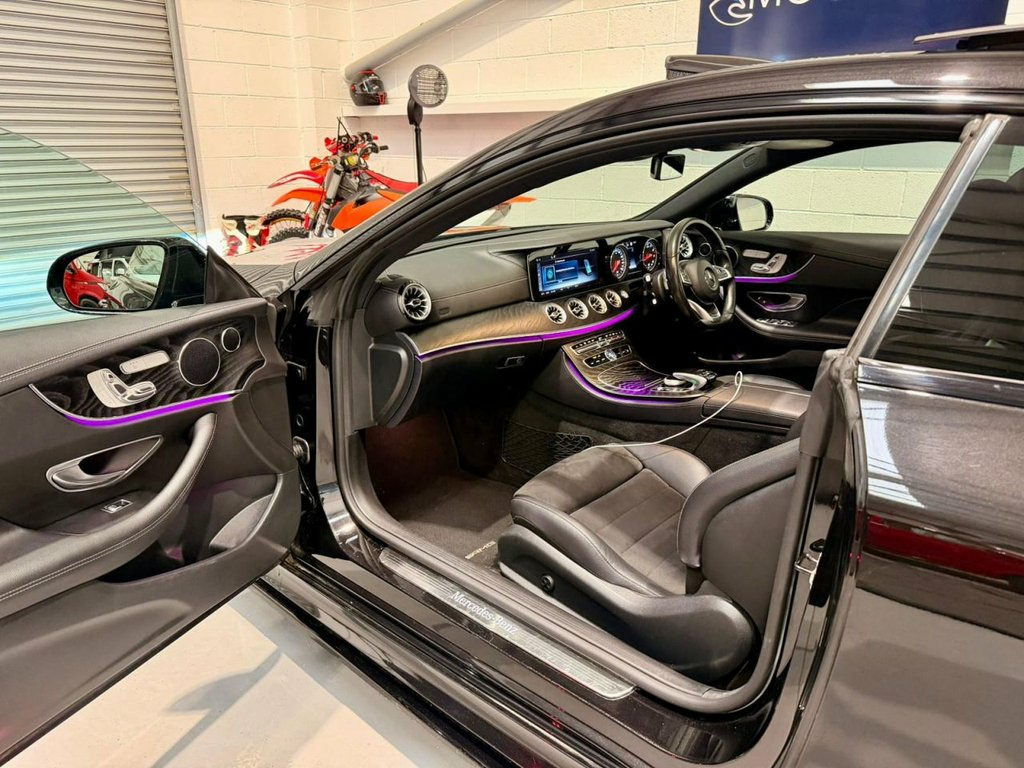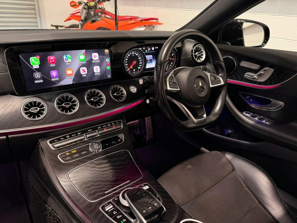 2018 Mercedes-Benz E-Class E300 AMG Line Premium Plus Coupe Presented in Obsidian Black Metallic, this Mercedes-Benz E300 Coupe perfectly blends performance, luxury, and technology. With its sleek coupe styling, AMG body kit, and diamond grille, it delivers an unmistakable presence on the road. Inside, you're greeted by a premium black leather and Alcantara interior, enhanced with ambient lighting, open-pore black ash wood trim, and heated, memory-adjustable seats. The dual widescreen cockpit integrates Apple CarPlay, Android Auto, navigation, and a premium surround sound system for an exceptional in-car experience. Key Features: • AMG Line Premium Plus Package • Panoramic Sunroof • 19" AMG Alloy Wheels • Keyless-Go & Power Boot • Multi-colour Ambient Lighting • Dual 12.3" Digital Displays • Apple CarPlay / Android Auto • Parking Package with 360° Camera • Adaptive LED Headlights • Burmester Surround Sound System This example has been meticulously maintained and is presented in outstanding condition both inside and out. A truly refined car that combines elegance, technology, and dynamic driving pleaseure. Reg: T27 JHP (not included) PRIVATE SALE Please contact 07908066326 for any inquiries 19in Alloy Wheels - 5-Twin-Spoke Design , ABS - Anti-Lock Braking System, AMG Bodystyling - Front and Rear Apron -, AMG Boot Lid Spoiler in Body Colour, ATTENTION Assist, Active Bonnet - Pedestrian Safety which , Active Brake ASSIST, Active Park Assist, Adaptive Brake Assist with Hold Function, Adaptive Brake Lights, Agility Control Suspension with Selectiv, Airbag - Kneebag for Driver, Airbags - Driver and Front Passenger wit, Airbags - Headbags, Airbags - Sidebag for Driver and Front P, Airbags - Windowbags, Alarm System with Immobiliser and Interi, Analogue Clock in Centre Console, Artico Leather Upper Dashboard with Cont, Audio 20 USB, Automatic Child Seat Recognition Sensor, Automatic C