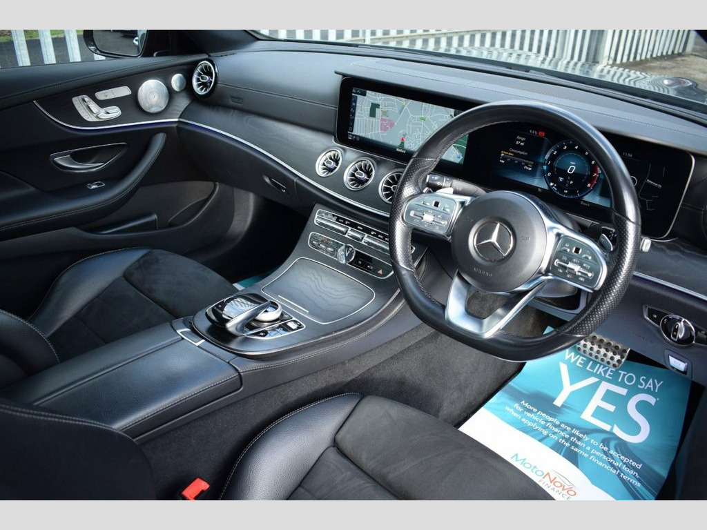 This rare Mercedes E300 looks stunning in this sporty colour combination and comes with great extras such as widescreen cockpit, panoramic roof, 20" wheels, burmester sound, comand navigation, heated seats and more! SELENITE GREY - BLACK LEATHER / ALCANTARA INTERIOR - AMG BODYSTYLING - AMG NIGHT PACKAGE - 20" AMG MULTI SPOKE WHEELS - DIGITAL COCKPIT / WIDESCREEN DASH - PANORAMIC GLASS SUNROOF - BURMESTER SURROUND SOUND - ELECTRIC MEMORY SEATS - KEYLESS ENTRY / START - POWERED BOOTLID ( UP & DOWN) - BLIND SPOT MONITOR - 360 VIEW CAMERA - REVERSE CAMERA - NAVIGATION SAT NAV - BI XENON HEADLAMPS - LED DAYTIME LIGHTS - CAR PLAY (APPLE & ANDROID) - HEATED FRONT SEATS - AMBIENT LIGHTING - BLUETOOTH PHONE PREP - BLUETOOTH AUDIO STREAM - ELECTRIC FOLDING MIRRORS - FRONT & REAR PARKING SENSORS - DAB DIGITAL RADIO - MULTI FUNCTION S/WHEEL - CRUISE CONTROL - PRIVACY GLASS - AUTO HEADLIGHT ACTIVATION - AUTO WIPER ACTIVATION - AIR CONDITIONING - CLIMATE CONTROL - EURO 6 ULEZ COMPLIANT Selenite Grey, Night Package, 20in Alloy Wheels - Multi-Spoke Design -, 20in Alloy Wheels - AMG Multi-Spoke-Desi, 19in Alloy Wheels - 5-Twin-Spoke Design , ABS - Anti-Lock Braking System, AMG Bodystyling - Front and Rear Apron -, AMG Boot Lid Spoiler in Body Colour, ATTENTION Assist, Active Bonnet - Pedestrian Safety Measur, Active Brake ASSIST, Active Park Assist, Adaptive Brake Lights, Adaptive Brake System with HOLD Function, Agility Control Suspension with Selectiv, Airbag - Kneebag for Driver, Airbags - Driver and Front Passenger wit, Airbags - Headbags, Airbags - Sidebag for Driver and Front P, Airbags - Windowbags, Alarm System with Immobiliser and Interi, Analogue Clock in Centre Con