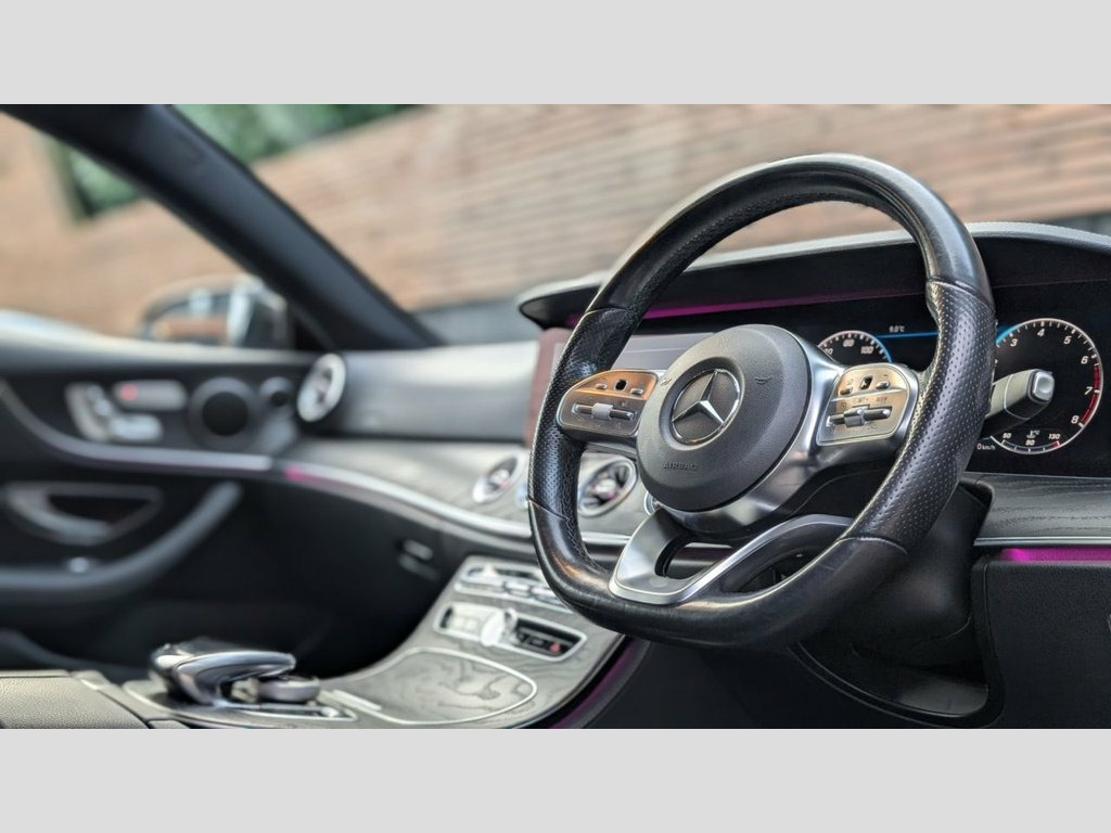 THIS STUNNING E CLASS COMES WITH A FANTASTIC SPEC INCLUDING - 20" Alloys - GTS Style grille - Obsidian black metallic paintwork - Black leather interior with black ash wood trims - Highly desired digital instrument display - High resolution widescreen media display with DAB - Electric memory seats incl. steering column and mirrors - Reverse camera - Apple/Android CarPlay - Wireless charging pad - 64 colour ambient lighting - Electric folding mirrors - Heated front seats - Dynamic LED headlights with automatic high beam assist - Collision prevention assist - OPTIONAL EXTRAS / UPGRADES AVAILABLE: - Optional brake caliper painting to a colour of your choice - Optional exterior de-chrome - Optional rear privacy - Optional gloss black badges - Optional de-badge - Optional 3 year manufacturer equivalent warranty available - The fitment of the brand new tyres, alloy wheels and styling parts are subject to a fee of £249. This also warrants the fitted parts for 12 months. - Number of keys to be confirmed at the point of sale. Obsidian Black, Leather - Black, ABS - Anti-Lock Braking System, AMG Bodystyling - Front and Rear Apron -, AMG Boot Lid Spoiler in Body Colour, ATTENTION Assist, Active Bonnet - Pedestrian Safety Measur, Active Brake ASSIST, Active Park Assist, Adaptive Brake Lights, Adaptive Brake System with HOLD Function, Agility Control Suspension with Selectiv, Airbag - Kneebag for Driver, Airbags - Driver and Front Passenger wit, Airbags - Headbags, Airbags - Sidebag for Driver and Front P, Airbags - Windowbags, Alarm System with Immobiliser and Interi, Analogue Clock in Centre Console, Automatic Child Seat Recognition Sensor, Automatic Climate Control - Two-Zone, Belt Feeder, Blind Spot Assist, Brake