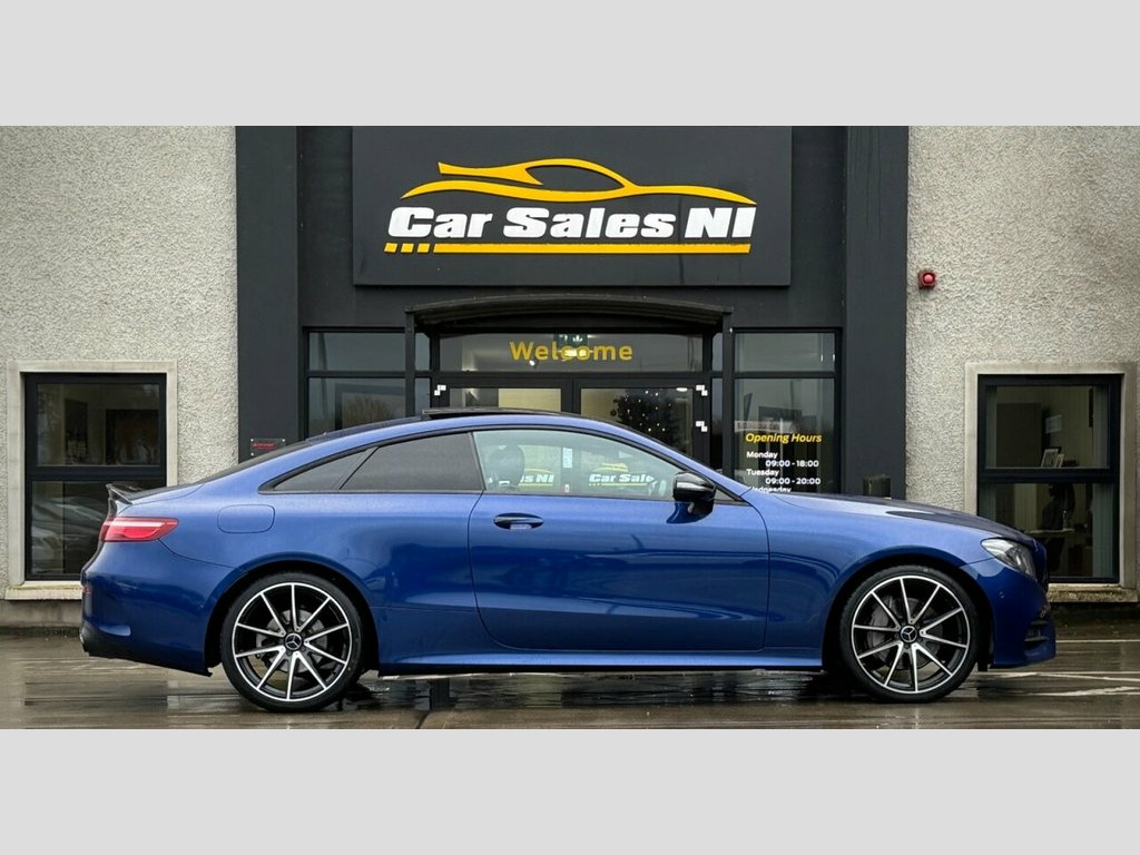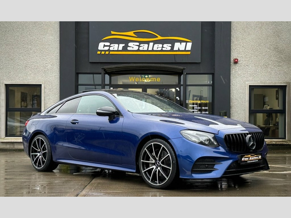 2020 MERCEDES-BENZ E-CLASS E300D AMG LINE PREMIUM PUS 242 BHP 2.0 Diesel Model, Covered 122k miles, Finished in Blue, Key Features include: Panoramic glass sunroof 20'' Upgraded alloy wheels (£990 Optional extra) LED Headlights Rear Privacy glass Front and Rear Parking sensors 360* Parking Camera Half Suede AMG Line Interior Leather Multifunctional steering wheel Paddle shift Heated front seats Dual Climate Control Electrically adjustable front seats Ambient Interior Lighting Pack Burmester Sound system Virtual cockpit DAB Radio / Bluetooth / Sat Nav Apple / Android Car Play Drive Mode Select ISOFIX Child seat Points And so much more... Call today to arrange a test drive Tailored finance packages available to suit your needs Comprehensive warranty on all cars Trade ins welcome Delivery to North and South of Ireland if required 19in Alloy Wheels - 5-Twin-Spoke Design , ABS - Anti-Lock Braking System, AMG Bodystyling - Front and Rear Apron -, AMG Boot Lid Spoiler in Body Colour, ATTENTION Assist, Active Bonnet - Pedestrian Safety Measur, Active Brake ASSIST, Active Park Assist, Adaptive Brake Lights, Adaptive Brake System with HOLD Function, Agility Control Suspension with Selectiv, Airbag - Kneebag for Driver, Airbags - Driver and Front Passenger wit, Airbags - Headbags, Airbags - Sidebag for Driver and Front P, Airbags - Windowbags, Alarm System with Immobiliser and Interi, Analogue Clock in Centre Console, Audio 20 USB, Automatic Child Seat Recognition Sensor, Automatic Climate Control - Two-Zone, Belt Feeder, Bl