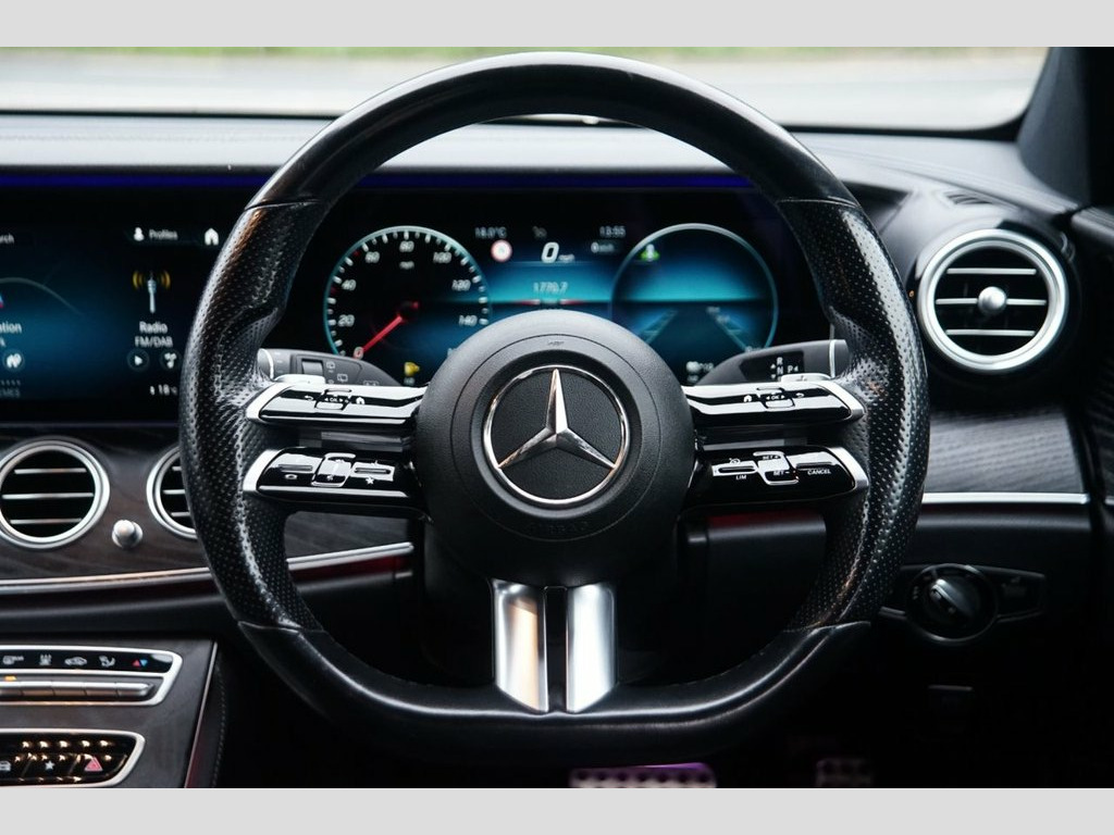 Prestige Car Supermarket in York presents this highly advanced and luxurious 2020 Mercedes-Benz E-Class E300de AMG Line Estate Plug-in Hybrid. Finished in Obsidian Black metallic paint, a desirable factory option costing £685.00, and featuring a comfortable Black Leather interior, this automatic diesel hybrid estate offers a powerful and refined driving experience. It rides on 18in AMG 5-Twin-Spoke light alloy wheels and features AMG Bodystyling with Chrome Roof Rails and an Exhaust System with visible twin tailpipe tips. Illumination is provided by Multibeam Intelligent Light System Headlights. Step inside the highly appointed cabin to find Heated Front Seats, an AMG 3-Spoke Nappa Leather Steering Wheel with gearshift paddles, and THERMOTRONIC Three-Zone Automatic Climate Control with Pre-Entry Climate Control. Technology is comprehensive with MBUX Infotainment with Voice Control, a 12.3in Widescreen Cockpit Display, and Wireless Charging. Convenience is a priority with a Parking Package including a Reversing Camera and Active Parking Assist, and an EASY-PACK Powered Tailgate. This model also includes Privacy Glass. Safety and driver assistance systems are extensive, including Blind Spot Assist, Active Braking Assist, and a Tyre Pressure Monitoring System (TPMS), ensuring a secure and confident drive. Leather - Black, Obsidian Black, 18in Alloy Wheels - AMG 5-Twin-Spoke Lig, ABS - Anti-Lock Braking System, AMG Bodystyling - Diamond Radiator Grill, AMG Bodystyling - Front and Rear Aprons , ATTENTION Assist, Acoustic Ambient Protection, Active Bonnet - Pedestrian Safety Measur, Active Braking Assist, Adaptive Brake Lights, Adaptive Brake System with HOLD Function, Airbag - Kneebag for Driver, Airbags - Driver and Front Passenger wit, Airbags - Sidebag for Driver and Front P, Airbags - Windowbags, Alarm System with Immobiliser and Interi, Automatic Child Seat Recognition Sensor, Autonomous Emergency Braking, Black Roof Lining, Blind Spot Assist, Brake Calipers with Mercedes-Benz Letter, Brak