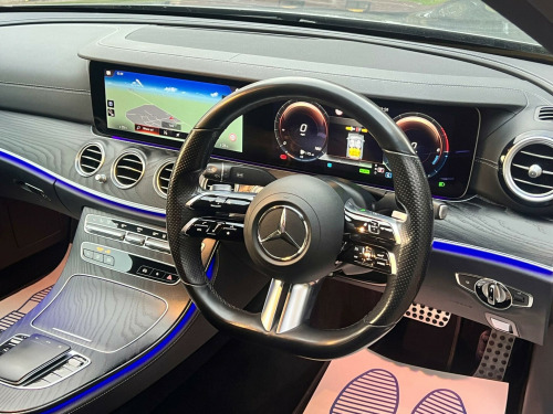 This 2020 Mercedes Benz E Class E300de AMG Line offers an exceptional blend of efficiency and luxury. As a Euro 6 compliant model, this 2.0 litre diesel plug in hybrid combines impressive performance with reduced emissions. The AMG Line trim enhances its sporty appeal, while the advanced Parking Package, featuring a 180 degree reversing camera and Active Parking Assist with PARKTRONIC, makes manoeuvring effortless. You'll also benefit from Blind Spot Assist for added safety and Multibeam Intelligent Light System headlights with Adaptive Highbeam Assist for optimal visibility.Inside, the E300de AMG Line is equipped for modern convenience. Enjoy seamless smartphone integration with Android Auto and Apple CarPlay, all accessible through the central stowage compartment which also includes a 12V socket and wireless phone charging. These features demonstrate how this Mercedes Benz E Class provides a superior driving experience compared to other vehicles in its class, offering advanced technology and driver assistance systems that enhance both comfort and safety on every journey., in alloy wheels - amg 5-twin-spoke light - painted in tantalite grey with high-sheen finish, abs - anti-lock braking system, amg bodystyling - diamond radiator grille with chrome pins - silver painted louvre and insert in chrome - front and rear apron - side sill panel, amg bodystyling - front and rear aprons in polished aluminium, attention assist, acoustic ambient protection, active bonnet - pedestrian safety measure which detects an impact and raises bonnet, active braking assist, adaptive brake lights, adaptive brake system with hold function and brake drying in the wet, airbag - kneebag for driver, airbags - driver and front passenger with extended adaptivity for front passenger airbag, airbags - sidebag for driver and front passenger - combined thorax-pelvis bag, airbags - windowbags, alarm system with immobiliser and interior protection, automatic child seat recognition sensor, autonomous emergency braking, black roof lining, blind spot assist, brake calipers with mercedes-benz lettering, brake wear warning display, central locking with interior switch - automatic locking and crash sensor with emergency opening function, central stowage compartment with 12v socket in centre console, charging cable for household socket - mode 2 - 8m-8a, charging cable for wallbox and public charging stations - mode 3 - 5m - 16 a, charging socket, charging system - ac charging system rated at 7.4 kw, childproof locks - manually operated for rear doors and electrically operated for rear power windows, comfort suspension, courtesy lights in rear grab handles with reading light functionality, cruise control with variable speed limiter, dab digital radio tuner, direct-steer speed sensitive steering, door mirrors - electrically adjustable and heated, door pins in black, dynamic select with a choice of driving modes - comfort - eco - sport - sport plus - individual, esp - electronic stability programme, electric parking brake, electric windows - 4 - with one-touch opening and closing - including obstruction sensors, electronic key - chrome surround, exhaust system - visible twin-pipe integrated into the bumper, exterior mirrors - body colour, first aid kit and warning triangle, floor mats - amg lettering, front centre armrest with stowage compartment, front door sill panels with mercedes-benz lettering - illuminated, front four way partially electric seat adjustment, glove compartment - lockable - air-conditioned and illuminated, head restraints for driver and front passenger 4-way and in rear 2-way adjustability, headlights - multibeam intelligent light system with adaptive highbeam assist, high-resolution 12.3in multimedia colour display, isofix child seat attachment points - two outer rear seats, incorrect fuelling protection, instrument cluster - widescreen 12.3in cockpit display, interior 64-colour ambient lighting, keyless-go starting function, mbux - mercedes-benz user experience - infotainment system, mbux multimedia system, media display - high resolution 12.3in touchscreen, mercedes me connect, mirror package, outside temperature display, parking package - 180 degree reversing camera - active parking assist with parktronic, parking package including active parking assist with front and rear parking sensors, pre-entry climate control, pre-installation for roof rail systems, pre-safe anticipatory safety system, privacy glass, radar-based recuperation, radio aerial integrated into rear window, rain sensor with automatic headlight activation, rear lights - led, remote boot release, run flat tyres, seat belts - three-point, seat comfort package - driver and front passenger seat, seat occupancy sensor - front passenger seat, seats - heated front, seats - rear split folding 40-20-40, service indicator assyst, smartphone integration, sports pedals in brushed stainless steel with rubber studs, status display for rear seat belts in instrument cluster, steering column - manually adjustable for height and reach, steering wheel - amg 3-spoke design in black nappa leather with flattened bottom section - chrome inserts with touch control buttons, steering wheel - multi-function with gearshift paddles, steering wheel - touch-control buttons for audio and onboard settings, sun visors with illuminated vanity mirrors, sunglasses compartment in overhead control panel, top surround of side windows in polished aluminium, touchpad with control wheel, traffic sign assist, trim - centre console in black open-pore ash wood, trim - dashboard and door - black open-pore ash wood, trim - upper dashboard - artico man-made leather with contrasting topstitching, trip computer in multi-function display showing current fuel consumption, tyre pressure monitoring system, usb ports in centre console x2, usb ports in the rear x2, wireless charging, leather - black