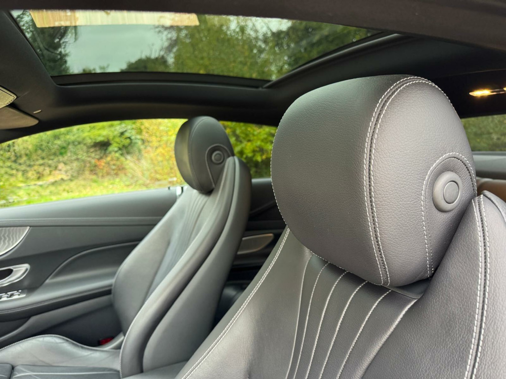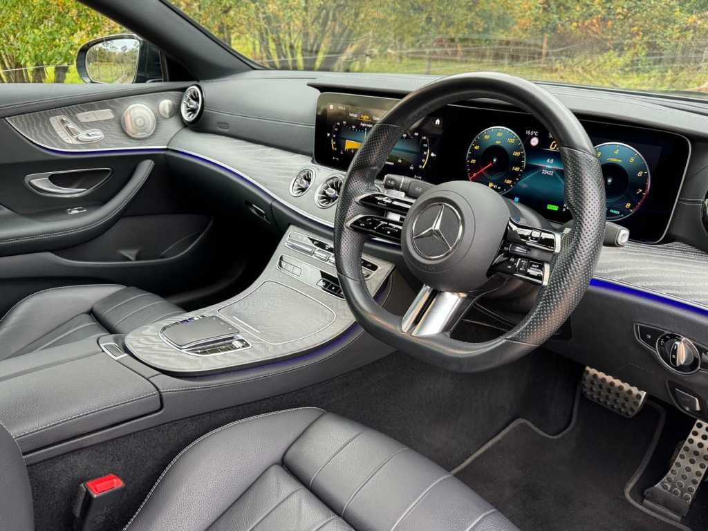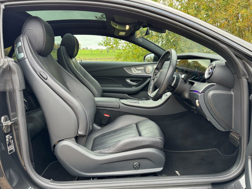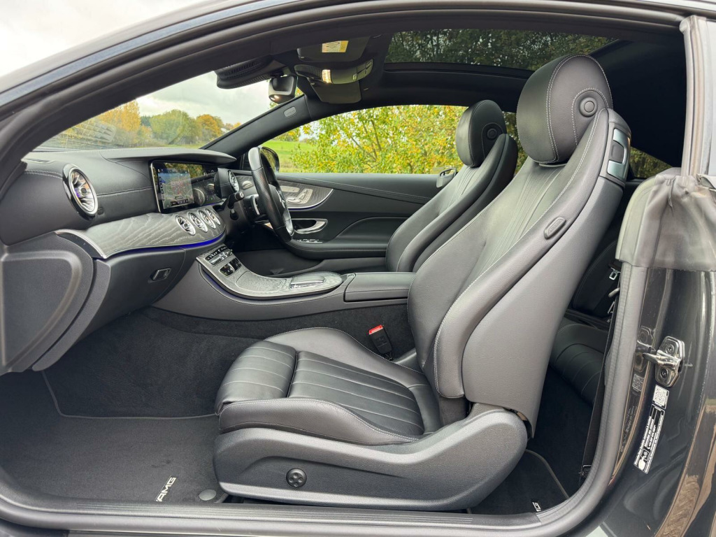 Winchmore Car Sales Ltd are delighted to be able to offer you this Stunning & Sporty FACELIFT Mercedes E300 AMG LINE COUPE with FULL NIGHT PACKAGE & PREMIUM PLUS PACKAGE Including GLASS PANORAMIC SUNROOF/FULL MEMORY PACKAGE, UPGRADED BURMESTER SOUND SYSTEM & WIDESCREEN DIGITAL COCKPIT!! This Beautiful Example is ONLY 1 OWNER from new and the 23,000 miles is covered by a FULL MERCEDES SERVICE HISTORY! It is beautifully finished in Modern Graphite Grey Metallic and Contrasted by a Full Black Leather Interior with White Stitching. This vehicle is offered with original manufacturers owners manuals and Spare Key. For your convenience we also offer very competitive rates on vehicle finance, all subject to acceptance. All our vehicles are HPI clear and need to be seen to be appreciated! This vehicle is VAT QUALIFYING, THE PRICE IS INCLUDING VAT & Could be reclaimed! Worldwide Export Also Available If Required!! ather - black, 20in alloy wheels - multi-spoke design - painted in high-gloss black with high-sheen finish, abs - anti-lock braking system, amg bodystyling - front and rear apron - side skirts, amg boot lid spoiler in body colour, attention assist, active bonnet - pedestrian safety measure which detects an impact and raises bonnet, active brake assist, active park assist, adaptive brake lights, adaptive brake system with hold function and brake drying in the wet, agility control suspension with selective damping system and lowering by 15mm, airbag - kneebag for driver, airbags - driver and front passenger with extended adaptivity for front passenger airbag, airbags - sidebag for driver and front passenger - combined thorax-pelvis bag, airbags - windowbags, alarm system with immobiliser and interior protection, automatic child seat recognition sensor, belt feeder, blind spot assist, brake calipers with amg lettering, brake wear warning display, burmester surround sound system, central locking with interior switch-automatic locking and crash sensor with emergency opening function, central stowage compartment with 12v socket in centre console, central stowage compartment with usb socket for use with android auto and apple carplay, cruise control with variable speed limiter, dab digital radio tuner, direct-steer speed sensitive steering, door pins in black, dynamic select with a choice of driving modes - comfort - eco - sport - sport plus - individual, esp - electronic stability programme, electric parking brake, electric windows - 4 - with one-touch opening and closing - including obstruction sensors, electronic key - chrome surround, energizing comfort package, first aid kit and warning triangle, floor mats with amg lettering, front centre armrest with stowage compartment, front door sill panels with mercedes-benz lettering - illuminated, glove compartment - lockable - air-conditioned and illuminated, head restraints for driver and front passenger 4-way and in rear 2-way adjustability, headlamps - multibeam led intelligent light system with adaptive highbeam assist, heated front seats, high-resolution 12.3in multimedia colour display, isofix child seat attachment points - rear seats, instrument cluster - widescreen 12.3in cockpit display, interior 64-colour ambient lighting, keyless-go comfort package, keyless-go starting function, live traffic information, mbux augmented reality for navigation, mbux multimedia system, mbux navigation plus, memory package, mercedes me connect, mirror package, outside temperature display, panoramic glass sunroof, parking package with 360-degree camera, pre-installation for roof rail systems, pre-installation for vehicle monitoring, pre-installation for vehicle set-up, pre-safe anticipatory safety system, privacy glass, radiator grille with integrated mercedes-benz star - single louvre in matt iridium silver with chrome trim, radio aerial integrated into rear window, rain sensing windscreen wipers, rear lights - led, remote boot release, run flat tyres, seat belts - three-point, seat comfort package - driver and front passenger seat, seat occupancy sensor - front passenger seat, seats - rear split folding 40-20-40, service indicator assyst, smartphone integration via android auto or apple carplay, sports pedals in brushed stainless steel with black rubber studs, status display for rear seat belts in instrument cluster, steering column - manually adjustable for height and reach, steering wheel - 3-spoke amg multi-function with touch control buttons - trimmed in black nappa leather with flattened bottom section, steering wheel - gear shift paddles, steering wheel - touch-control buttons for audio and onboard settings, stowage package, sun visors with illuminated vanity mirrors, sunglasses compartment in overhead control panel, thermotronic automatic climate control system with three climate zones and three climate styles, top surround of side windows in polished aluminium, touchpad without controller, traffic sign assist, trim - centre console in black open-pore ash wood, trim - dashboard and door - black open-pore ash wood, trim - upper dashboard - artico leather with contrast top stitching, trip computer in multi-function display showing current fuel consumption, tyre pressure monitoring system, usb ports in centre console x2, usb ports in the rear x2, visible twin-pipe exhaust system integrated into the bumper, waistline in polished aluminium, wireless charging