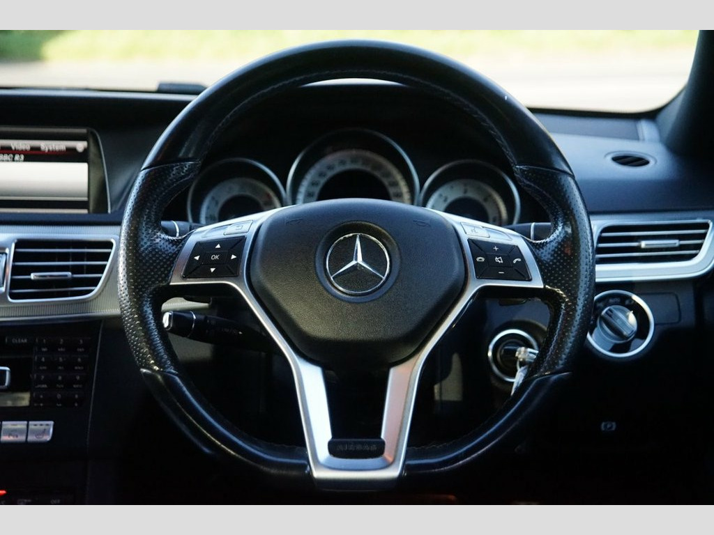 Prestige Car Supermarket in York presents this highly desirable and luxurious 2014 Mercedes-Benz E-Class E220 BlueTEC AMG Line Saloon. Finished in Palladium Silver metallic paint and featuring a comfortable optional Black Leather interior, costing £1075.00, this automatic diesel saloon offers a smooth and refined driving experience. It rides on 18in AMG 5-Twin-Spoke Design alloy wheels and features AMG Bodystyling with a Twin-Pipe Exhaust System. Illumination is provided by Partial LED Headlights with LED Daytime Running Lights and LED Tail Lights. Step inside the highly appointed cabin to find Heated Front Sports Seats with Electrical Adjustment and a Flat-Bottomed AMG Sports Steering Wheel in Nappa Leather with Gear Shift Paddles. Technology is comprehensive with a 7in Colour Display, DAB Digital Radio, COMAND Online System with Media Interface, and Linguatronic Voice Control. Convenience is a priority with Active Park Assist with PARKTRONIC, Cruise Control with SPEEDTRONIC Variable Speed Limiter, and Rain-Sensing Wipers. Safety and driver assistance systems are extensive, including COLLISION PREVENTION ASSIST PLUS, ATTENTION Assist, and a Tyre Pressure Monitoring System (TPMS), ensuring a secure and confident drive. Leather - Black, Palladium Silver, 10GB Music Register and MP3 Compatibilit, 18in Alloy Wheels - AMG 5 Twin Spoke Des, 3 Years Free European Map Updates, 7in Colour Display, ABS - Anti-Lock Braking System, AMG Bodystyling, AMG Bodystyling - Front and Rear Apron, AMG Bodystyling - Side Skirts, ASR - Acceleration Skid Control, ATTENTION Assist, Active Bonnet - Pedestrian Safety which , Active Park Assist with Parktronic, Adaptive Brake Lamps, Air-Conditioned and Lockable Glove Compa, Airbags - Drivers Kneebag, Airbags - Front Sidebags, Airbags - Multi Stage for Driver, Airbags - Multi Stage for Front Passenge, Airbags - Pelvisbag, Airbags - Windowbags for Driver and Fron, Airbags - Windowbags