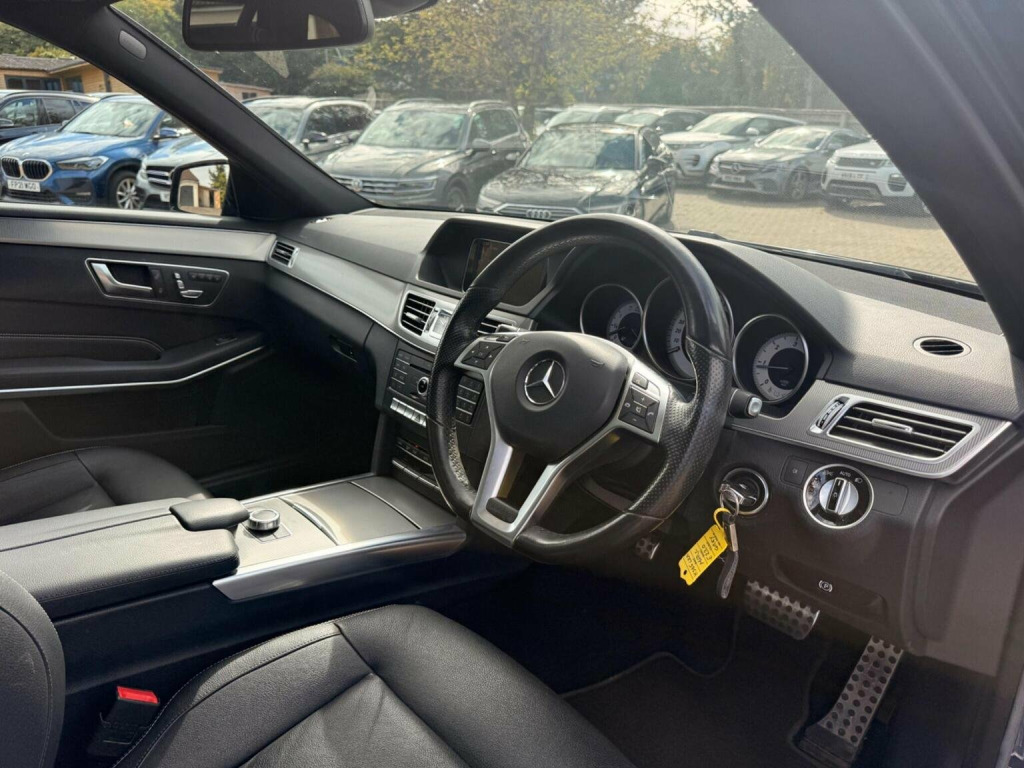 1 year MOT, Service History, HPI clear, Discover this exceptional 2015 Mercedes Benz E Class E220 AMG Night Edition (Premium) with remarkably low mileage for its age, boasting just 56,979 miles. This Euro 6 compliant 2.1L diesel model presents a clear vehicle history check, offering peace of mind. The AMG Night Edition trim enhances its sophisticated appeal, while features like front and rear parking sensors, a reversing camera, heated front seats, and automatic headlights ensure a comfortable and convenient driving experience. Adding to its premium feel, this E Class includes a panoramic glass sunroof, perfect for enjoying the open sky. The generous boot space provides ample room for luggage or shopping, making it a practical choice for various needs. These carefully selected features, combined with its excellent provenance and low mileage, set this Mercedes Benz E Class apart from other vehicles of its kind, offering a superior combination of style, comfort, and utility.