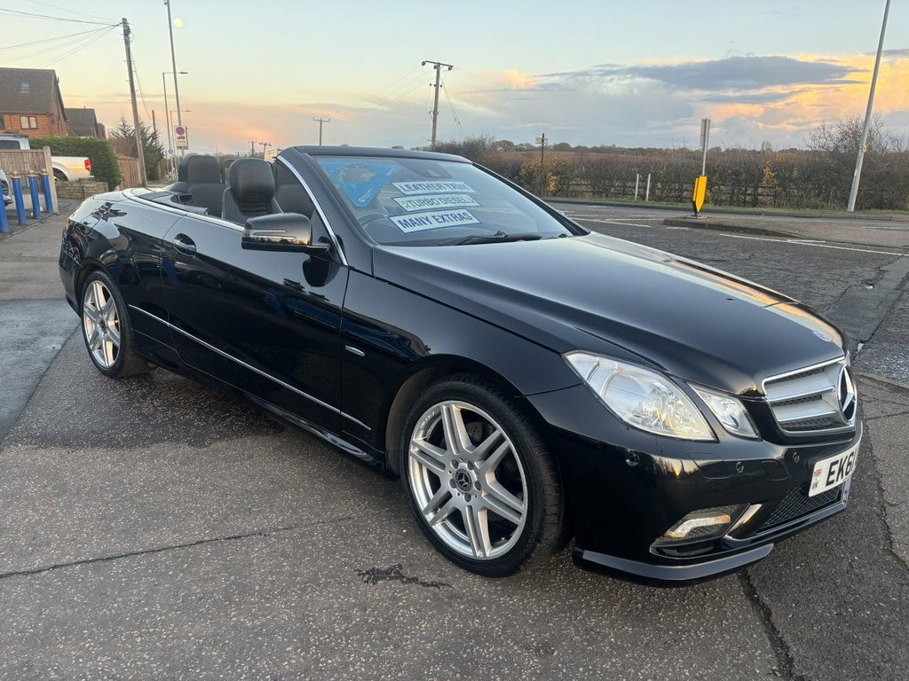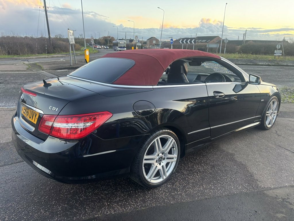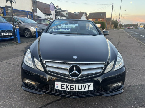 Finished in met black with a dark red convertible roof,Black leather upholstery. This 2011 Mercedes Benz E Class E220 CDI Sport Edition 125 presents itself with remarkably low mileage for its age, having covered just 85,000 miles. As a Sport Edition 125 variant, it boasts a 2.1 litre diesel engine, offering a blend of performance and efficiency. This particular model also benefits from being in a low insurance group, making it an attractive proposition for many drivers.The E220 CDI Sport Edition 125 is designed to provide a refined driving experience. Its Sport Edition 125 trim level signifies a focus on dynamic styling and enhanced features, setting it apart from other vehicles in its class. The combination of Mercedes Benz engineering, the efficient diesel engine, and the desirable Sport Edition 125 specification makes this E Class a compelling choice for those seeking quality and value. 18in Alloy Wheels - AMG 6 Twin Spoke Des, ABS - Anti-Lock Braking System, Active Bonnet - Pedestrian Safety which , Active Light System, Adaptive Brake System with Hold Function, Agility Control - Sports Suspension with, Airbags - Front Sidebags, Airbags - Multi Stage for Driver, Airbags - Multi Stage for Front Passenge, Airbags - Pelvisbag, Airbags - Windowbags and Drivers Knee Ai, AIRCAP - Wind Deflector and Draught-Stop, AIRSCARF - Neck Level Heating System, Alarm System with Immobiliser and Interi, AMG bodystyling - front-rear and side sk, ASR - Acceleration Skid Control, ATTENTION Assist, Audio 20 Radio-CD, Automatic Child Seat Recognition Sensor, Automatic Climate Control - Two-Zone-In