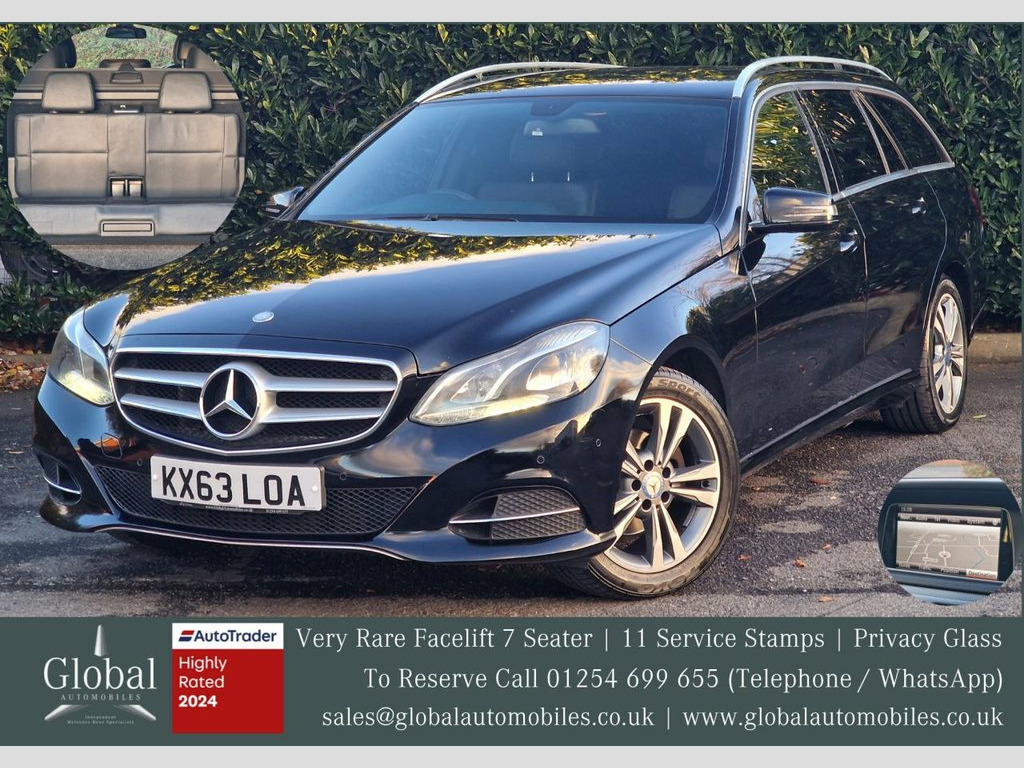 Buy with confidence from an Award Winning Independent Mercedes-Benz Specialist! We are delighted to offer our beautiful Mercedes E Class E220 CDi "SE" Automatic Diesel Estate finished in "Black (040)" and fitted with an Anthracite Black Leather interior (Electric / Heated) with matching door cards. This is the E Class you should be buying - Rare 7 Seater Model! Lastly owned by a Mature Gentleman since 2017, this Mercedes-Benz has just been meticulously maintained both mechanically and cosmetically. This E Class is supplied with its Original Manuals, Full Mercedes-Benz and Specialist Service History Record, MOT until October 2026, HPI Clearance Certificate and a Full and current V5 Logbook. The Factory Specification; Third Row Seven Seat Estate, Heated Leather Interior, Electric Front Seats, Active Park Assist (Front / Rear - Acoustic and Visual Parking Sensors), Cruise Control, Interior / Exterior Automatically Dimming Mirrors, COMAND Media System with Post Code Entry Navigation, DAB Satellite Radio, CD / DVD Player, Bluetooth Audio / Telephone and Multiple Media Inputs. Dual Zone Digital Climate Control, Air Conditioner, LED High Performance Headlamps with Signature Daytime Running Lamps, Avantgarde Suspension, Aluminium Interior Trim, Heated Windscreen Wash System, Automatic Seat Belt Status Indication, Automatic Child Seat Recognition, Isofix Child Seat Points In Rear, Electric Windows, Power Electric Mirrors, Rear Armrest with Storage and Cup Hol 18in Alloy Wheels - 5 Spoke Design, Airbags - Rear Sidebags, Ashtray and Cigarette Lighter, Fuel Tank - 80-litre, Graphite, Integrated Rear Child Seats, Luxury Automatic Climate Control, Mocha Black, Nappa Leather - Black, Obsidian Black, Privacy Glass - From B-Pillar Backwards, Rear-Facing Child Seats - Artico Leather, Rear-Facing Child Seats - Leather, Satellite Navigation - COMAND Online Sys, Speed Limit and Traffic Sign Assist, Sun Protection Package, Telephone Pre-Wiring with Hands-Free Fac, Tow Bar - Manually Folding - Excludes 13