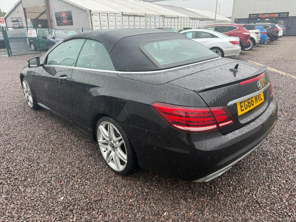 Mercedes-Benz E Class 2.1 E220d AMG Line Edition (Premium) Cabriolet G-Tronic+ Euro 6 (s/s) 2dr ? EG66MVL  2016 (66) | 69,000 miles | Diesel | Automatic (G-Tronic+) | Black | 3 Owners | ULEZ Compliant  A luxury convertible with AMG styling and premium features, this Mercedes-Benz E220d AMG Line Edition Premium Cabriolet combines refinement, performance, and style. Powered by the efficient 2.1 diesel Euro 6 engine with a smooth G-Tronic+ automatic gearbox, it?s equally suited to relaxed cruising or spirited drives ? and it?s fully ULEZ compliant.   Vehicle Highlights:  2.1 E220d Diesel | 177PS  G-Tronic+ Automatic with Paddle Shift  AMG Line body styling & sport suspension  Edition Premium model ? top specification  Electrically operated soft-top roof  69,000 miles | 3 Owners  Finished in Black Metallic  ULEZ Compliant   Premium Edition Features:  COMAND Online System with Sat Nav, Bluetooth, DAB & USB  Burmester Surround Sound Audio  Heated Front Seats with Airscarf (neck-level heating)  Full Leather Upholstery with AMG Detailing  Reversing Camera with Front & Rear Parking Sensors  Keyless Entry & Start  Multibeam LED Headlights with Adaptive High Beam Assist  Cruise Control & Speed Limiter  Dual-Zone Climate Control  18? AMG Alloy Wheels   Peace of Mind:  Fresh MOT ? no advisories  New Oil & Filter Service Completed  3 Month / 3,000 Mile Nationwide Warranty Included  HPI Clear   Why Buy From Us?  Nationwide Delivery Available  Flexible Finance Packages  Part Exchange Welcome AIRCAP - Wind Deflector and Draught-Stop, AMG Boot Lid Spoiler in Body Colour, ATTENTION Assist, Active Bonnet - Pedestrian Safety which , Adaptive Brake System with Full Hold Fun, Agility Control - Sports Suspension with, Alarm System with Immobiliser and Interi, Ambient Lighting for Centre Armrest - Fr, Analogue Clock, Automatic Child Seat Recognition Sensor, Bluetooth Interface for Hands-Free Telep, Brushed Stainless Steel Sports Pedals wi, Central Controller Dial to Operate Audio, Chrome Trim Window Highlights, Collision Prevention Assist Plus, Colour Instrument Cluster, Cruise Control with SPEEDTRONIC Variable, DAB Digital Radio Tuner, Daytime Running Lights - LED, Door Centre Panels in