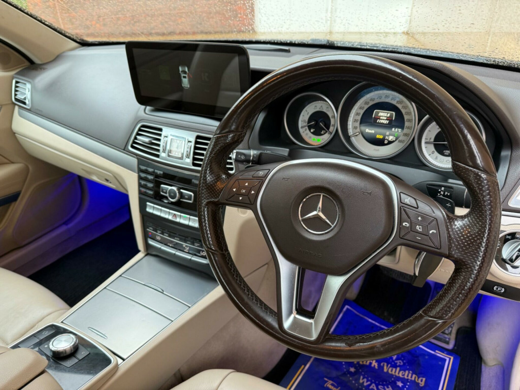 • 2014 Mercedes-Benz E-Class E220d SE • 2.1L Diesel Engine • Euro 6 Compliant • Only 3 Previous Owners • SE Specification • Excellent Fuel Economy – up to 60 MPG • Low CO₂ Emissions • Low Insurance GroupInterior & Comfort • Full Leather Interior • Heated Front Seats • Individual Rear Seats • Footwell LightingTechnology & Infotainment • Satellite Navigation • Large Colour Media Display • Apple CarPlay • Hard Disk Drive (Media Storage) • Bluetooth Connectivity • Phone Connection • CD / Radio Stereo • Mercedes-Benz Emergency Call SystemDriving & Convenience • Cruise Control • Automatic Lights • Electric Mirrors • Electric WindowsPracticality • Large Boot Space – ideal for everyday use and travelLocation & Sales Info • Based in Wilmslow (5 minutes from Manchester Airport) • Part Exchange Welcome. 10GB Music Register and MP3 Compatibility, 17in Alloy Wheels - 5 Twin-Spoke Design, 3 Years Free European Map Updates, 7in Colour Display, ABS - Anti-Lock Braking System, ASR - Acceleration Skid Control, ATTENTION Assist, Active Bonnet - Pedestrian Safety which Detects an Impact and Raises Bonnet, Active Park Assist with Parktronic, Adaptive Brake System with Full Hold Function, Agility Control Suspension with Adaptive Damping System, Airbags - Drivers Kneebag, Airbags - Front Sidebags, Airbags - Multi Stage for Driver, Airbags - Multi Stage for Front Passenger, Airbags - Pelvisbag, Alarm System with Immobiliser and Interior Protection, Ambient Lighting for Centre Armrest - Front Footwells and Door Handles, Analogue Clock, Auto Dimming Rear View Mirror, Automatic Belt Hand-Over, Automatic Child Seat Recognition Sensor, Automatic Climate Control - Two-Zone with Dust Filter and Air Recirculation, BAS - Brake Assist, Bluetooth Interface for Hands-Free Telephone, COMAND Online System with Media Interface, Central Controller Dial to Operate Audio and Telephone Functions, Centre Armrest - Front with Storage, Chrome Trim Window Highlights, Chrome Trim on Front and Rear Bumper and Side Strips, Collision Prevention Assist, Colour Instrument Cluster, Cruise Control with SPEEDTRONIC Variable Speed Limiter, Cup Holder - Double - Front, Cup Holder - Rear x2, DAB Digital Radio Tuner, Direct Select Gear Shift with Steering Wheel Gear Shift paddles and Gear Selector on Steering Column, Door Handles - Body Coloured, Door Mirrors - Drivers Automatically Dimming, Door Mirrors - Electrically Adjustable-Folding-Heated, Door Mirrors - Integrated LED Indicators, Door Pockets - Front, Door Sill Panels - Stainless Steel Inlays with Mercedes-Benz Lettering, ESP - Electronic Stability Programme, Easy-Entry for Rear Passengers, Electric Windows - 4 - With One-Touch Opening and Closing - including Obstruction Sensors, First Aid Kit, Hard Disk Drive HDD, Heated Windscreen Washer System, ISOFIX Child Seat Fixing Points in Rear - Two Outer Seats, Integrated Rear Head Restraints, Integrated Side Impact Protection, Interior Storage - Front Compartment with 12v Socket, Linguatronic Voice Control, Live Traffic Information, Locking Wheel Bolts, Media Interface, Mercedes-Benz Emergency Call System, Mirror Package, Neck-Pro Adjustable Front Head Restraints, Outside Air Temperature Gauge, Parking Sensor - Front, Parking Sensor - Rear, Partial LED Headlights - Side Lights and Dippped Beam, Power Steering - Direct Steer System with Speed Sensitive, Pre-Safe Anticipatory Safety System, Rain Sensing Windscreen Wipers, Rear Centre Storage Compartment, Rear Seats - Individual, Rear Seats - Split Folding 1-3 2-3, Rear Tail Lights-Indicators and Third Brake Light - LED, Remote Central Locking with Acoustic Closing Settings, Roof Lining - Black, SD Memory Card Slot, Seat - Drivers Height-Adjustable, Seat - Passenger Height-Adjustable, Seats - Front with Backrest Adjustment, Seats - Heated Front, Service Indicator ASSYST PLUS, Space-Saver Spare Wheel, Steering Column with Adjustable Height and Reach, Steering Wheel - Multi-Function, Steering Wheel - Nappa Leather, Sun Visors with Illuminated Vanity Mirrors, TIREFIT with Electric Pump, Tinted Glass All Round - Green, Trim - Dark Aluminium, Trip Computer, Tyre Pressure Monitoring System, USB Port and Socket Located in Centre Console, Warning Triangle, Windowbags for Driver-Front Passenger and Rear Passengers. Full service history