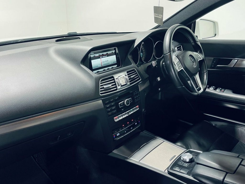 Mercedes-Benz E250d AMG Line Coupe – 80,000 Miles Registration: LS63 KXC Colour: Polar White with AMG Line Interior Trim This Polar White Mercedes-Benz E250d AMG Line Coupe has covered 80,000 miles from new and presents as a sharp, well-maintained example of this elegant yet sporty coupe. Enhanced by freshly refinished gloss black alloy wheels and a strong specification, it offers a refined driving experience with excellent comfort and presence. Supplied with an AA 128-Point Inspection and a Free HPI Certificate for added peace of mind. Performance & Handling: Efficient and smooth E250d diesel powertrain Automatic transmission for effortless driving AMG Line suspension setup for a balanced ride Confident motorway performance with excellent refinement Premium Features & Styling: AMG Line exterior styling Freshly refinished gloss black alloy wheels Polar White paintwork Sporty coupe profile with AMG design enhancements Technology & Interior: Widescreen Media System with Satellite Navigation Bluetooth Media Connectivity Heated Front Seats Multifunction Steering Wheel Lumbar Support Dual-Zone Climate Control Additional Information: 80,000 miles from new AA 128-Point Inspection Passed (report available) Free HPI Certificate Provided Nationwide Warranty Packages Available Any inspection more than welcome Indoor viewing available Up to 20 photos available on our website Over 100 vehicles in stock Debit card payments welcome Approved finance partner with fu 10GB Music Register and MP3 Compatibilit, 18in Alloy Wheels - AMG 5-Twin-Spoke Des, 3 Years Free European Map Updates, ABS - Anti-Lock Braking System, AMG Bodystyling - Front and Rear Apron -, AMG Brushed Stainless Steel Sports Pedal, ASR - Acceleration Skid Control, ATTENTION Assist, Active Bonnet - Pedestrian Safety which , Active Park Assist with Parktronic, Adaptive Brake System with Full Hold Fun, Agility Control - Sports Suspension with, Airbags - Drivers Kneebag, Airbags - Front Sidebags, Airbags - Multi Stage for Driver, Airbags - Multi Stage for Front Passenge, Airbags - Pelvisbag, Alarm System with Immobiliser and Interi, Ambient Lighting for Centre Armrest - Fr, Analogue Clock, Au