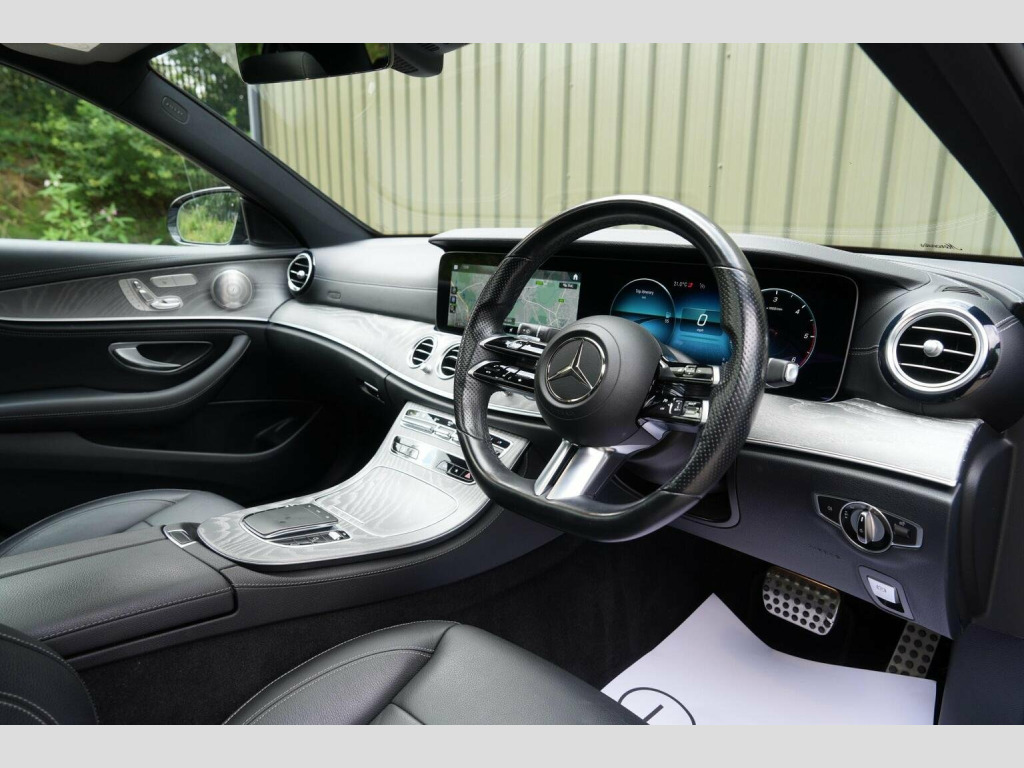 PANORAMIC ROOF - NIGHT PACKAGE - FACELIFT MODEL - This 2021 21 registered Mercedes-Benz E400d AMG Line Night Edition is a remarkable blend of luxury, performance and cutting edge technology. Finished in Canvansite Blue Metallic with a sumptuous Black Nappa Leather interior, the car has covered just 53,000 miles with one previous owner, reflecting its meticulous care and as new condition. The exterior features sleek 20 AMG multi spoke alloy wheels and the distinctive Night Package. A panoramic glass sunroof enhances the sense of space and light, while the Multibeam LED intelligent headlight system with adaptive high beam assist ensures optimal visibility in all conditions. Inside, the luxurious cabin is equipped with Black Nappa hide upholstery and a cutting edge 12.3 inch windscreen multimedia colour display, seamlessly integrated with the MBUX multimedia system featuring Navigation Plus. The Burmester premium surround sound system offers exceptional audio clarity, while smartphone integration through Android Auto and Apple CarPlay ensures seamless connectivity. Comfort and convenience are elevated by a wireless charging system and a 3 spoke AMG multifunctional steering wheel in Nappa leather. Advanced technology includes a 360 degree surround view camera system and the active park assist package. The Traffic Sign Assist feature keeps you informed of speed limits and road restrictions, while the Keyless Go starting system ensures convenience at every turn. The 4MATIC all-wheel-drive system provides exceptional traction and stability, complemented by agility control suspension with selective damping. This stunning E400d AMG Line Night Edition (Premium Plus) 4MATIC represents exceptional value, immaculate presentation and Mercedes-Benzs renowned engineering excellence. ****VIEWING STRICTLY BY APPOINTMENT ONLY - FOR FURTHER INFORMATION REGARDING THIS VEHICLE AND ANY OTHER PRESTIGE OR PERFORMANCE MARQUE IN STOCK, PLEASE CALL SALES DIRECT ON 0161 223 4977. VEHICLE FINANCE SPECIALISTS OFFERING COMPETITIVE FINANCE PACKAGES****