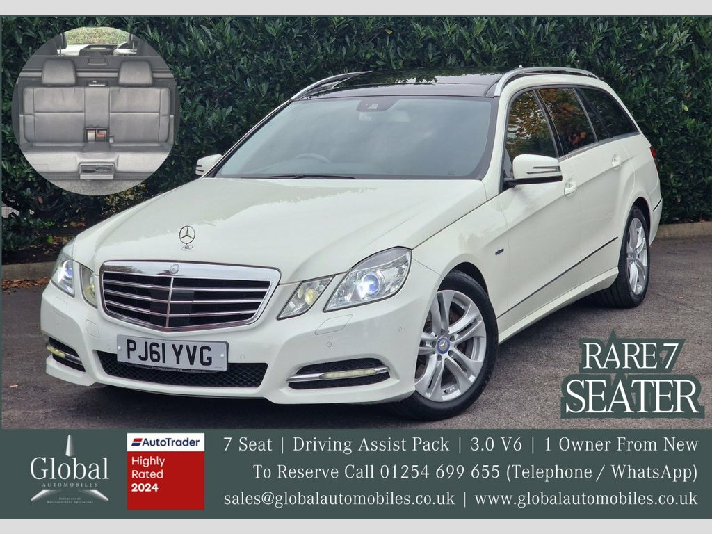 Buy with confidence from an Award Winning Independent Mercedes-Benz Specialist!  We are delighted to offer our beautiful Factory Ordered Mercedes E Class E350 CDi "Avantgarde" Automatic 7 Seat Estate finished in "Calcite White" and fitted with an Anthracite Leather (Electric and Heated) interior with matching door cards.  This is the E Class you should be buying - Super Factory Specification and One Owner From New!  This E Class was Factory Ordered by Mercedes-Benz of Blackburn, and has been in its sole ownership since new.  The vehicle is supplied with its Original Manuals, Full Mercedes-Benz and Specialist Service History Record, Two Keys, MOT until October 2026, HPI Clearance Certificate and current V5 Logbook.  The Service History is very good, having had 14 Services performed, and most recently at the current mileage.  The Specification is huge;  7 Seater, Panoramic Glass Sunroof (Tilt/Slide), Alloy Wheels with x4 New Tyres (Unmarked), Avantgarde Package, Rear Air Suspension, COMAND Media System; Traffic Sign Recognition Cameras, Post Code Entry Navigation, Bluetooth Telephone / Audio Streaming, Radio, CD / DVD Changer / Player, Aux and Multiple Media Inputs. Driving Assistance Package (Active Lane Assist | DisTronic+ Autonomous Intelligent Cruise Control | Active Blind Spot Assist). Rear Camera, Leather Steering Wheel, Garage Door Opener, Park Assist (Front / Rear - Acoustic and Visual Parking Sensors) with Self Parking, Bi Xenon Headlamps with Autom Airbags - Rear Sidebags, AirMATIC Dual Control - semi active air , Ashtray and Cigarette Lighter, Audio 20 Radio with 6-disc CD Changer, COMAND Online System with Media Interfac, COMAND with Integrated 6-Disc CD Changer, designo - Burr Walnut wood trim, Diamond White, Driving Assistance Package, Electric Glass Sunroof, Exterior Styling Package, Homelink - Garage Door Opener, Integrated Rear Child Seats, Lane Tracking Package, Luxury Pack Upgrade, Luxury Package, Panoramic Sunroof, Privacy Glass, Rear-Facing Child Seats - Leather, Reversing Camera, Speed Limit Assist Plus, Sun Protection Package, Telephone Pre-Wiring with Hands-Free Fac, Trim - Brushed Aluminium, Trim - designo, Trim - design