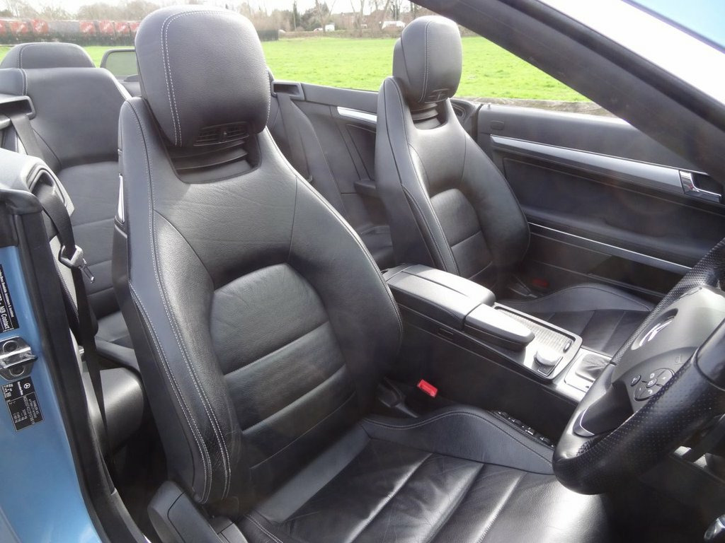 SWANCAR ESTABLISHED IN 1974 ARE PLEASED TO OFFER THIS STUNNING MERCEDES E350 CDI V6 SPORT AUTO CONVERTIBLE FINISHED IN METALLIC INDIGOLITE BLUE WITH FULL BLACK LEATHER INTERIOR. SPECIFICATION INCLUDES - FRONT AND REAR PARK DISTANCE CONTROL, FULLY ELECTRIC MEMORY FRONT SEATS, SATELLITE NAVIGATION, HEATED SEATS WITH AIRSCARF HEATING, 19 INCH ALLOY WHEELS, MULTI FUNCTION STEERING WHEEL WITH CRUISE CONTROL AND GEAR CHANGE PADDLE OPTION, ELECTRIC FOLDING MIRRORS AND REMOTE CENTRAL LOCKING WITH 2 REMOTE KEYS. Airscarf- Neck Level Heating, 19in AMG 7 Twin Spoke Alloy Wheels, 18in AMG 6 Twin Spoke Alloy Wheels, 8 Speakers, Audio 20 Radio & CD & MP3 player, Automatic Climate Control, Bluetooth interface for Handsfree teleph, Brushed Aluminium Trim, Cruise Control with speedtronic variable, Drivers lumbar support, Model designation deletion, Partial Electric Front Seats & backr, Soft top- Black, Soft top- Dark Beige, Soft top- Dark Blue, Soft top- Red, Stowage compartment with 12V socket