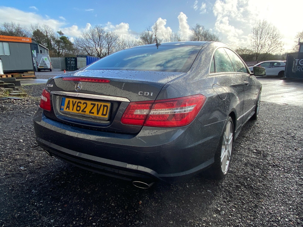 We are pleased to offer for sale this 2012 Mercedes Benz E350 3.0 CDI Sport Tip Coupe in grey.***NEW 12 MONTHS MOT SUPPLIED WITH NO ADVISORIES***Only two keepers from new, sensible mileage and a very well maintained car with no fewer than fourteen recorded services, the last carried out on December 2025. This beautifully presented Mercedes has clearly been cherished by its previous owners and is in outstanding condition both inside and out. Specification Includes:18'' SPORTS ALLOYSPARKING SENSORSLEATHER SEATSSAT NAVCLIMATEELECTRIC SEATSAUTO LIGHTSBLUETOOTHCRUISE CONTROLAIRCONHEATED SEATSELECTRIC WINDOWS & MIRRORSHPI CHECKED AND CLEAR.PLEASE VISIT OUR WEBSITE TO VIEW OUR FULL RANGE OF CARS FOR SALE: WWW.SOUTHDEVONMOTORS.CO.UK