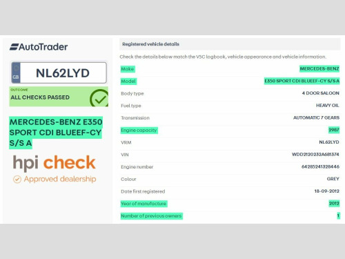 Buy with confidence from an Award Winning Independent Mercedes-Benz Specialist!  We are delighted to offer our beautiful Mercedes E Class E350 CDi "AMG Sport" 3.0 V6 Automatic Diesel finished in the highly sought after "Tenorite Grey Metallic" and fitted with an Alpaca Grey Leather (Electric / Heated) interior with matching door cards.  This is the E Class you should be buying - High Specification and in Superb Condition!  Lastly lovingly driven by a Mature Gentleman, this Mercedes-Benz has been driven sparingly having only covered 55,000 miles since new.  Originally supplied by Mercedes-Benz of Newcastle, this vehicle was a Ex Demonstrator Vehicle.  Fitted with the flagship 3.0 V6 CDi powerful yet amazingly economical engine which is normally suited to the S Class and G Wagen.  This One Former Owner vehicle is supplied with its Original Manuals, Full Mercedes-Benz Main Dealer Service History Record, Two Keys, MOT until November 2026, HPI Clearance Certificate and a Full and current V5 Logbook.  The Service History is incredible, having 13 Services conducted (13 Mercedes-Benz Stamps). The most recent Service has been performed at 54,933 miles, this vehicle is ready to drive away today!  Specification;  AMG Sports Package, AMG Styling Package, Unmarked AMG Alloy Wheels, COMAND Media System; Post Code Entry Navigation, Bluetooth Telephone, CD / DVD, DAB Satellite Radio and Multiple Media Inputs.  Intelligent Lighting System (iLS) with Bi Xenon Headlamps, Sig 18in Alloy Wheels - AMG 5 Twin Spoke Des, 19in Alloy Wheels - AMG 7 Twin Spoke Des, Airbags - Rear Sidebags, Becker Map Pilot Navigation System, COMAND Online System with Integrated 6CD, COMAND Online System with Media Interfac, Leather - Alpaca Grey, Luxury Automatic Climate Control, Speed Limit Assist Plus, Telephone Pre-Wiring with Hands-Free Fac, Tenorite Grey, Tyre Pressure Monitoring System
