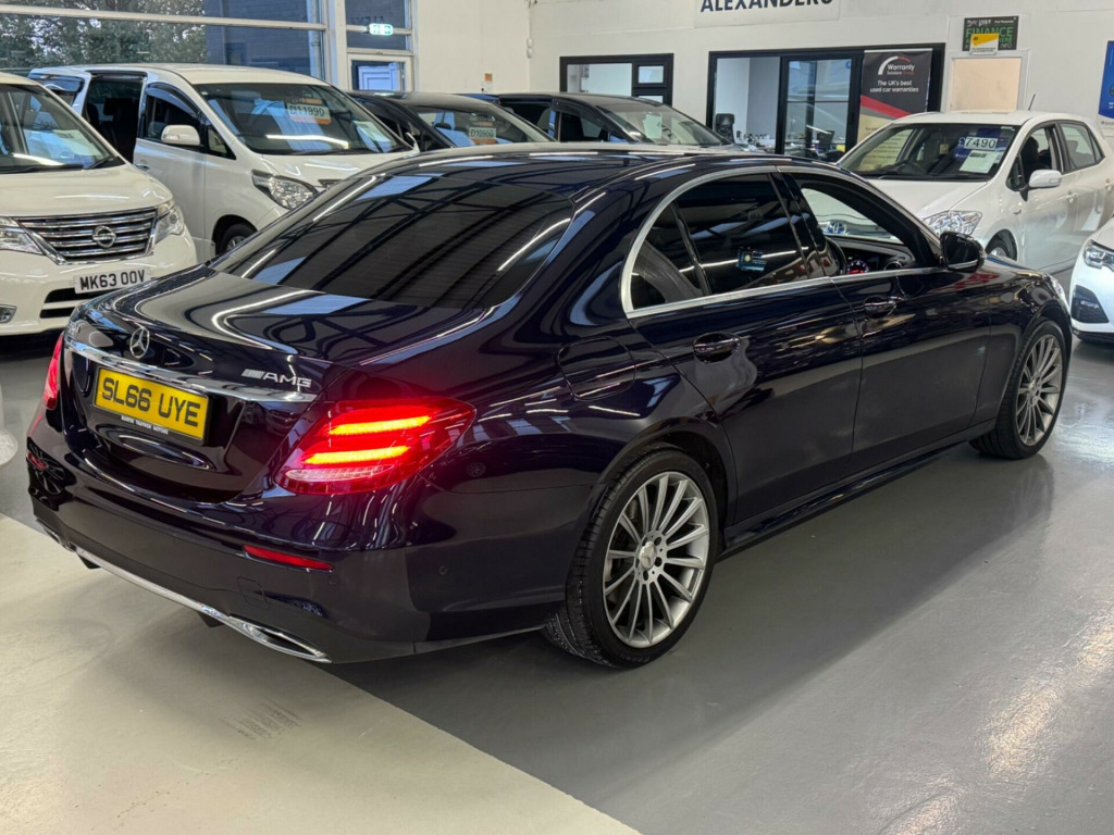 This 2017 Mercedes Benz E Class E350d V6 AMG Line boasts a remarkable provenance, having been owned by only two previous keepers. This premium saloon features the sporty AMG Line trim, powered by a robust 3.0L V6 diesel engine that meets Euro 6 emissions standards. Inside, you'll find advanced technology such as Smartphone Integration with Bluetooth, the sophisticated COMAND Online System, and THERMATIC automatic climate control for a comfortable cabin environment. For enhanced visibility and safety, it is equipped with LED High Performance headlamps with integrated LED daytime running lights, and a reversing camera to assist with parking.The E350d AMG Line offers a compelling blend of performance and practicality. Its acceleration is notably brisk, achieving 0-62mph in just 5.9 seconds, demonstrating its dynamic capabilities. This model also benefits from a low insurance group, making it an economical choice for many drivers. Furthermore, the generous boot space ensures ample room for luggage or shopping, proving its versatility for everyday use and longer journeys. These attributes collectively position this Mercedes Benz E Class as a superior option within its class. in alloy wheels - amg twin-spoke design - titanium grey - high sheen finish, abs - anti-lock braking system, air body control, amg bodystyling - front and rear apron - side skirts, attention assist, active bonnet - pedestrian safety which detects an impact and raises bonnet, active brake assist, active parking assist including parktronic, adaptive brake lights, adaptive brake system with hold function and brake drying function, airbag - drivers knee, airbags - driver and front passenger with extended adaptivity for front passenger airbag, airbags - sidebag for driver and front passenger - combined thorax-pelvis bag, airbags - windowbags, alarm system with immobiliser and interior protection, analogue clock in centre console, audio 20 usb, automatic child seat recognition sensor, brake calipers with mercedes-benz lettering, brake wear warning display, brushed stainless steel sports pedals with rubber studs, comand online system, central locking with interior switch - automatic locking and crash sensor with emergency opening function, central stowage compartment with 12v socket in centre console, childproof locks - manually operated for rear doors and electrically operated for rear power windows, courtesy lights in rear grab handles with reading light functionality, cruise control with speedtronic variable speed limiter, dab digital radio tuner, dashboard - artico leather upper dashboard in black with contrast topstitching, direct-steer speed sensitive steering, door mirrors - electrically adjustable and heated, door pins in chrome, drivers seat - height-adjustable, dynamic select with a choice of driving modes - comfort - eco - sport - sport plus - individual, esp - electronic stability programme, electric parking brake, electric windows - 4 - with one-touch opening and closing - including obstruction sensors, electronic key - chrome surround, exhaust system - visible twin-pipe integrated into the bumper, first aid kit and warning triangle, floor mats - amg lettering - black, front centre armrest with stowage compartment, front door sill panels with mercedes-benz lettering, front four way partially electric seat adjustment, front seats - electrical height and backrest adjustment, glove compartment - illuminated, head restraints for driver and front passenger - 4-way and in rear 2-way adjustability, headlamps - led high performance with integrated led daytime running lights, heated windscreen washer system, isofix child seat fixing points in rear - two outer seats, incorrect fuelling protection, instrument cluster with two tube-design round dials and 8.4in tft multifunction display, interior 64-colour ambient lighting, keyless-go starting function, mercedes me connect, mirror package, outside temperature display, polished aluminium waistline, pre-safe anticipatory safety system, radiator grille with integrated star - two louvres in matt iridium silver with chrome trim, radio aerial integrated into rear window, rain sensing windscreen wipers, rear lights - led, remote boot release, reversing camera, run flat tyres, seat comfort package, seat occupancy sensor - front passenger seat, seats - heated front, service indicator assyst, smartphone integration, status display for rear seat belts in instrument cluster, steering column - manually adjustable for height and reach, steering wheel - 3-spoke multi-function amg in black nappa leather, steering wheel - multi-function with gearshift paddles, steering wheel - touch-control buttons for audio and onboard settings, stowage package, sun visors with illuminated vanity mirrors, sunglasses compartment in overhead control panel, thermatic - automatic climate control - two-zone, three point seat belts for all seats, tinted glass all round - green, top surround of side windows in polished aluminium, trim - black open-pore ash wood, trim - centre console in high-gloss black, trip computer in multi-function display, tyre pressure monitoring system, usb port in centre console