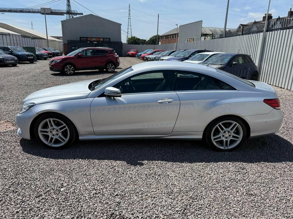 Mercedes-Benz E350d V6 BlueTEC AMG Sport | 2014 (63) | 61,945 Miles | ULEZ Compliant  KR63 NZY | 3.0 V6 Diesel | Automatic | Silver | Coupe Perfection | 3 Owners  Luxury meets performance in this beautifully presented Mercedes-Benz E-Class E350d AMG Sport Coupe. With its powerful 3.0-litre V6 BlueTEC diesel engine and smooth G-Tronic+ automatic transmission, this premium 2-door delivers effortless power and refinement in equal measure.  Finished in classic Iridium Silver Metallic, this elegant coupe has covered just 61,945 miles and boasts 3 previous owners, offering superb value for money in a true executive-class Mercedes.  Key Highlights: 3.0 V6 BlueTEC Diesel Engine – 252 BHP  7-Speed G-Tronic+ Automatic Gearbox  AMG Sport Package – Enhanced Styling & Ride  18" AMG Alloy Wheels  LED Daytime Running Lights & Bi-Xenon Headlights  Leather Interior with Heated Front Seats  Command Online Navigation with DAB, Bluetooth & USB  Front & Rear Parking Sensors with Visual Display  Cruise Control & Dual-Zone Climate Control  Euro 6 Engine – Fully ULEZ Compliant  Every car comes with:  A new, clean MOT with no advisories  A fresh oil service  A free 3-month / 3,000-mile Gold Cover nationwide warranty  Whether you're cruising in comfort or powering through long motorway journeys, this E-Class Coupe offers timeless luxury, impressive performance, and true Mercedes-Benz refinement.   HPI Clear  Finance Available  Part Exchange Welcome Natio 10GB Music Register and MP3 Compatibilit, 18in Alloy Wheels - AMG 5-Twin-Spoke Des, 3 Years Free European Map Updates, ABS - Anti-Lock Braking System, AMG Bodystyling - Front and Rear Apron -, AMG Brushed Stainless Steel Sports Pedal, ASR - Acceleration Skid Control, ATTENTION Assist, Active Bonnet - Pedestrian Safety which , Active Park Assist with Parktronic, Adaptive Brake System with Full Hold Fun, Agility Control - Sports Suspension with, Airbags - Drivers Kneebag, Airbags - Front Sidebags, Airbags - Multi Stage for Driver, Airbags - Multi Stage for Front Passenge, Airbags - Pelvisbag, Alarm System with Immobiliser and Interi, Ambient Lighting for Centre Armrest - Fr, Analogue Clock, Au