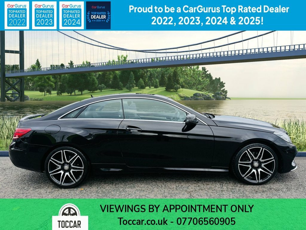 We are pleased to offer this Automatic 2014 Mercedes Benz E Class E350d V6 AMG Sport Coupe. This premium coupe boasts a powerful 3.0L V6 diesel engine, compliant with Euro 6 emissions standards, and features the desirable AMG Sport trim. Inside, you'll find comfort and convenience with heated front seats, automatic two zone climate control with a dust filter, and a Bluetooth interface for hands free telephone calls. Manoeuvring is made easier with both front and rear parking sensors, including parking assistance. The sporty AMG Sport styling, and the comprehensive list of comfort and convenience features clearly sets this Mercedes Benz apart from other vehicles in its class.   We will supply this car with an MOT (no advisories) and service carried out by an approved service centre. For your peace of mind Autoguard warranties are available to purchase. PX welcome. Viewing by appointment please. Finance available. Please see our reviews and wide selection of quality vehicles at www.toccar.co.uk 10GB Music Register and MP3 Compatibilit, 3 Years Free European Map Updates, Bluetooth Interface for Hands-Free Telep, COMAND Online System with Media Interfac, DAB Digital Radio Tuner, Interior Storage - Front Compartment wit, Media Interface, SD Memory Card Slot, USB Port and Socket Located in Centre Co, 18in Alloy Wheels - AMG 5-Twin-Spoke Des, AMG Bodystyling - Front and Rear Apron -, Chrome Trim Window Highlights, Door Handles - Body Coloured, Door Mirrors - Drivers Automatically Dim, Door Mirrors - Electrically Adjustable-F, Door Mirrors - Integrated LED Indicators, Electric Windows - 4 - With One-Touch Op, Exhaust System - Twin Pipes with Trapezo, Heated Windscreen Washer System, Lock