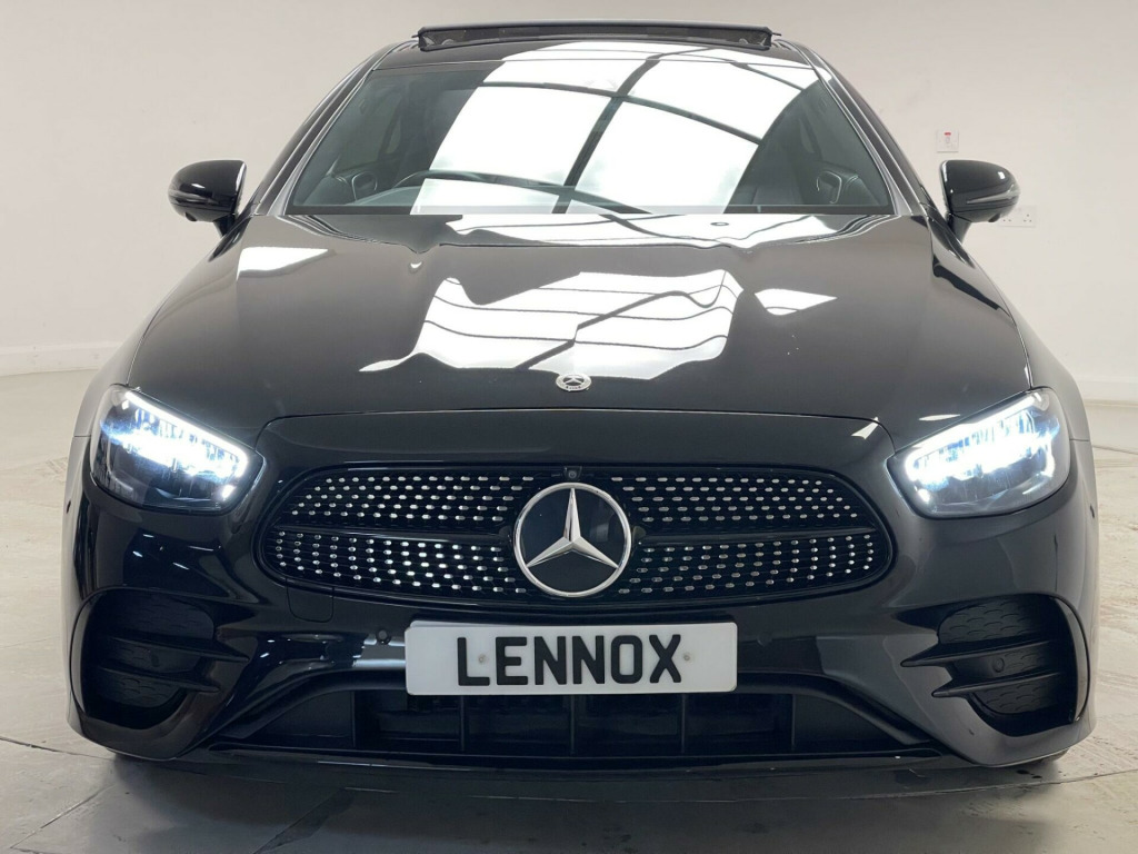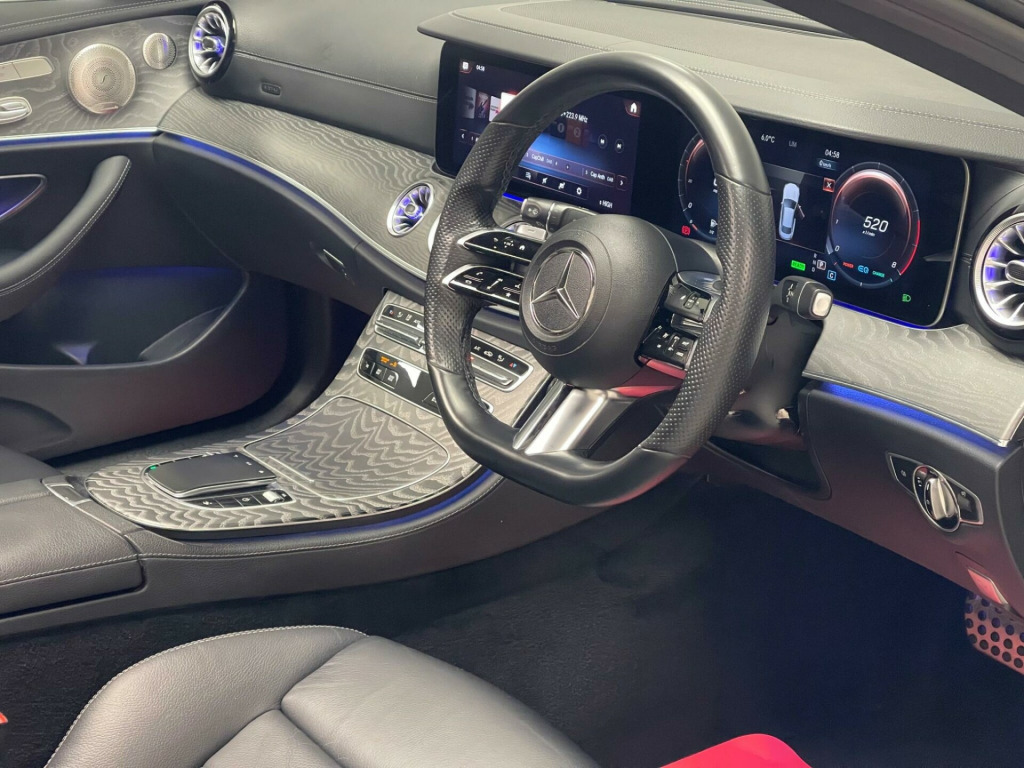 This 2021 Mercedes-Benz E450h AMG Line Night Edition is a superb example, having had only one owner since new. This four wheel drive E Class boasts a 3.0L petrol hybrid engine and meets Euro 6 emissions standards. Inside, you'll find the convenience of a Memory Package for the seats, allowing you to easily recall your preferred driving position. The KEYLESS-GO Comfort Package provides effortless keyless entry, while the MULTIBEAM LED Intelligent Light System with Adaptive Highbeam Assist ensures optimal visibility. For seamless connectivity, the central stowage compartment offers USB sockets compatible with Android Auto and Apple CarPlay.This E450h AMG Line Night Edition also features Active Park Assist, which uses front and rear sensors to help you manoeuvre into parking spaces with ease. The large boot space offers ample room for luggage or shopping, making it a practical choice for everyday use. Furthermore, its low insurance group rating indicates that running costs are kept competitive compared to similar vehicles. These highlights demonstrate the exceptional value and advanced features this Mercedes-Benz E Class offers. in alloy wheels - amg multi-spoke-design - painted in high-gloss black with high-sheen finish, abs - anti-lock braking system, amg bodystyling - front and rear apron - side skirts, amg boot lid spoiler in body colour, attention assist, active bonnet - pedestrian safety measure which detects an impact and raises bonnet, active brake assist, active park assist, adaptive brake lights, adaptive brake system with hold function and brake drying in the wet, agility control suspension with selective damping system and lowering by 15mm, airbag - kneebag for driver, airbags - driver and front passenger with extended adaptivity for front passenger airbag, airbags - sidebag for driver and front passenger - combined thorax-pelvis bag, airbags - windowbags, alarm system with immobiliser and interior protection, automatic child seat recognition sensor, belt feeder, blind spot assist, brake calipers with mercedes-benz lettering, brake wear warning display, burmester surround sound system, central locking with interior switch-automatic locking and crash sensor with emergency opening function, central stowage compartment with 12v socket in centre console, central stowage compartment with usb socket for use with android auto and apple carplay, cruise control with variable speed limiter, dab digital radio tuner, diamond radiator grille with integral mercedes-benz star and single louvre in high-gloss black, direct-steer speed sensitive steering, door pins in black, dynamic select with a choice of driving modes - comfort - eco - sport - sport plus - individual, esp - electronic stability programme, electric parking brake, electric windows - 4 - with one-touch opening and closing - including obstruction sensors, electronic key - chrome surround, energizing comfort package, exterior mirror housings in high-gloss black, first aid kit and warning triangle, floor mats with amg lettering, front apron in high gloss black, front centre armrest with stowage compartment, front door sill panels with mercedes-benz lettering - illuminated, glove compartment - lockable - air-conditioned and illuminated, head restraints for driver and front passenger 4-way and in rear 2-way adjustability, headlamps - multibeam led intelligent light system with adaptive highbeam assist, heated front seats, high-resolution 12.3in multimedia colour display, isofix child seat attachment points - rear seats, instrument cluster - widescreen 12.3in cockpit display, interior 64-colour ambient lighting, keyless-go comfort package, keyless-go starting function, live traffic information, mbux augmented reality for navigation, mbux multimedia system, memory package, mercedes me connect, mirror package, outside temperature display, panoramic glass sunroof, parking package with 360-degree camera, pre-installation for roof rail systems, pre-installation for vehicle monitoring, pre-installation for vehicle set-up, pre-safe anticipatory safety system, privacy glass, radio aerial integrated into rear window, rain sensing windscreen wipers, rear bumper in high gloss black with chrome trim, rear lights - led, remote boot release, roof lining - black, run flat tyres, seat belts - three-point, seat comfort package - driver and front passenger seat, seat occupancy sensor - front passenger seat, seats - rear split folding 40-20-40, service indicator assyst, smartphone integration via android auto or apple carplay, sports pedals in brushed stainless steel with black rubber studs, status display for rear seat belts in instrument cluster, steering column - manually adjustable for height and reach, steering wheel - 3-spoke amg multi-function with touch control buttons - trimmed in black nappa leather with flattened bottom section, steering wheel - gear shift paddles, steering wheel - touch-control buttons for audio and onboard settings, stowage package, sun visors with illuminated vanity mirrors, sunglasses compartment in overhead control panel, thermotronic automatic climate control system with three climate zones and three climate styles, top surround of side windows in polished aluminium, touchpad without controller, traffic sign assist, trim - centre console in grey open-pore ash wood, trim - dashboard and door in grey open-pore ash wood, trim - upper dashboard - artico leather with contrast top stitching, trip computer in multi-function display showing current fuel consumption, tyre pressure monitoring system, usb ports in centre console x2, usb ports in the rear x2, visible twin-pipe exhaust system integrated into the bumper, waistline trim strip in high-gloss black, wireless charging