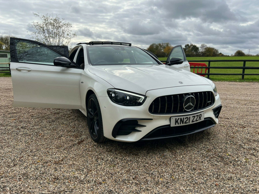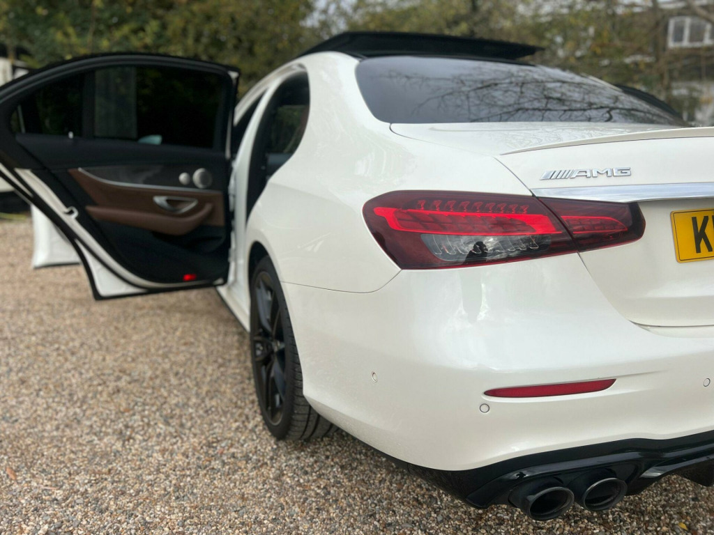 Rare Nutbrown Nappa Leather, Pan Roof, Burmesta, FMBSH, Carbon Interior Trims, 360 Cam, Heated & Memory Seats, 20' Rims, GHOST IMMOBILISERThis 2021 Mercedes Benz E Class E53h BiTurbo AMG Night Edition (Premium Plus) is presented in excellent condition, boasting a powerful 3.0L Petrol Hybrid engine and Four Wheel Drive for exceptional performance. As a Euro 6 compliant vehicle, it offers an efficient and environmentally conscious driving experience. This AMG Night Edition model comes equipped with the sophisticated Multibeam Intelligent Light System, ensuring optimal visibility with its adaptive highbeam assist. Inside, you'll find the luxurious THERMOTRONIC automatic climate control system, allowing for personalised comfort across three distinct climate zones and styles.Experience exhilarating acceleration with a 0-62mph time of just 4.5 seconds, demonstrating its superior performance compared to other vehicles in its class. The inclusion of the Parking Package, featuring Active Parking Assist and front and rear sensors, makes manoeuvring effortless. Entertainment is elevated by the impressive Burmester Surround Sound System, and convenience is enhanced with wireless phone charging. Furthermore, this E Class offers a surprisingly large boot space, making it practical for everyday use and longer journeys, all while benefiting from a low insurance group, indicating cost effective ownership. in alloy wheels - amg twin-spoke design - painted in matt black with high-sheen rim flange, abs - anti-lock braking system, amg bodystyling - front and rear aprons with distinctive air intakes - amg side sill panels and amg rear apron with diffuser look, amg bodystyling - spoiler lip on boot lid in body colour, amg dynamic select with a choice of driving modes, amg lettering on the centre console, amg performance exhaust system, amg ride control sports suspension, amg specific radiator grille with integral mercedes-benz star darkened in high gloss black, amg sports pedals in brushed stainless steel with rubber studs, amg start-up logo in central section, attention assist, active bonnet - pedestrian safety measure which detects an impact and raises bonnet, active braking assist, active parking assist and 360 degree camera, adaptive brake lights, adaptive brake system with hold function and brake drying in the wet, airbag - kneebag for driver, airbags - driver and front passenger with extended adaptivity for front passenger airbag, airbags - sidebag for driver and front passenger - combined thorax-pelvis bag, airbags - windowbags, alarm system with immobiliser and interior protection, anodised silver brake calipers with amg lettering, arrow-shaped wing signet in high-gloss black above turbo 4matic plus badging, automatic child seat recognition sensor, badging - biturbo 4matic+ lettering on front wings, black chrome-plated twin tailpipe trim elements, blind spot assist, brake wear warning display, burmester surround sound system, central locking with interior switch - automatic locking and crash sensor with emergency opening function, central stowage compartment with 12v socket in centre console, childproof locks - manually operated for rear doors and electrically operated for rear power windows, chrome trim in rear bumper in high-gloss black, courtesy lights in rear grab handles with reading light functionality, cruise control with variable speed limiter, dab digital radio tuner, direct-steer speed sensitive steering, door mirrors - electrically adjustable and heated, door pins in black, esp - electronic stability programme, electric parking brake, electric windows - 4 - with one-touch opening and closing - including obstruction sensors, electronic key - black surround, energizing comfort package, exhaust system - visible two twin-pipe exhaust system integrated into the bumper, exterior mirrors - high gloss black, first aid kit and warning triangle, floor mats - amg lettering, front apron in high gloss black, front centre armrest with stowage compartment, front door sill panels with amg lettering - illuminated, glove compartment - lockable - air-conditioned and illuminated, head restraints for driver and front passenger 4-way and in rear 2-way adjustability, headlights - multibeam intelligent light system with adaptive highbeam assist, high-resolution 12.3in multimedia colour display, isofix child seat attachment points - two outer rear seats, instrument cluster - amg main menu including racetimer and amg start-up display, instrument cluster - widescreen 12.3in cockpit display, interior 64-colour ambient lighting, keyless-go comfort package, keyless-go starting function, mbux - mercedes-benz user experience - infotainment system, mbux augmented reality for navigation, mbux multimedia system, media display - high resolution 12.3in touchscreen, memory package, mercedes me connect, mirror package, outside temperature display, panoramic electric glass sunroof, parking package including active parking assist with front and rear parking sensors, parking package with 360-degree camera, pre-installation for roof rail systems, pre-safe anticipatory safety system, privacy glass, radio aerial integrated into rear window, rain sensor with automatic headlight activation, rear lights - led, remote boot release, seat belts - three-point, seat occupancy sensor - front passenger seat, seats - amg sports, seats - heated front, seats - rear split folding 40-20-40, service indicator assyst, smartphone integration, status display for rear seat belts in instrument cluster, steering column - electronically adjustable for height and reach, steering wheel - 3-spoke multifunction amg performance - leather trimmed in black nappa leather with flat bottom section, steering wheel - multi-function with gearshift paddles, steering wheel - touch-control buttons for audio and onboard settings, sun visors with illuminated vanity mirrors, sunglasses compartment in overhead control panel, thermotronic automatic climate control system with th