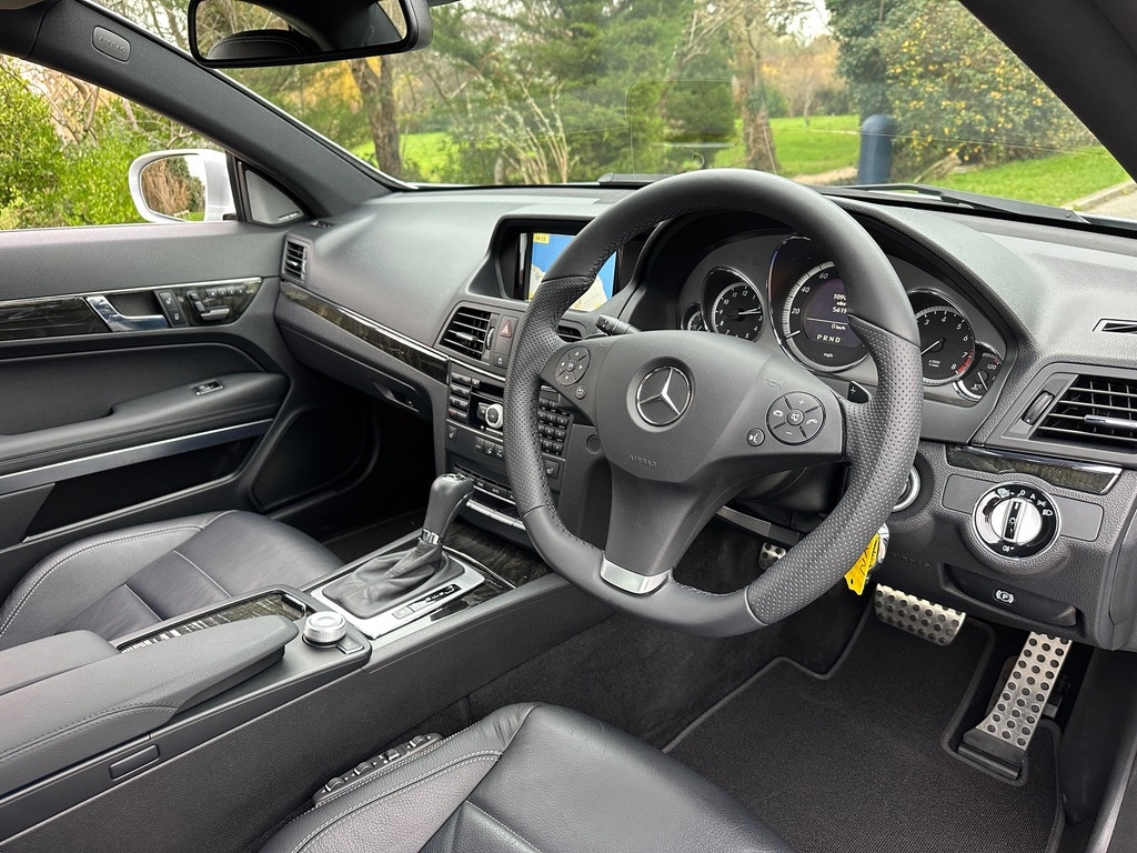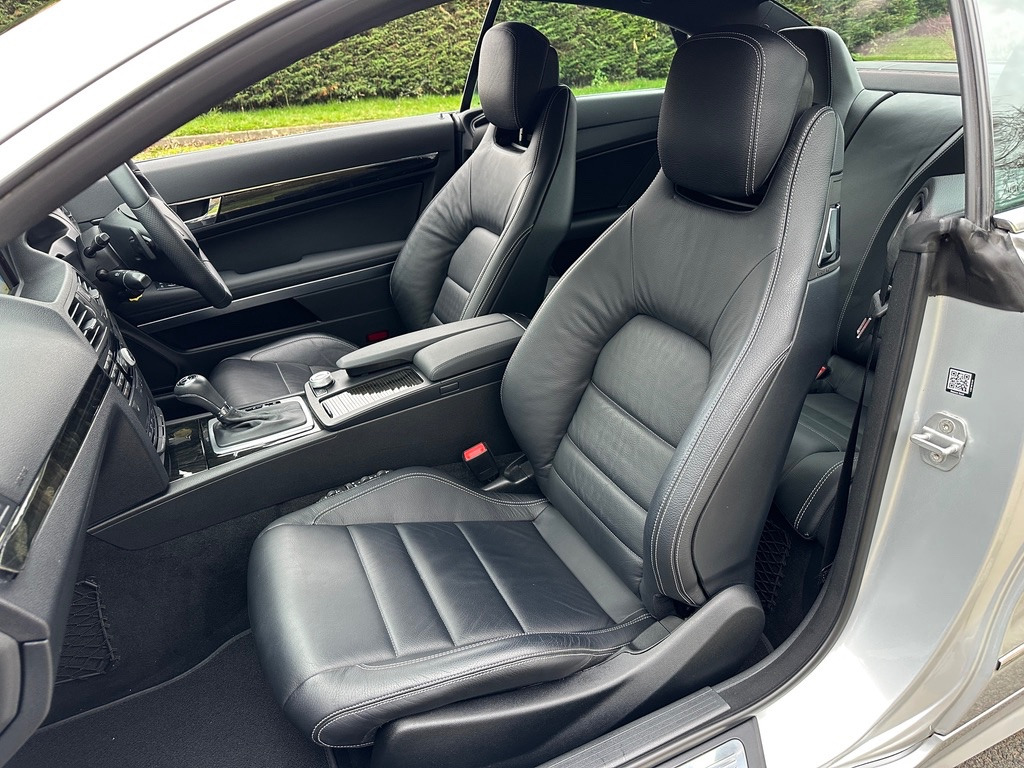 Mercedes Benz E350 CGi 3.5 V6 Petrol Sport Coupe BlueEfficiency 2009 ONLY 5600 MILES FROM NEW. 7 Speed Automatic with Paddle Change UK Supplied From New . Finished in Metallic Brilliant Silver with Full Charcoal Leather with White Stitching Electric Heated Memory Seats. This Incredible Example was Sold New by Mercedes Benz of NE London to its One Family Owner on 10-07-2009. Mercedes Benz Factory Options included: Colour Sat Nav with Harmon Kardon Premium Sound, Bluetooth Phone, Electric Steering Column, Leather Electric Heated Seats, Lumber Seats, Electric Folding Mirrors, Front/Rear Park Distance, Cruise Control, Multi Function Steering Wheel,18'' AMG Twin Spoke Alloys. Must be One of The Lowest Mileage Petrol 3.5 V6 Coupes Available. Full MB Main Dealer Service History (12 Services) with Service Invoices.2 Keys and Full Bookpack. For More Detailed Information Please Call or email.ULEZ Compliant £17995,