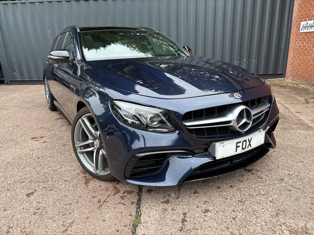 STUNNING MERCEDES E63 V8 BI-TURBO AMG ESTATE 4MATIC OFFERED METALLIC CAVANSITE BLUE/ESPRESSO BROWN HEATED ELECTRIC SPORTS SEATS/SATELLITE NAVIGATION/DAB RADIO/BLUETOOTH CONNECTIVITY/DUAL ZONE CLIMATE CONTROL/MULTI FUNCTION AMG STEERING WHEEL/CRUISE CONTROL/ELECTRIC FOLDING DOOR MIRRORS/SUN PROTECTION GLASS/GLASS PANORAMIC SUNROOF/20 INCH AMG 5 DOUBLE SPOKE ALLOY WHEELS/FRONT AND REAR PARKING SENSORS AND REAR CAMERA/SERVICE HISTORY/EXCELLENT CONDITION INSIDE AND OUT/PX WELCOME. 20in Alloy Wheels - AMG 5-Twin-Spoke Des, ABS - Anti-Lock Braking System, Active Bonnet - Pedestrian Safety Measur, Active Braking Assist, Active Parking Assist and 360 Degree Cam, Adaptive Brake Lights, Adaptive Brake System with HOLD Function, Airbag - Kneebag for Driver, Airbags - Driver and Front Passenger wit, Airbags - Sidebag for Driver and Front P, Airbags - Windowbags, Alarm System with Immobiliser and Interi, AMG Bodystyling - Front and Rear Aprons , AMG Dynamic Select with a Choice of Driv, AMG Lettering on the Centre Console, AMG Mechanical Rear Axle Limited-Slip Di, AMG Nappa Leather - Macchiato Beige-Espr, AMG Night Package, AMG Performance Exhaust System, AMG Ride Control Spor