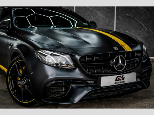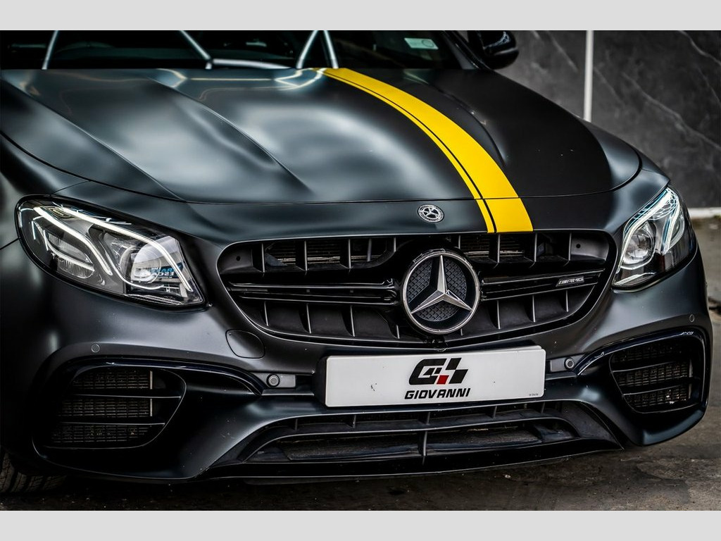 GIOVANNI AUTOMOBILI Present to you our stunning MERCEDES-BENZ E-CLASS 4.0 E63 V8 BiTurbo AMG S Edition 1. Finished in NIGHT BLACK MAGNO PAINTWORK WITH FULL PPF WITH YELLOW ACCENTS. AMG EXCLUSIVE Black with Yellow Stitching Nappa Leather. COMPLIMENTED BY A HUGE FACTORY SPEC BENEFITING FROM HAVING FULL PFF THIS V8 POWER PLANT IS SATGE 2 MAKING THIS CAR INTO A TOTAL BEAST SPECIFICATION INCLUDES PANORAMIC GLASS ROOF. LANE ASSIST. DYNAMIC RANGE CONTROL. HEAD UP DISPLAY. BLACK PACK. BURMESTER SURROUND SOUND SYSTEM. CARBON INTERIOR. LANE DEPARTURE WARNING. 360 SURROUND VIEW CAMERA. ACTIVE BRAKE ASSIST. PARK ASSIST. ATTENTION ASSIST. INTELLIGENT LIGHT SYSTEM. SURROUND LIGHTING. EXTERIOR LIGHTS. DAB RADIO. SOUND FOCUS. ELECTRIC/HEATED & MEMORY FRONT SEATS. REAR CLIMATE CONTROL. DRIVE SELECT. YELLOW CALIPERS. BLIND SPOT ASSIST. APPLE CARPLAY. ANDROID AUTO AND MUCH MOR AMG Carbon Fibre Engine Cover, Heated Windscreen, Night Black, AMG Exclusive Nappa Leather - Black with, Head-Up Display, 360 Degree Camera, AMG Performance Exhaust System, 20in Alloy Wheels - AMG Cross-Spoke Forg, ABS - Anti-Lock Braking System, AMG Bodystyling - Front and Rear Aprons , AMG Bodystyling - Spoiler Lip on Boot Li, AMG Dynamic Select with a Choice of Driv, AMG Electronic Rear-Axle Limited-Slip Di, AMG Lettering on the Centre Console, AMG Night Package, AMG Ride Control Sports Suspension, ATTENTION Assist, Accentuation Stripes above Side Skirts i, Active Bonnet - Pedestrian Safety Measur, Active Braking Assist, Adaptive Brake Lights, Adaptive Brake System with HOLD Function, Air