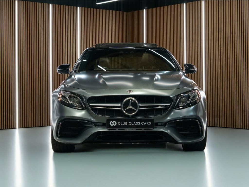 2018 Mercedes-Benz E63 S AMG 4.0 V8 BiTurbo 4dr Saloon SpdS MCT 4MATIC+ in Designo Selenite Grey Magno with 4 owners and just over 53,525 miles. Fantastic spec including Driving Assistance Plus Package (Distronic Adaptive Cruise Control / Active Steering Assist / Active Lane Assist / Blind Spot Assist), Panoramic Glass Sunroof, Head-Up Display, Comfort Pack (Air Balance / Energising Comfort Control), 360 Degree Camera, AMG Night Package, 20in AMG Cross Spoke Forged Alloys in Black, Hazelnut Brown AMG Nappa Leather Interior, Heated & Electric Memory AMG Performance Seats, 12.3in Digital Instrument Cluster, 12.3in Multimedia Display, Smartphone Integration with Apple CarPlay / Android Auto, Burmester Surround Sound System, Multibeam Intelligent Headlights with Adaptive High Beam, Keyless Entry, Active Parking Assist with Front & Rear Parking Sensors, 64 Colour Ambient Lighting, Wireless Charging etc. Full Service History with previous services completed as follows; - 16/10/2019 @ 10,889 miles (Mercedes) - 8/10/2020 @ 21,616 miles (Mercedes) - 29/10/2021 @ 31,691 miles including Gearbox & Transfer Case Service - 14/11/2022 @ 39,435 miles (Mercedes) - 23/10/2023 @ 44,134 miles (Mercedes) - 11/10/2024 @ 47,595 miles (Mercedes) - 15/10/2025 @ 53,519 miles including new Brake Discs & Pads all round MOT until 14/10/2026. Comfort Pack, 20in Alloy Wheels - AMG Cross-Spoke Forg, Omission of AMG Performance Seats, AMG Night Package, Selenite Grey, Head-Up Display, AMG Exclusive Nappa Leather - Hazelnut B, Driving Assistance Plus Package, ABS - Anti-Lock Braking System, AMG Bodystyling - Front and Rear Aprons , AMG Bodystyling - Spoiler Lip on Boot Li, AMG Drivers Package, AMG Dynamic Engine Mounts, AMG Dynamic Select with a Choice of Driv, AMG Electronic Rear-Axle Limited-Slip Di, AMG Lettering on the Centre Console, AMG Performance Exhaust System, AMG Ride Control Sports Suspension, ATTENTION Assist, Active Bonnet - Pedestrian Safety Measur, Active Braking Assist, Active Parking Assist and 360 Degree Cam, Adapt