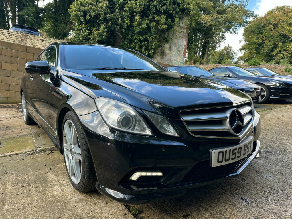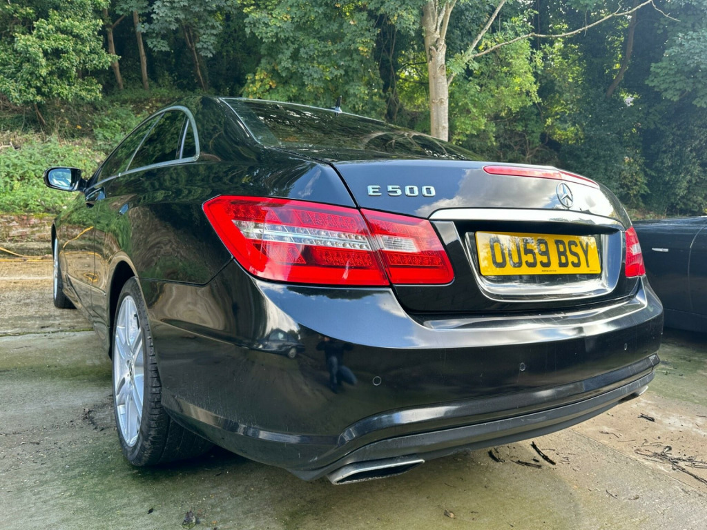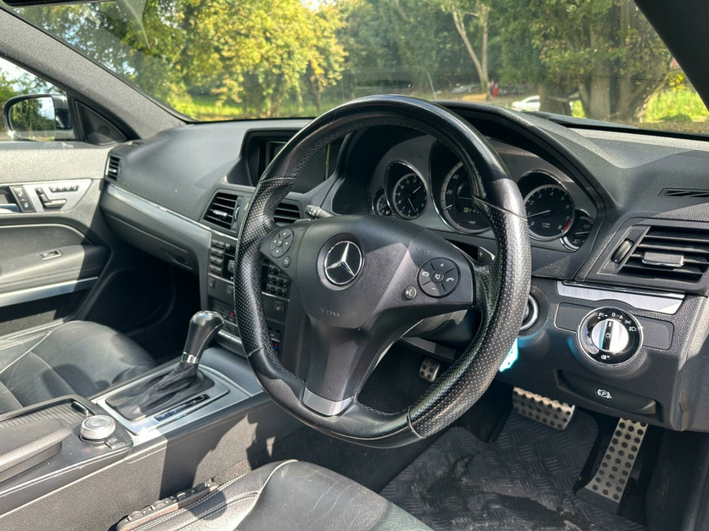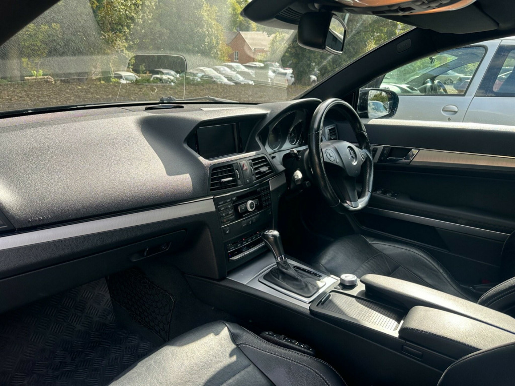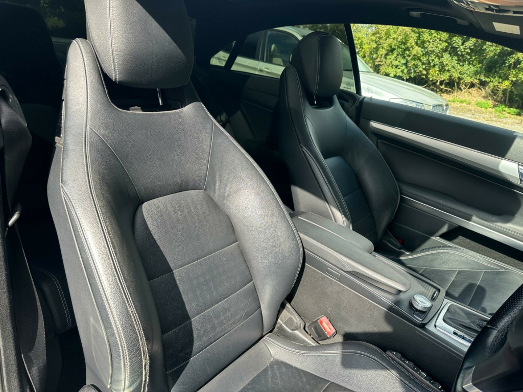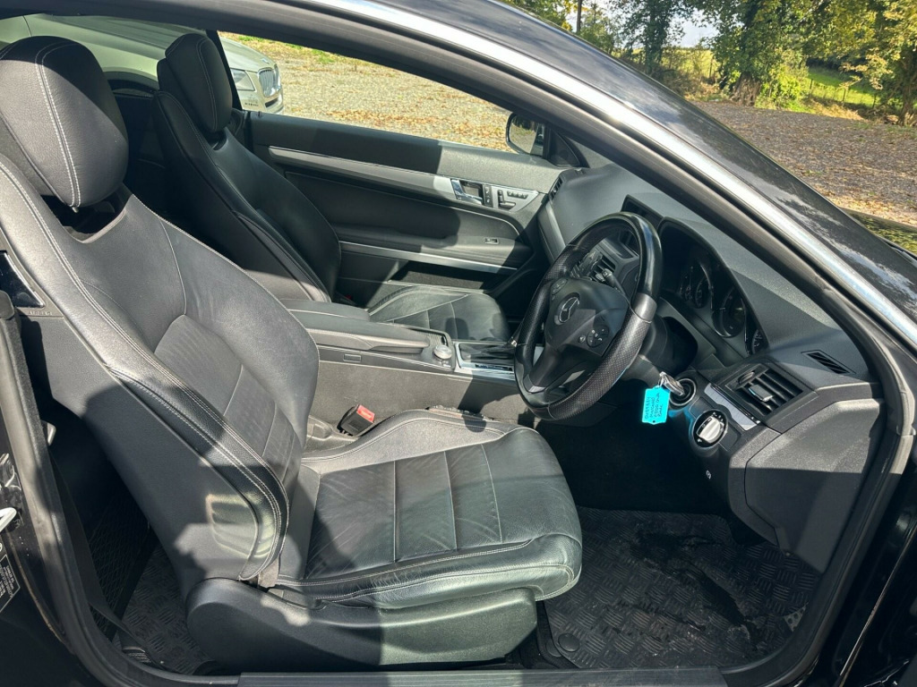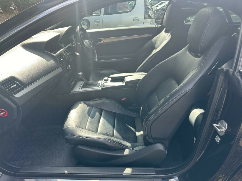 >>24 MONTHS WARRANTY - 12 MONTHS AA BREAKDOWN COVER - ULEZ COMPLIANT <<<>MERCEDES-BENZ E500 5.5 V8 SPORT 7 SPD TIP AUTO SPORTS COUPE 387BHP -HUGE FACTORY SPECIFICATION - OBSIDIAN BLACK WITH FULL BLACK LEATHER SPORTS SEATS - PANORAMIC GLASS TILT & SLIDE SUNROOF - COMMAND  SAT NAV - DVD CHANGER - FULL BLACK LEATHER - HEATED SEATS  - FRONT MULTI CONTOUR SEATS - ELECTRIC FRONT SEATS - MEMORY PACKAGE FOR DRIVER SEAT MIRRORS & STEERING COLUMN - BLUETOOTH - 18'' ALLOY WHEELS - CRUISE CONTROL - PRIVACY GLASS - PARKING SENSORS - REVERSE CAMERA - AMG SPORTS LEATHER MULTI FUNCTION STEERING WHEEL WITH PADDLESHIFT - LEATHER GEAR KNOB -  CORNERING LIGHTS - AUTO DIMMING MIRRORS - CUPHOLDERS - EMERGENCY SPARE WHEEL - VEHICLE DYNAMICS PACKAGE - FULL AMG SPORTS PACKAGE - ALLOYS FULLY REFURBISHED IN BLACK & DIAMOND CUT CALLIPERS PAINTED RED - SPARE KEYS - 2 FORMER KEEPERS - FULL SERVICE HISORY - 11 SERVICES - LAST SERVICE 06/05/2024 - 103,891 MILES -MOT EXPIRES 16/04/2026 -CO2 EMISSIONS 254 G/KM -NOX EMISSIONS 0.017 G/KM - EXCELLENT CONDITION THROUGHOUT - VERY RARE - LAST OF THE 5.5 V8 BOMB PROOF ENGINES - MUST BE SEEN TO BE APPRECIATED - ANY INSPECTION WELCOME - ULEZ COMPLIANT - PART EXCHANGE WELCOME - DELIVERY AVAILABLE -. 18in AMG 6 Twin Spoke Alloy Wheels, 8 Speakers, Audio 20 Radio & CD & MP3 player with 5in colour screen, Bluetooth interface for Handsfree telephone, Brushed Aluminium Trim, Cruise Control, Cruise Control with speedtronic variable speed limiter, Model designation deletion, Stowage compartment with 12V socket. Full service history