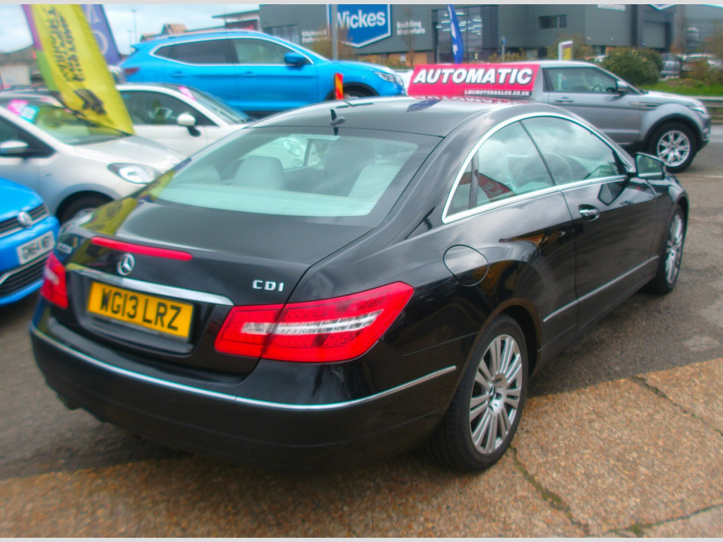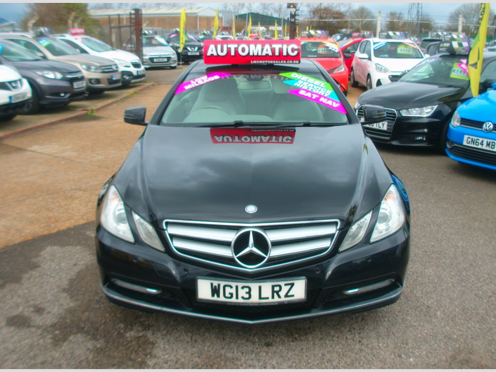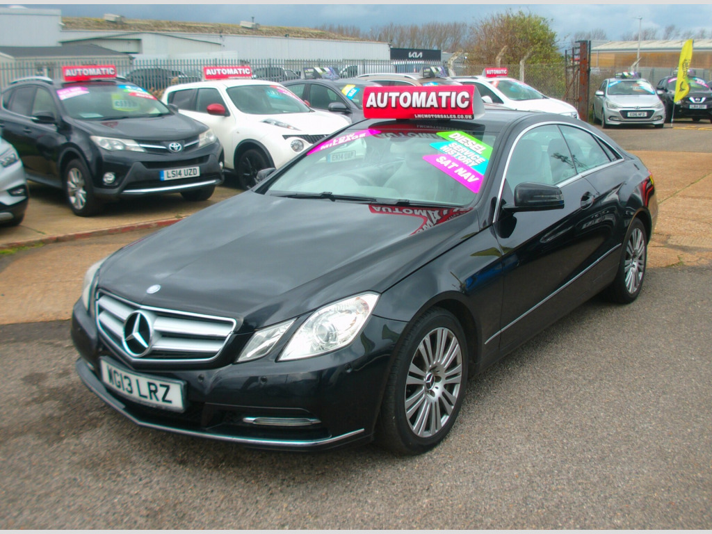 LOW MILEAGE ON THIS 2013 AUTOMATIC MERCEDES-BENZ E CLASS E220 2.1 CDi BLUEEFFICIENCY SE COUPE 2 DOOR, BLACK, 68,278 MILES, 2 PREVIOUS KEEPERS, SAT NAV, BLUETOOTH, CD PLAYER, CRUISE CONTROL, HEATED LEATHER SEATS, ELECTRIC ADJUST SEAT, AIR CON, PARKING CAMERA, FRONT & REAR PARK SENSORS, E/MIRRORS, E/WINDOWS, ISOFIX, C/LOCKS, ABS, MULTI AIR BAGS, 17'' ALLOY WHEELS, NEW MOT UPON PURCHASE, SUSSEX, EAST SUSSEX, EASTBOURNE, BN23 6PJ, 01323 643326, r conditioning, bluetooth connection, full leather, satellite navigation, cruise control, front parking sensor, multi-function steering wheel, parking camera, power steering, rear parking sensor, traction control, abs, isofix child seat anchor points, multiple airbags, central locking, electric mirrors, electric windows, auxiliary input socket, cd player, electrically adjustable drivers seat, heated seats, alloy wheels, colour coded body, rear wash/wipe, zero admin charge