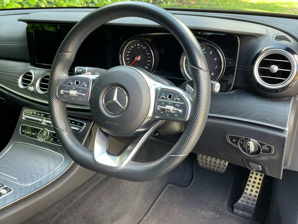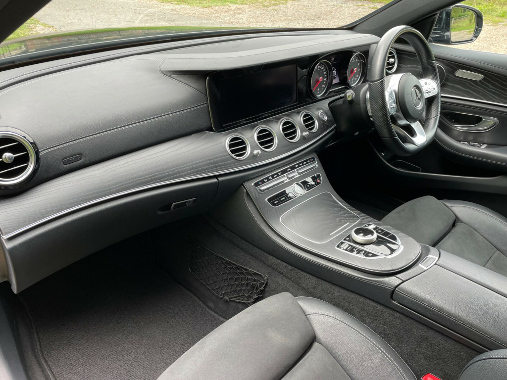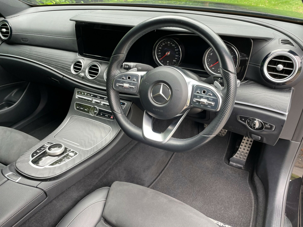 A GREAT SPEC & WELL LOOKED AFTER EXAMPLE, JUST 1 LADY OWNER COMPLETE WITH A  FULLY DOCUMENTED MERCEDES-BENZ SERVICE HISTORY. Finished in Metallic Obsidian Black with Black Leather/Microfibre Upholstery, Black Ash Wood Interior Trim, 19'' AMG 5-Double Spoke Alloy Wheels, AMG Bodystyling, AMG Multi-Function Steering Wheel, Ambient LED Interior Lighting, Audio 20 USB Multi-Media/Navigation System with 12.3'' High Resolution Colour Display, Chrome Exterior Trim inc. Exhaust Tailpipes, Cruise Control with Speed Limiter, DAB Radio, Dual Zone Digital Climate Control, DYNAMIC SELECT - Choice of 5 Driving Modes, Electric & Heated Front Seats, KEYLESS-GO Starting Function, LED High Performance Headlamps, MIRROR PACKAGE inc. Electric Folding Exterior Door Mirrors, PARKING PACKAGE inc. Active Parking Assist & Reversing Camera, Privacy Glass, SEAT COMFORT PACKAGE - Driver & Front Passenger Seats, STOWAGE PACKAGE inc. Cup Holders plus much, much more. As well as having a great specification and being in excellent condition throughout this much sought after E Class Saloon has also been meticulously maintained by its previous lady owner and comes complete with a Fully Documented Mercedes-Benz Service History with the last being carried out at 61,132 miles, 4 x Goodyear Eagle Tyres and it passed its annual MOT (with NO advisories) on 22 July at 67,029 miles plus we will carry out a Multi-Point Inspection in readiness for the new owner. Nationwide Warranty Included, Part-Exchange Welcome, ULEZ Compliant. Please call Matthew on 07850 080505 to arrange a viewing and test drive.,  tive parking assist and reversing camera, analogue clock, attention assist, boot release from drivers seat, brake wear warning light, dynamic select with a choice of driving modes (eco, comfort, sport, sport+ and individual), instrument cluster - two tube design round dials and 8.4'' tft multifunction display, mercedes connect me, multi function trip computer, outside temperature display, park assist pilot with front and rear park assist, remote boot release, service indicator (assyst), speed sensitive power steering, stop/start system, 2 usb ports in centre console, audio 20 with usb, control wheel and media interface with bluetooth interface and hands-free function, dab digital radio, steering wheel mounted audio controls, adaptive brake lights, aerial integrated in rear window, amg bodystyling, amg bodystyling front and rear aprons and side skirts in polished aluminium, body colour bumpers, body colour door handles, body colour door mirrors, electric windows with one touch opening/closing and obstruction sensors, electrically adjustable and heated door mirrors, led headlights, led high performance headlamps including integral led daytime running lamps, led rear lights, polished aluminium upper window surround, polished aluminium waistline, pre-installation for roof rail systems, privacy glass (rear side windows and rear screen), radiator grille with integral star and 2 louvres in matt iridium silver with chrome trim, rain sensor windscreen wipers, visible twin exhaust tailpipe in bumper, 3-spoke flat bottom multifunction amg steering wheel with touch control buttons, trimmed in black nappa leather, ambient lighting, amg floormats, artico man-made leather upper dash trim, auto mercedes-benz child seat recognition sensor, black roof lining, electric seat back adjustment, four way partially front electric seat adjustment, front and rear door pockets, front centre armrest with storage compartment, front door sills with mercedes benz lettering, glasses compartment in overhead control panel, head restraints for driver and front passenger (four-way adjustability) and in rear (two-way), heated front seats, interior rear light/integral reading lights, isofix rear child seat fastenings, lockable/illuminated air conditioned glovebox, multi function steering wheel, silver door pins, sports pedals with stainless steel surfaces and rubber studs, steering wheel multifunction with gearshift paddles, steering wheel touch control buttons for audio and onboard settings, storage compartment with 12v socket in centre console, sunvisors with illuminated vanity mirrors, interior lighting pack - e class, mirror pack - e class, seat comfort pack - e class, stowage pack - e class, 3x3 point rear seatbelts, active bonnet, active brake assist, adaptive brake system with hold function and brake drying in the wet, anti-lock braking system (abs), black seat belts, brake calipers with amg lettering, childproof rear door locks, driver and passenger side/thorax airbags, driver/front passenger airbag, drivers knee airbag, electronic parking brake, electronic stability programme, hill hold assist, hill start assist, pre-safe anticipatory safety system, seat occupancy sensor, seatbelt warning, tyre pressure monitoring system, warning triangle and first aid kit, window airbags, alarm system/interior protection/immobiliser, central locking with interior switch, automatic locking and crash sensor with emergency opening function, chrome surround electric key, keyless start, contrast stitching, run flat tyres, 19'' Alloys
