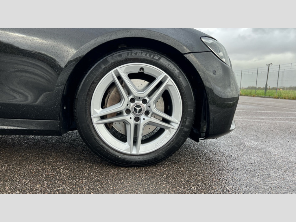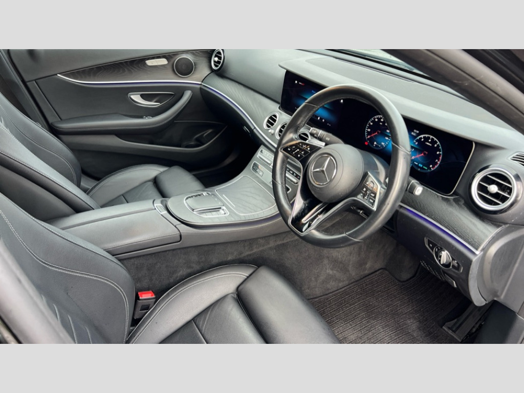 Mercedes-Benz E Class E200 AMG Line 4dr 9G-Tronic Attention assist, Blind spot assist, Brake wear warning display, Cockpit display 10.25" widescreen digital instrument cluster, Cruise control with variable speed limiter, Direct steer speed sensitive steering, DYNAMIC SELECT with a choice of driving modes (ECO, Comfort, Sport, Sport+ and Individual), ECO start/stop function, Emergency services call system, High resolution 10.25" multimedia colour display, MBUX voice control activated by keywords "Hey Mercedes", Mercedes connect me, Outside temperature display, Remote boot release, Service indicator (ASSYST), Smartphone integration via Android Auto/Apple CarPlay, Media Interface, USB and Bluetooth interface, Status display for rear seat belts in instrument cluster, Touchpad with controller, Traffic sign assist, Trip computer in multifunction display showing current fuel consumption, Wireless charging, 9G TRONIC 9 speed automatic transmission, Agility control sports suspension with selective damping system and lowered by 15mm, 2 USB ports in centre console, 2 USB ports in the rear, MBUX multimedia system with DAB digital radio and touchpad including satellite navigation, 3rd brake light, Adaptive brake lights, Aerial integrated in rear window, AMG bodystyling front and rear aprons and side sill panels, Body colour door mirrors, Chrome pins diamond radiator grille, surround in high gloss black, single louvre in chrome with insert in high gloss black and integral star, Electric windows with one touch opening/closing and obstruction sensors, Electrically adjustable and heated door mirrors, Illuminated front door sill panels with Mercedes-Benz lettering, LED High Performance headlamps including integral LED daytime running lamps and adaptive highbeam assist, LED rear lights, Pre-installation for roof rail systems, Privacy glass Includes rear side windows and rear windscreen, Rain sensor with automatic headlight activation, Rear boot, Rear side wing doors, Tail lights, Top surround of side windows in polished aluminium, Visible twin pipe exhaust system integrated into bumper, 3 seat bench in 2nd row, 3 spoke multifunction flat bottom AMG steering wheel with chrome inserts and touch control buttons, trimmed in black nappa leather, 40:20:40 split folding rear bench seat, Artico man-made leather upper dashboard and beltlines with contrast stitching, Automatic child seat recognition sensor, Black door pins, Black roof lining, Central stowage compartment with 12 V socket in centre console, USB socket for use with Android Auto and Apple CarPlay, Courtesy lights in rear grab handles with reading light functionality, Floor mats with AMG lettering, Four way partially front electric seat adjustment, Front centre armrest with stowage compartment, Glasses compartment in overhead control panel, Glove compartment - lockable, air conditioned and illuminated, Head restraints for driver and front passenger (four-way adjustability) and in rear (two-way), Heated front seats, Interior lighting - 64 colour Ambient lighting, Leather upholstery, Seat occupancy sensor for front passenger seat, Single front passenger seat, Steering column manually adjustable for height and reach, Steering wheel multifunction with gearshift paddles, Steering wheel touch control buttons for audio and onboard settings, Sunvisors with illuminated vanity mirrors, THERMOTRONIC automatic climate control system with 3 climate zones, Mirror pack - E Class, Parking package with reversing camera - E Class, Seat comfort pack - E Class, Stowage pack - E Class, 3x3 point rear seatbelts, Active bonnet pedestrian safety measure which detects an impact and raises bonnet, Active brake assist, Adaptive brake system with HOLD function and brake drying in the wet, Airbags - sidebag for driver and front passenger with combined thorax/pelvis bag, Anti-lock braking system (ABS), Childproof locks manually operated for rear doors and electrically operated for rear power windows, Driver and adaptive front passenger airbags, Drivers knee airbag, Electronic parking brake, Electronic Stability Programme, Hill start assist, ISOFIX child seat attachment points two outer rear seats, Perforated brake discs with Mercedes Benz lettering, Pre-Safe anticipatory safety system, Tyre pressure monitoring system, Warning triangle and first aid kit, Window airbags, Alarm system/interior protection/immobiliser, Central locking with interior switch, automatic locking and crash sensor with emergency opening function, Chrome surround in electric key, Open pore black ash wood trim and centre console in black open pored ash wood, 18" AMG 5 twin spoke light alloy wheels painted in tantalite grey with high sheen finish, Summer tyres, TIREFIT with tyre inflation compressor