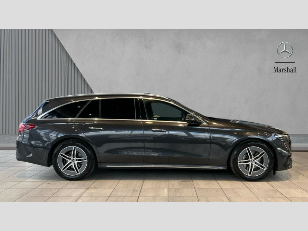 Mercedes-Benz E Class E200 AMG Line 5dr 9G-Tronic 12.3" high resolution cockpit display, 14.4" high resolution central media display with latest MBUX generation, 5G Communications module, Attention assist, Blind spot assist, Bluetooth, Brake wear warning display, Direct steer speed sensitive steering, Easy-pack tailgate - Powered opening/closing automatically, ECO start/stop function, Evasive manoeuvre support, Fluorescent jacket for driver, Hard disc navigation, MBUX navigation premium, MBUX voice control, Mercedes me connect including emergency call system, accident recovery, breakdown and maintenance management, Outside temperature display, Preinstallation for live traffic, Remote Services Premium, Service indicator (ASSYST), Status display for rear seat belts in instrument cluster, Trip computer in multifunction display showing current fuel consumption, Wireless charging, Wireless smartphone integration with Apple CarPlay and Android auto, 48V Mild hybrid technology, 66 litre fuel tank, 9G TRONIC automatic transmission, Agility control suspension with selective damping system and lowered by 15mm, Integrated starter generator Gen 2, Rear air suspension with level control, Sporty engine sound system, DAB Digital radio, Preinstallation for MBUX Entertainment Plus, 3rd brake light, Adaptive brake lights, Aerial integrated in rear window, AMG Line exterior, Auto dimming driver's door mirror, Auto dimming rear view mirror, Chrome roof rails, Digital air vent control, Electric folding door mirrors, Electric windows with one touch opening/closing and obstruction sensors, Electrically adjustable and heated door mirrors, Heat insulating privacy glass, LED daytime running lights, LED high performance headlights with adaptive highbeam assist, Pre-installation for roof rail systems, Rear side wing doors, Rear wiper, Surround lighting with logo projection, 3 seat bench in 2nd row, 4 way lumbar support, Ambient lighting, AMG brushed stainless steel sports pedals with rubber studs, AMG floor mats, AMG line interior, Automatic child seat recognition sensor, Central stowage compartment with USB socket for use with Android Auto and Apple CarPlay, Climatised front seats, Comfort seats, Courtesy lights in rear grab handles with reading light functionality, Folding rear seat backrest, Front centre armrest with stowage compartment, Gearshift paddles in galvanised silver, Glove compartment - lockable, air conditioned and illuminated, Head restraints for driver and front passenger (four-way adjustability) and in rear (two-way), Heated front seats, Instrument panel and door beltlines in artico nappa look leather, Leather upholstery, Multifunction sports steering wheel in nappa leather, Roof liner in black fabric, Seat occupancy sensor for front passenger seat, Single front passenger seat, Steering wheel touch control buttons for audio and onboard settings, Sunvisors with illuminated vanity mirrors, THERMATIC 2 zone automatic climate control, Night pack - E class, Parking package with 180 degree camera - E Class, USB plus package - E Class, 3x3 point rear seatbelts, Active bonnet pedestrian safety measure which detects an impact and raises bonnet, Adaptive brake system with HOLD function and brake drying in the wet, Airbags - sidebag for driver and front passenger with combined thorax/pelvis bag, Anti-lock braking system (ABS), Automatic front passenger airbag deactivation, Central airbag, Childproof locks manually operated for rear doors and electrically operated for rear power windows, Driver and adaptive front passenger airbags, Electronic parking brake, Electronic Stability Programme, Hill start assist, ISOFIX child seat attachment points two outer rear seats, Knee airbags, Pedestrian protection, Pre-Safe anticipatory safety system, Tyre pressure monitoring system, Warning triangle and first aid kit, Window airbags, Alarm system/interior protection/immobiliser, Central locking with interior switch, automatic locking and crash sensor with emergency opening function, Guard 360 degree vehicle protection, Increased anti theft protection, Keyless Go, Urban guard vehicle protection plus, Centre console in black open pore ash wood trim and dash trim with laser cut backlit Mercedes-Benz star pattern, 18" AMG 5 twin spoke design alloy wheels painted in tantalite grey, Summer tyres, Tirefit