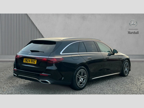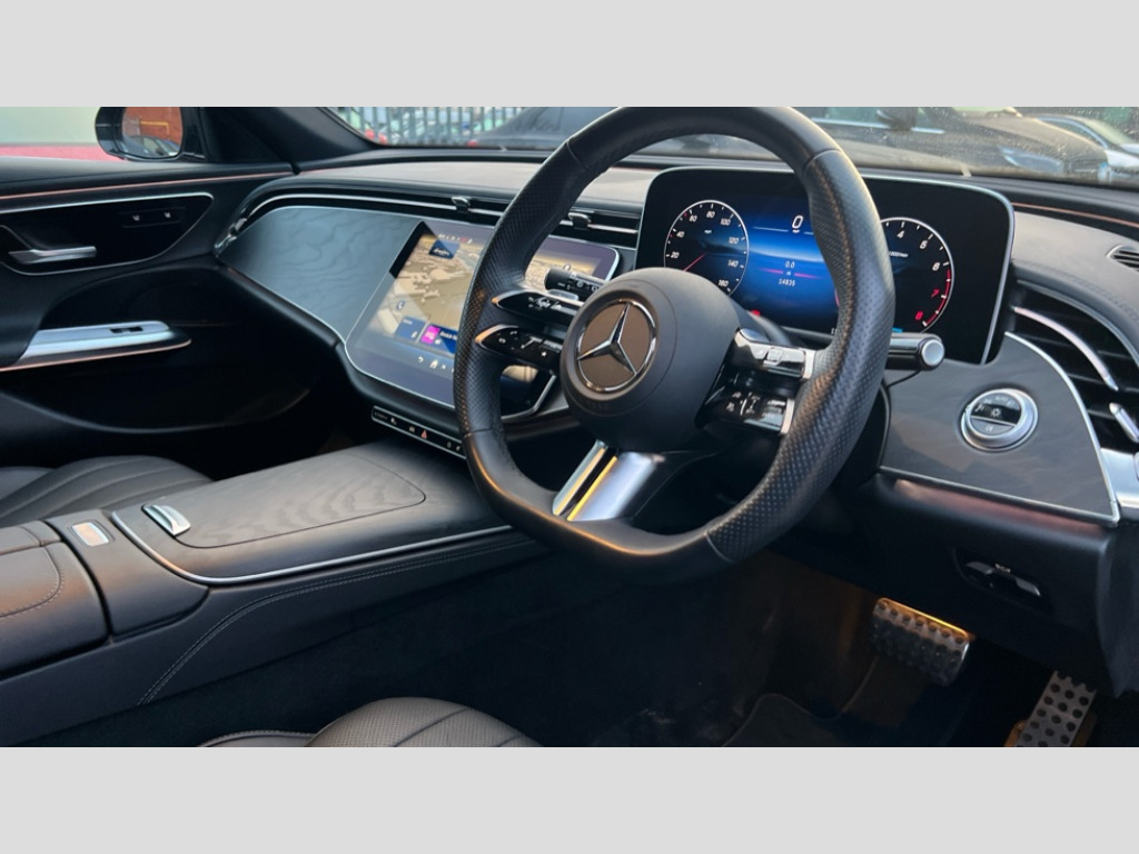 Mercedes-Benz E Class E200 AMG Line 5dr 9G-Tronic 12.3" high resolution cockpit display, 14.4" high resolution central media display with latest MBUX generation, 5G Communications module, Attention assist, Blind spot assist, Bluetooth, Brake wear warning display, Direct steer speed sensitive steering, Easy-pack tailgate - Powered opening/closing automatically, ECO start/stop function, Evasive manoeuvre support, Fluorescent jacket for driver, Hard disc navigation, MBUX navigation premium, MBUX voice control, Mercedes me connect including emergency call system, accident recovery, breakdown and maintenance management, Outside temperature display, Preinstallation for live traffic, Remote Services Premium, Service indicator (ASSYST), Status display for rear seat belts in instrument cluster, Trip computer in multifunction display showing current fuel consumption, Wireless charging, Wireless smartphone integration with Apple CarPlay and Android auto, 48V Mild hybrid technology, 66 litre fuel tank, 9G TRONIC automatic transmission, Agility control suspension with selective damping system and lowered by 15mm, Integrated starter generator Gen 2, Rear air suspension with level control, Sporty engine sound system, DAB Digital radio, Preinstallation for MBUX Entertainment Plus, 3rd brake light, Adaptive brake lights, Aerial integrated in rear window, AMG Line exterior, Auto dimming driver's door mirror, Auto dimming rear view mirror, Chrome roof rails, Digital air vent control, Electric folding door mirrors, Electric windows with one touch opening/closing and obstruction sensors, Electrically adjustable and heated door mirrors, Heat insulating privacy glass, LED daytime running lights, LED high performance headlights with adaptive highbeam assist, Pre-installation for roof rail systems, Rear side wing doors, Rear wiper, Surround lighting with logo projection, 3 seat bench in 2nd row, 4 way lumbar support, Ambient lighting, AMG brushed stainless steel sports pedals with rubber studs, AMG floor mats, AMG line interior, Automatic child seat recognition sensor, Central stowage compartment with USB socket for use with Android Auto and Apple CarPlay, Climatised front seats, Comfort seats, Courtesy lights in rear grab handles with reading light functionality, Folding rear seat backrest, Front centre armrest with stowage compartment, Gearshift paddles in galvanised silver, Glove compartment - lockable, air conditioned and illuminated, Head restraints for driver and front passenger (four-way adjustability) and in rear (two-way), Heated front seats, Instrument panel and door beltlines in artico nappa look leather, Leather upholstery, Multifunction sports steering wheel in nappa leather, Roof liner in black fabric, Seat occupancy sensor for front passenger seat, Single front passenger seat, Steering wheel touch control buttons for audio and onboard settings, Sunvisors with illuminated vanity mirrors, THERMATIC 2 zone automatic climate control, Night pack - E class, Parking package with 180 degree camera - E Class, USB plus package - E Class, 3x3 point rear seatbelts, Active bonnet pedestrian safety measure which detects an impact and raises bonnet, Adaptive brake system with HOLD function and brake drying in the wet, Airbags - sidebag for driver and front passenger with combined thorax/pelvis bag, Anti-lock braking system (ABS), Automatic front passenger airbag deactivation, Central airbag, Childproof locks manually operated for rear doors and electrically operated for rear power windows, Driver and adaptive front passenger airbags, Electronic parking brake, Electronic Stability Programme, Hill start assist, ISOFIX child seat attachment points two outer rear seats, Knee airbags, Pedestrian protection, Pre-Safe anticipatory safety system, Tyre pressure monitoring system, Warning triangle and first aid kit, Window airbags, Alarm system/interior protection/immobiliser, Central locking with interior switch, automatic locking and crash sensor with emergency opening function, Guard 360 degree vehicle protection, Increased anti theft protection, Keyless Go, Urban guard vehicle protection plus, Centre console in black open pore ash wood trim and dash trim with laser cut backlit Mercedes-Benz star pattern, 18" AMG 5 twin spoke design alloy wheels painted in tantalite grey, Summer tyres, Tirefit