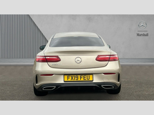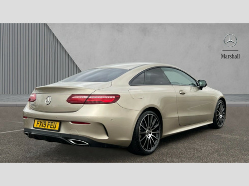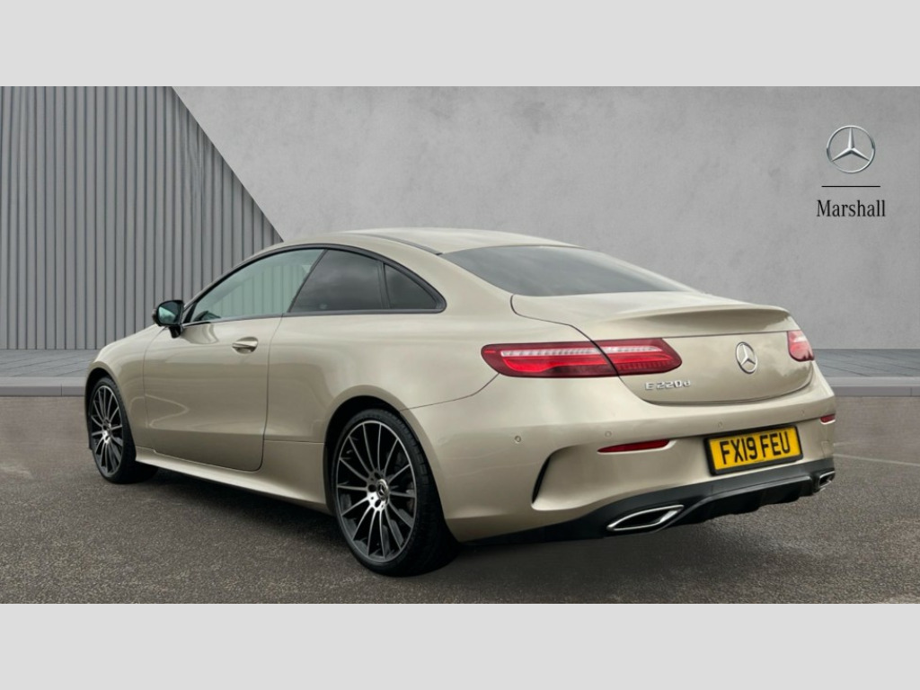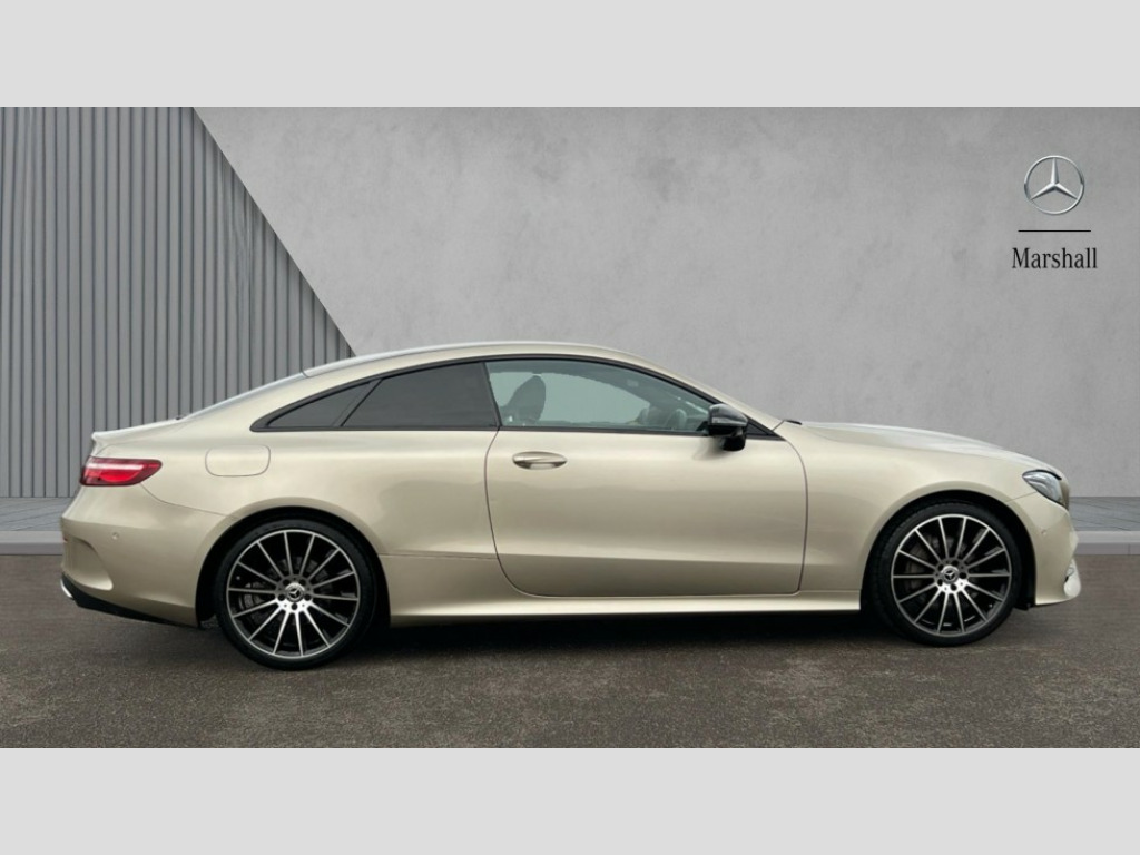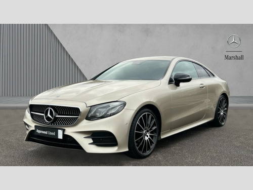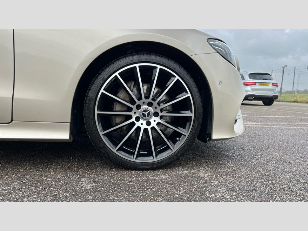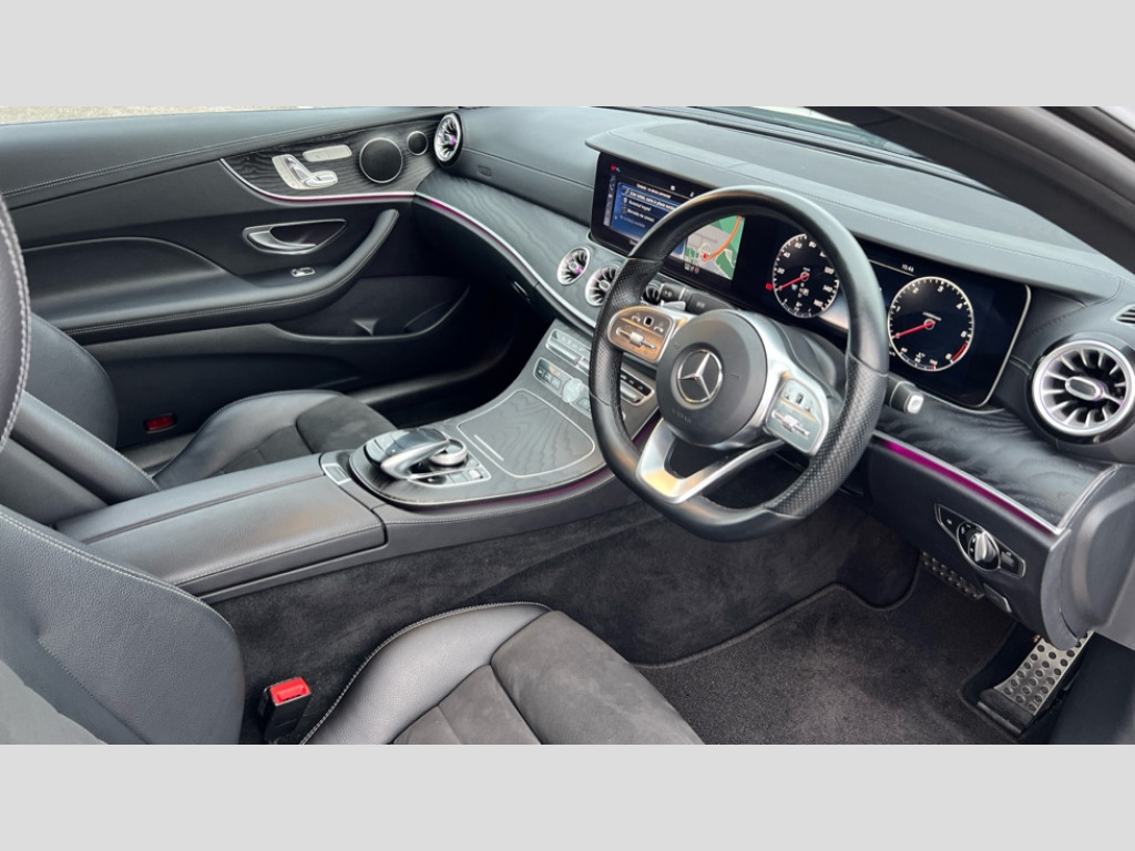 Mercedes-Benz E Class E220d AMG Line 2dr 9G-Tronic Active parking assist including front and rear parking sensors, Analogue clock, Attention assist, Blind spot assist, Bluetooth interface for hands free telephone, Brake wear warning display, Cockpit display 12.3" widescreen digital instrument cluster, Collision prevention assist plus, Direct steer speed sensitive steering, Direct steering, DYNAMIC SELECT with a choice of driving modes (ECO, Comfort, Sport, Sport+ and Individual), ECO start/stop function, Engine start/stop button, High resolution 12.3" multimedia colour display, Mercedes connect me, Multi function trip computer, Outside temperature display, Remote boot release, Reversing camera, SD card based satellite navigation system, Service indicator (ASSYST), Status display for rear seat belts in instrument cluster, Touchpad with control wheel, 25 litre AdBlue tank, 66 litre fuel tank, Agility control sports suspension with selective damping system, Diesel particulate filter, Incorrect fuelling protection, 2 USB ports in centre console, Audio 20 with USB, touchpad and control wheel with Media Interface with Bluetooth interface and hands-free function, DAB Digital radio, Adaptive brake lights, AMG bodystyling front and rear aprons, side skirts, AMG boot lid spoiler in body colour, AMG front, rear apron and side skirts, Body colour door handles, Body coloured bumpers, Electric windows with one touch opening/closing and obstruction sensors, Exterior mirrors heated and electronically adjustable, Illuminated front door sill panels with Mercedes-Benz lettering, LED high performance headlamps with integrated LED daytime running lights, Magic Vision Control heated windscreen wiper system, Pre-installation for roof rail systems, Privacy glass Includes rear side windows and rear windscreen, Rain sensing windscreen wipers, Rear LED lights, Top surround of side windows in polished aluminium, Visible twin pipe exhaust system integrated into bumper, 3-spoke flat bottom multifunction AMG steering wheel with Touch Control buttons, trimmed in black nappa leather, 4 way adjustable front head restraints and 2 way rear head restraints, 40:20:40 split folding rear seats, Artico man-made leather upper dashboard and beltlines with contrast stitching, Automatic child seat recognition sensor, Automatic two zone climate control, Bag hook in luggage compartment, Belt feeder driver and front passenger seat belt automatically positioned within easier reach, Black roof lining, Central stowage compartment with 12 V socket in centre console, Centre armrest and door handle illumination, Chrome door pins, Easy entry seats, Floor mats with AMG lettering, Front and rear door pockets, Front centre armrest with stowage compartment, Front footwell lights, Glasses compartment in overhead control panel, Glove compartment - lockable, air conditioned and illuminated, Heated front seats, Interior lighting - 64 colour Ambient lighting, Interior rear light/integral reading lights, Isofix rear child seat fastenings, Multi contour front sports seats, Multi function steering wheel, Partial electric front seats/backrest/height adjust, Rear centre armrest with 2 cupholders + storage, Seat occupancy sensor for front passenger seat, Sports pedals in brushed stainless steel with black rubber studs, Steering column manually adjustable for height and reach, Steering wheel gearshift paddles, Steering wheel touch control buttons for audio and onboard settings, Storage net in luggage compartment, Sunvisors with illuminated vanity mirrors, Twin front cupholders, Mirror pack - E Class, Seat comfort pack - E Class, Stowage pack - E Class, Active bonnet, Active brake assist, Adaptive brake system, Adaptive driver and front passenger airbags, Anti-lock braking system (ABS), Crash sensor (auto door unlocking), Drivers knee airbag, Electric parking brake, Electronic Stability Programme, Front and rear window airbags, Front seatbelt pretensioners, Front side airbags, Head airbags, Hill hold function, Perforated front brake discs with "Mercedes-Benz" lettering, Seatbelt warning, Three point rear seat belts, Tyre pressure monitoring system, Warning triangle and first aid kit, Alarm system/interior protection/immobiliser, Central locking with interior switch, automatic locking and crash sensor with emergency opening function, Chrome surround in electric key, Keyless entry go starting function, Black open pore ash wood, Open pore black ash wood centre console, Run flat tyres